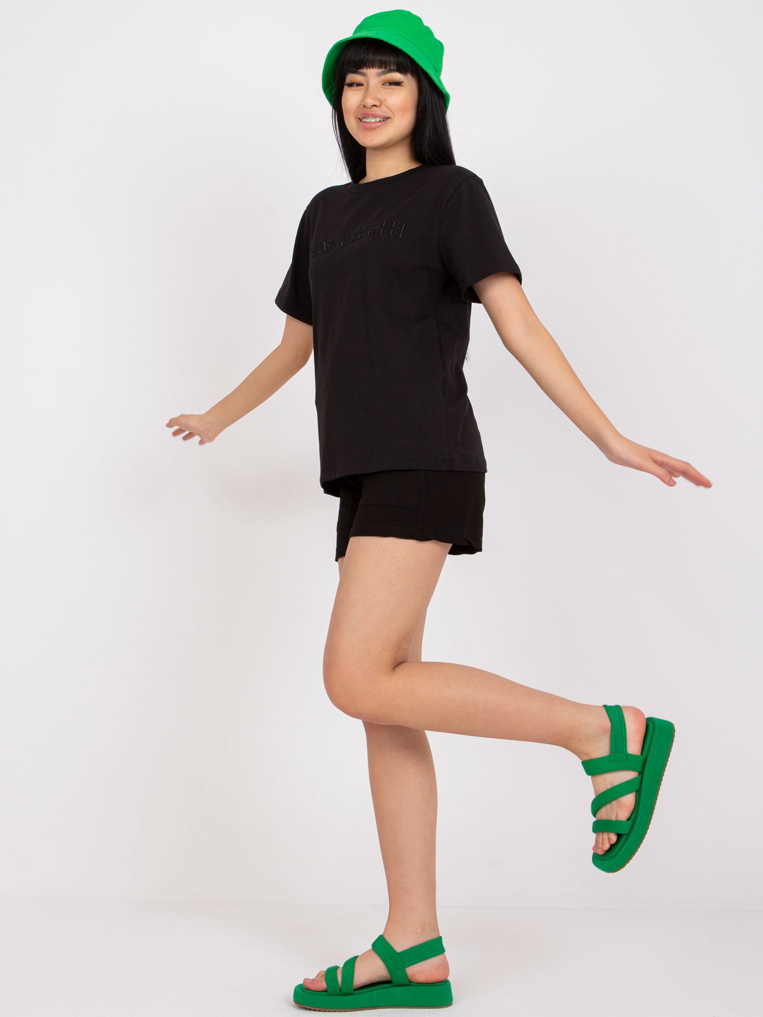 Wymiary kompletu w rozmiarze S/M mierzone na płasko: szerokość t-shirta pod pachami - 49 cm, długość t-shirta - 60 cm, szerokość szortów w pasie - 32 cm, długość szortów- 42 cm.