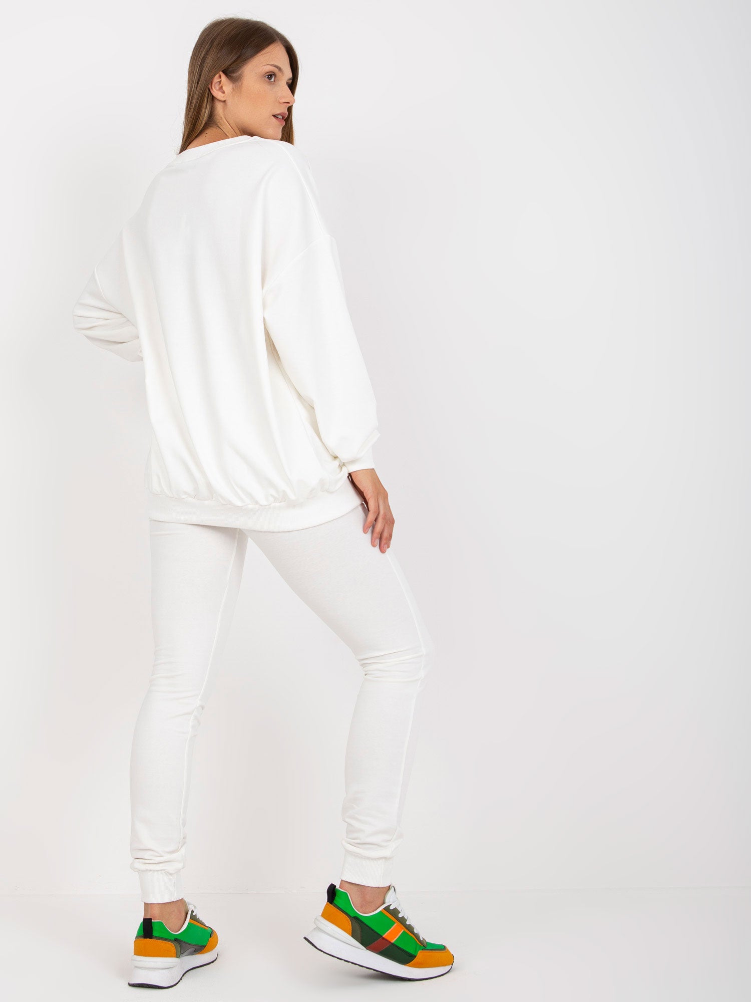 Wymiary kompletu w rozmiarze S/M mierzone na płasko: szerokość bluzy pod pachami - 65 cm, długość rękawa - 61 cm, długość bluzy- 68 cm, szerokość spodni w pasie - 35 cm, wysokość stanu - 28 cm, długość spodni - 96 cm.