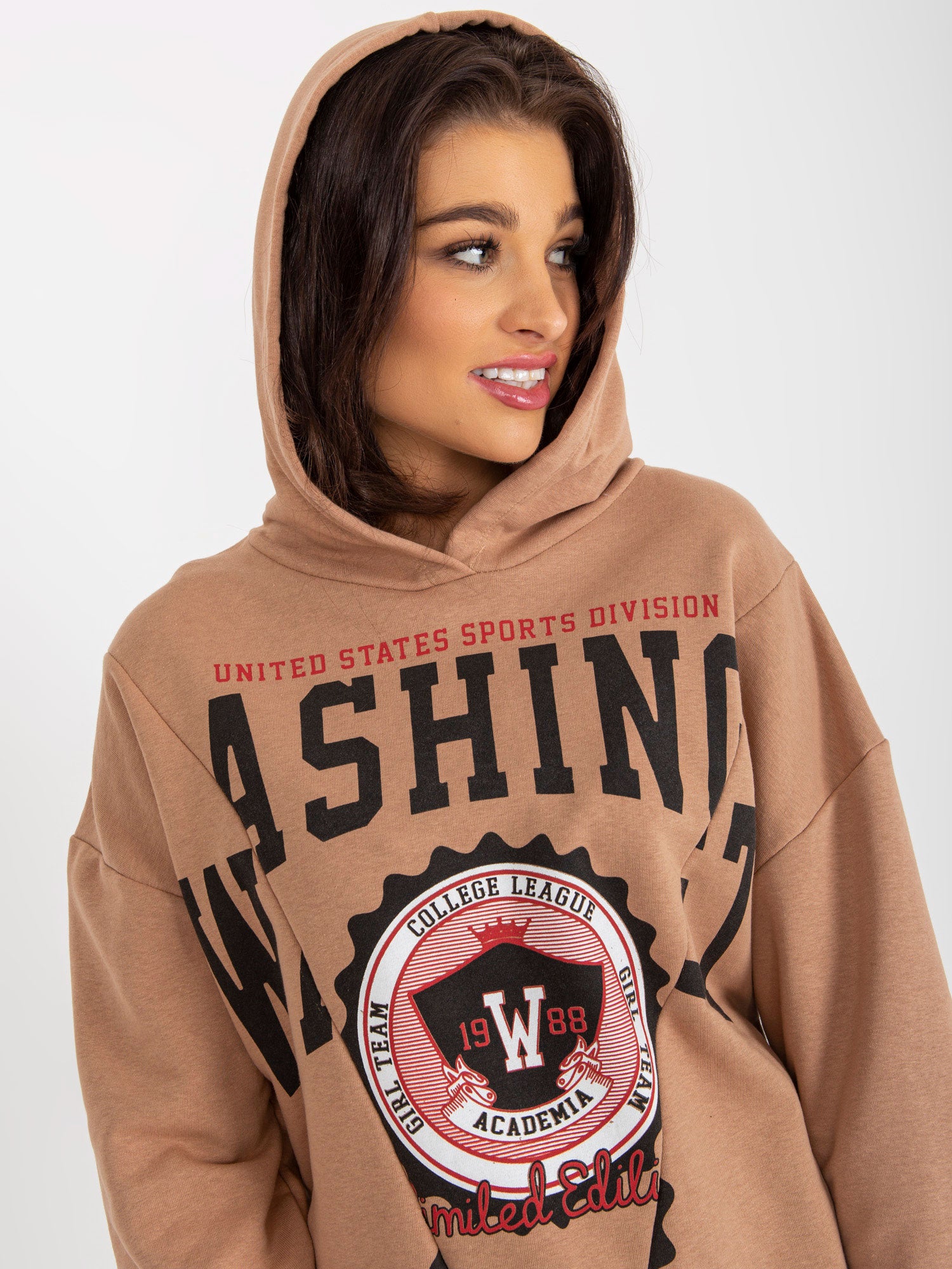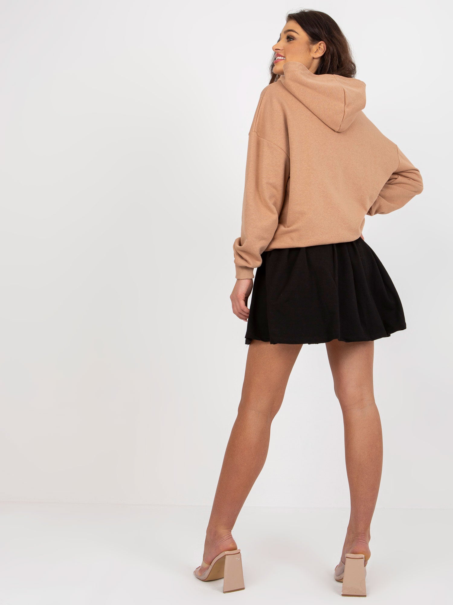 Camelowy komplet dresowy z rozkloszowaną spódnicą .