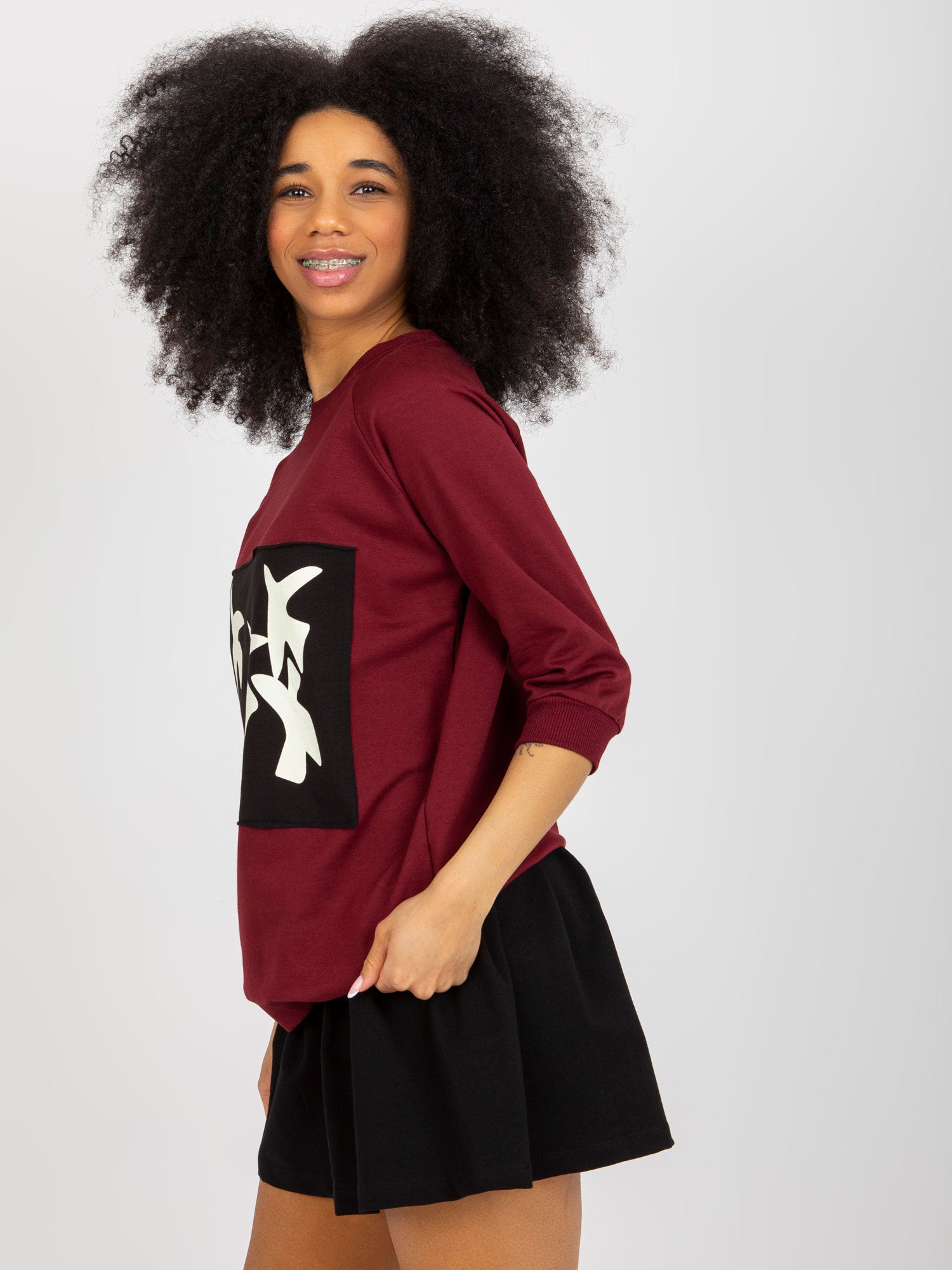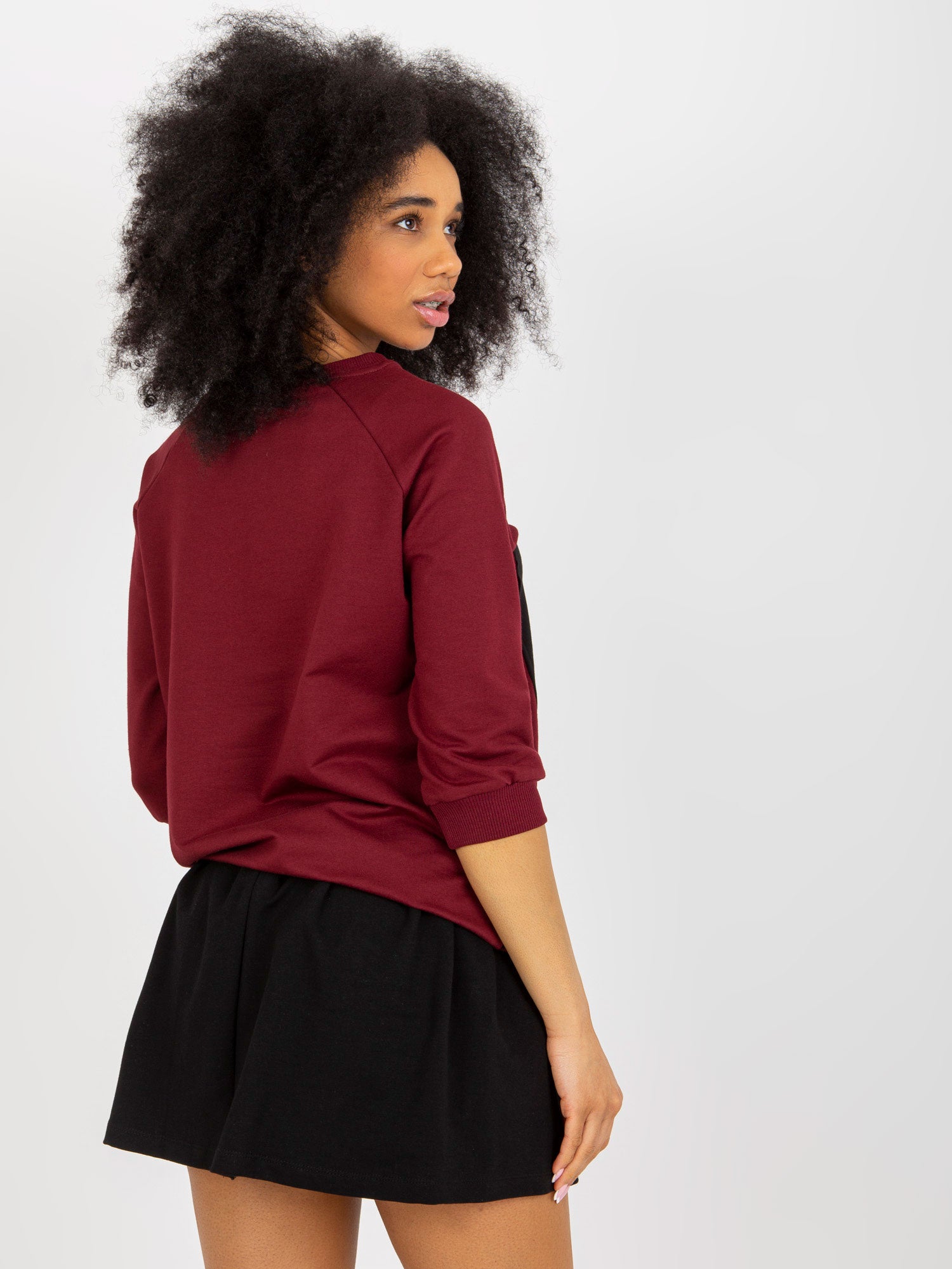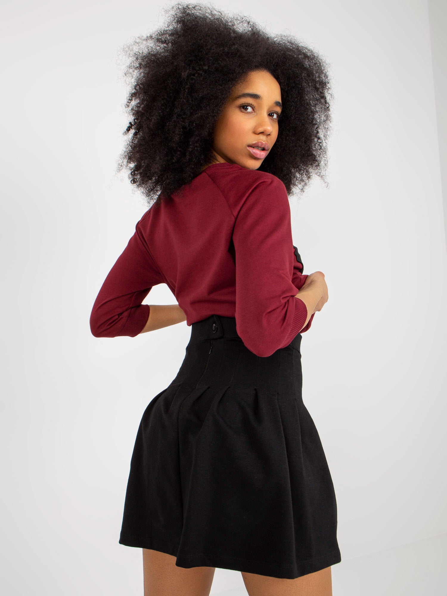 Bordowy damski komplet dresowy z mini spódnicą .