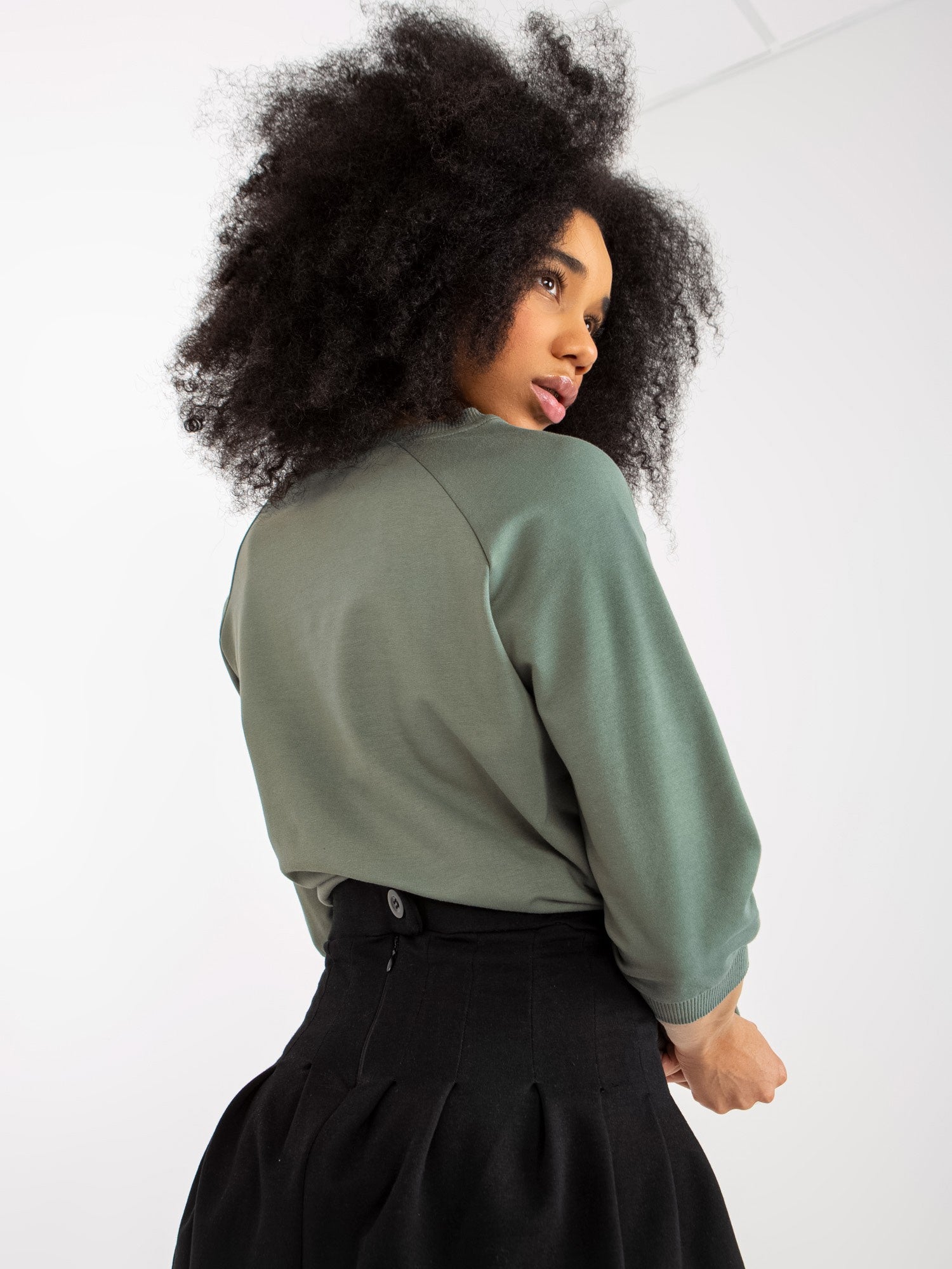 Khaki damski komplet dresowy z bluzą z nadrukiem .