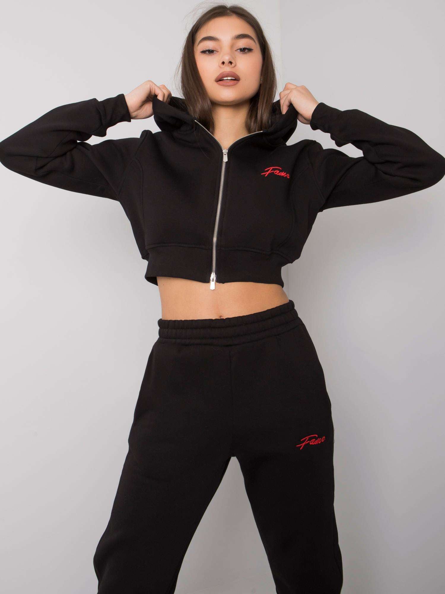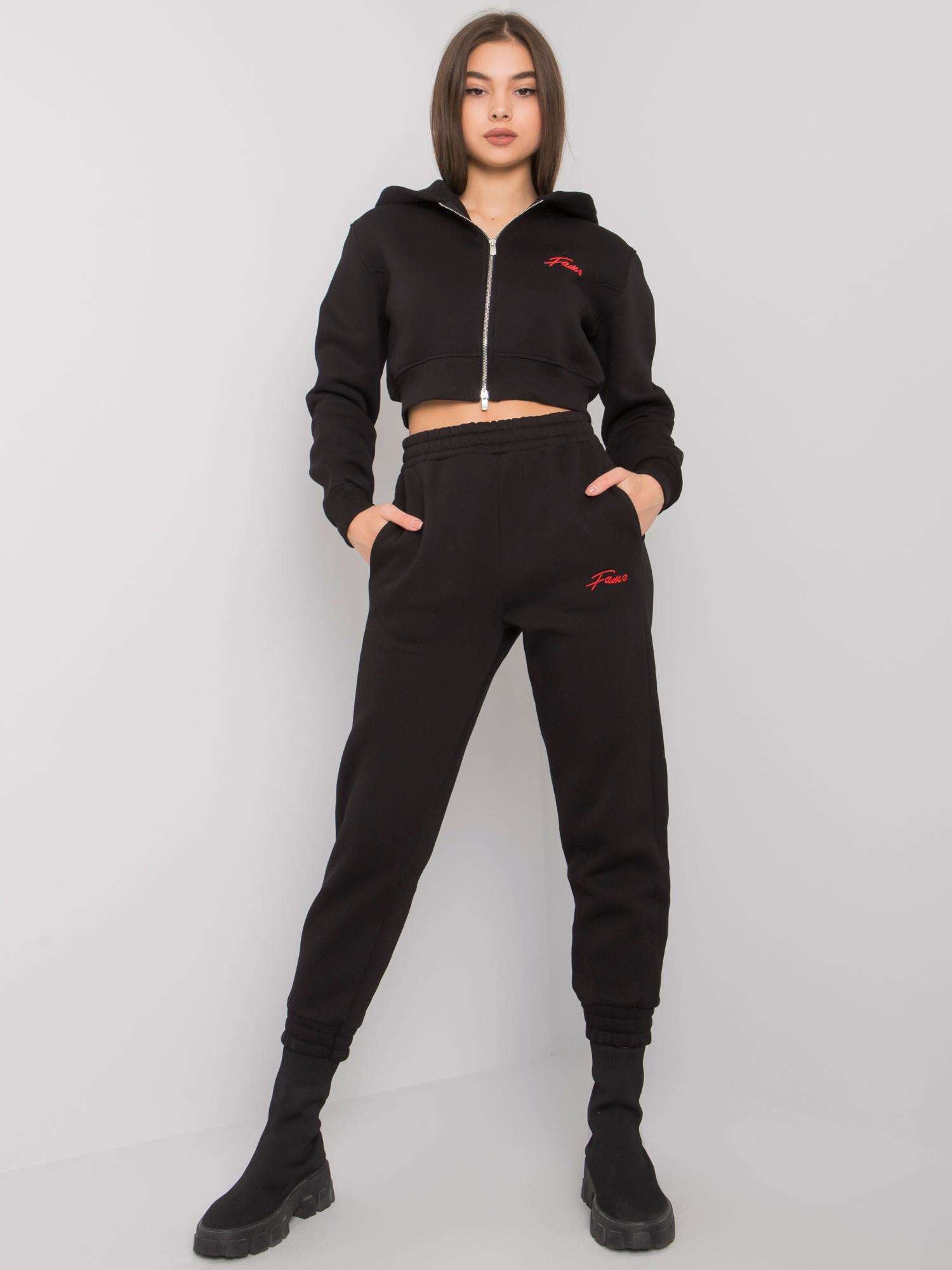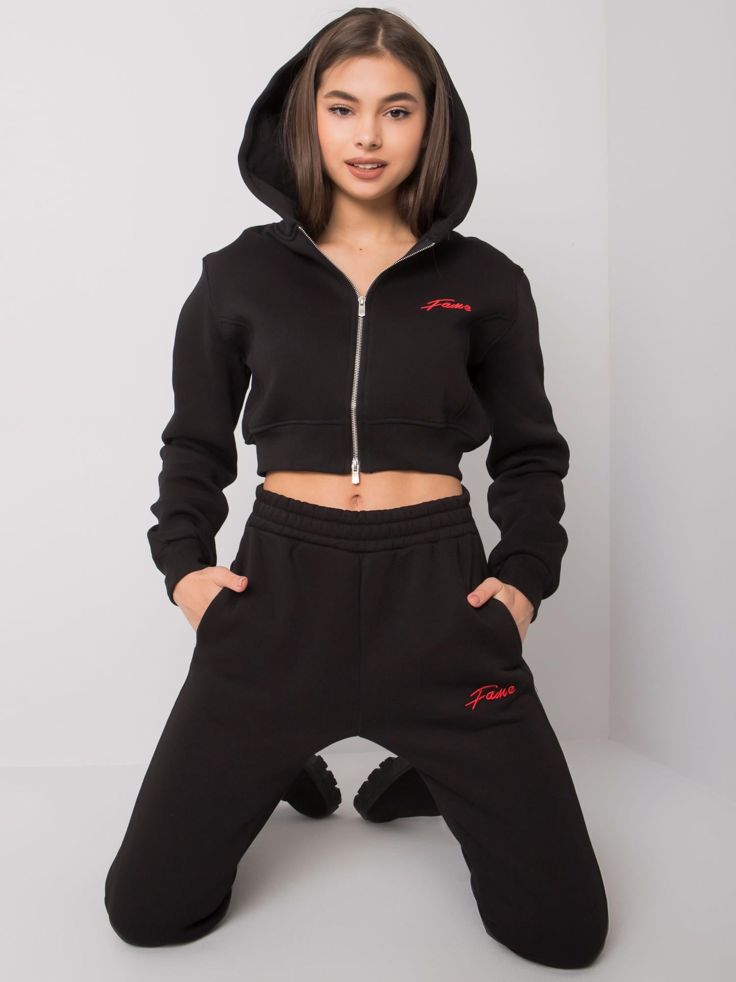 Wymiary kompletu w rozmiarze S mierzone na płasko: szerokość pod pachami - 50 cm, długość bluzy - 41 cm, długość rękawa - 62 cm, szerokość w pasie - 34 cm, długość spodni - 92 cm