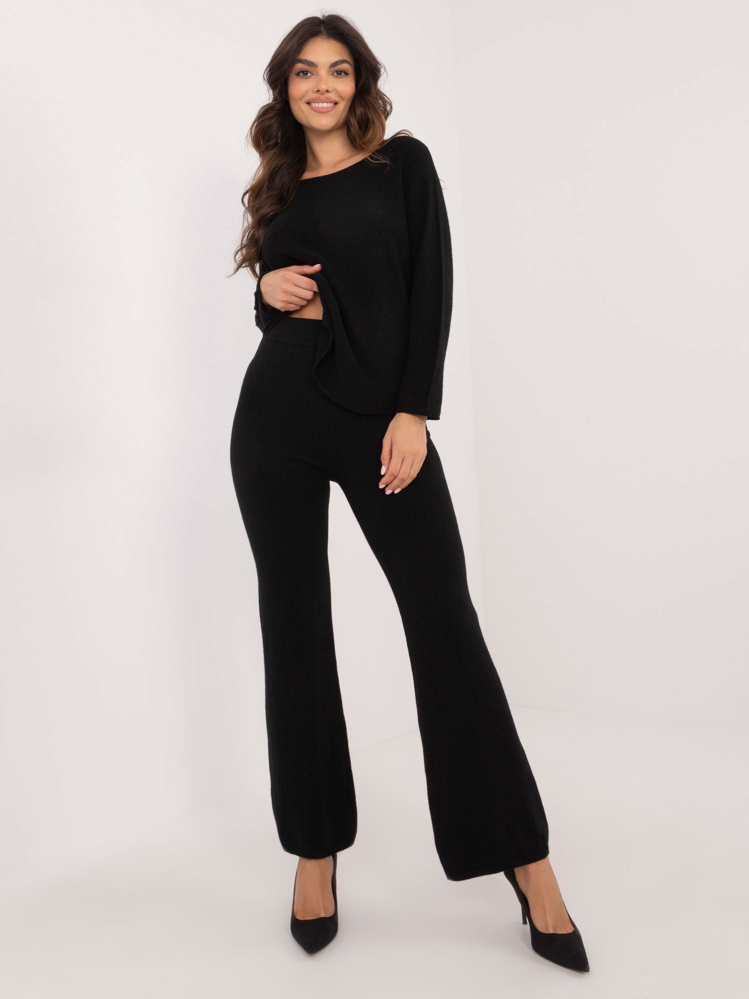 Wymiary kompletu w rozmiarze one size mierzone na płasko: szerokość swetra pod pachami - 52 cm, długość swetra - 65 cm, długość rękawa - 57 cm, szerokość spodni w pasie - 35 cm (na płasko), szerokość spodni w pasie - 52 cm (po rozciągnięciu), długość spodni - 107 cm.