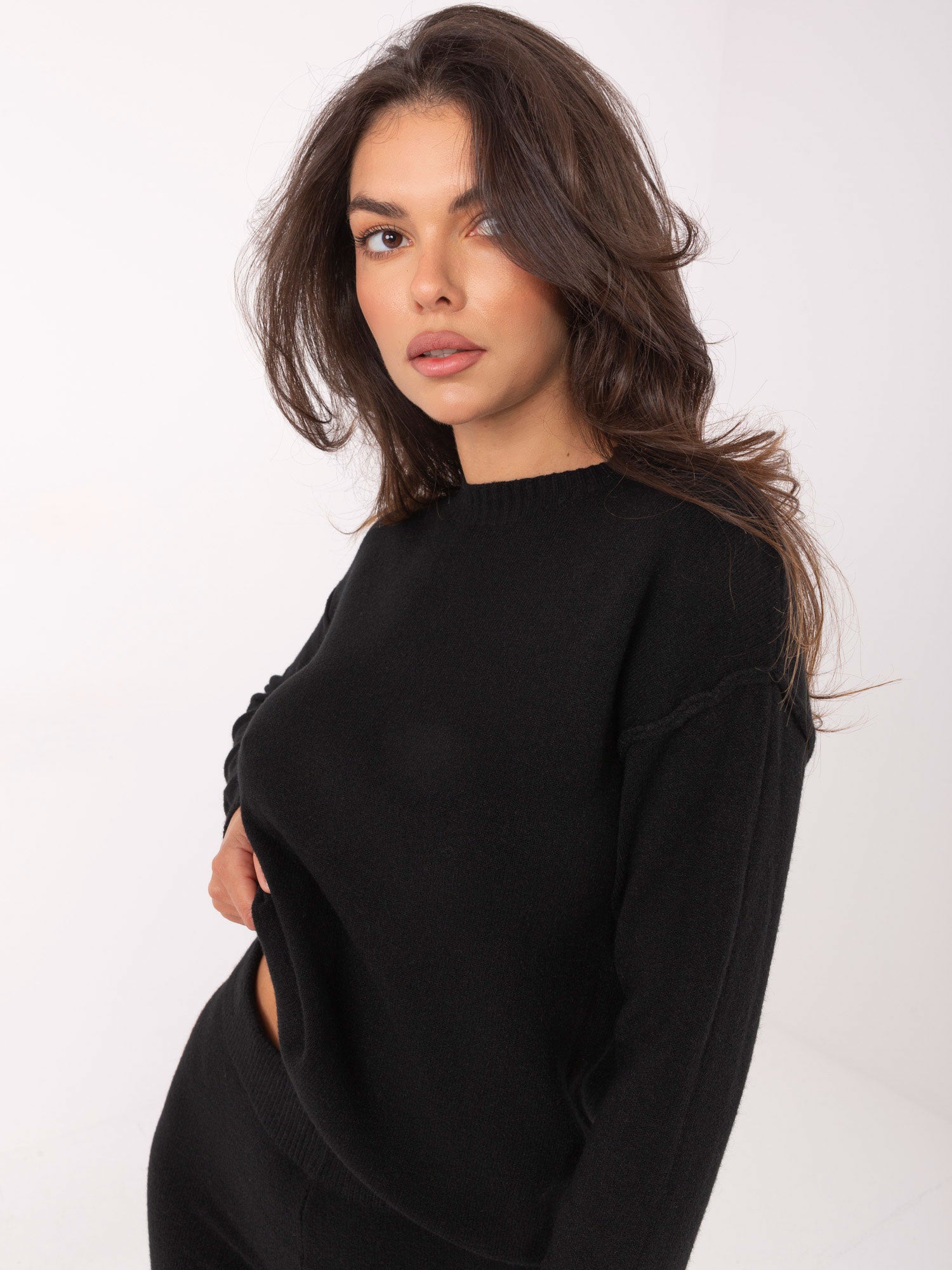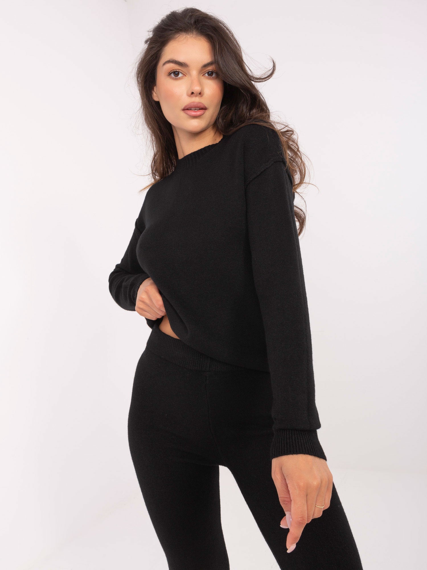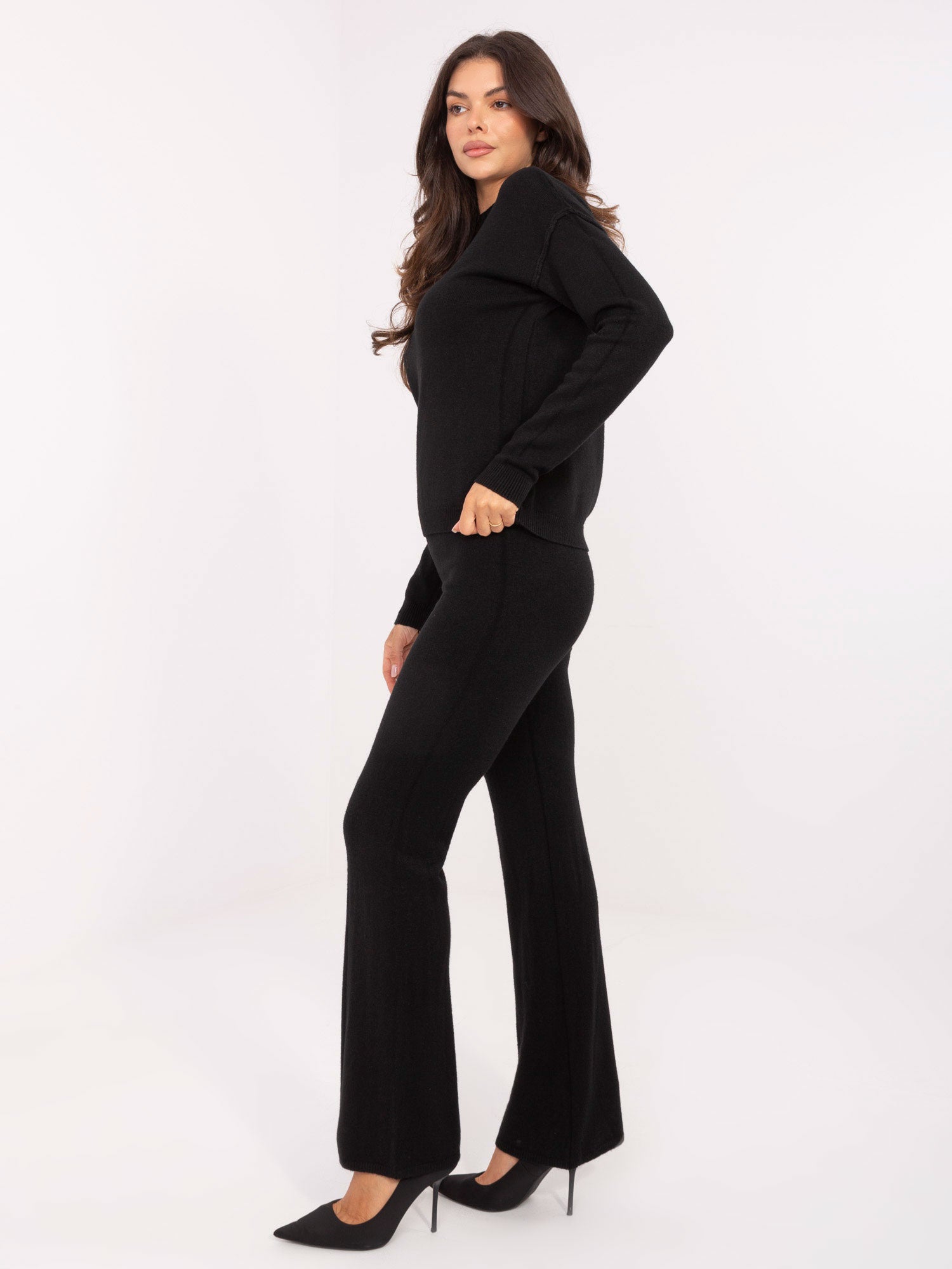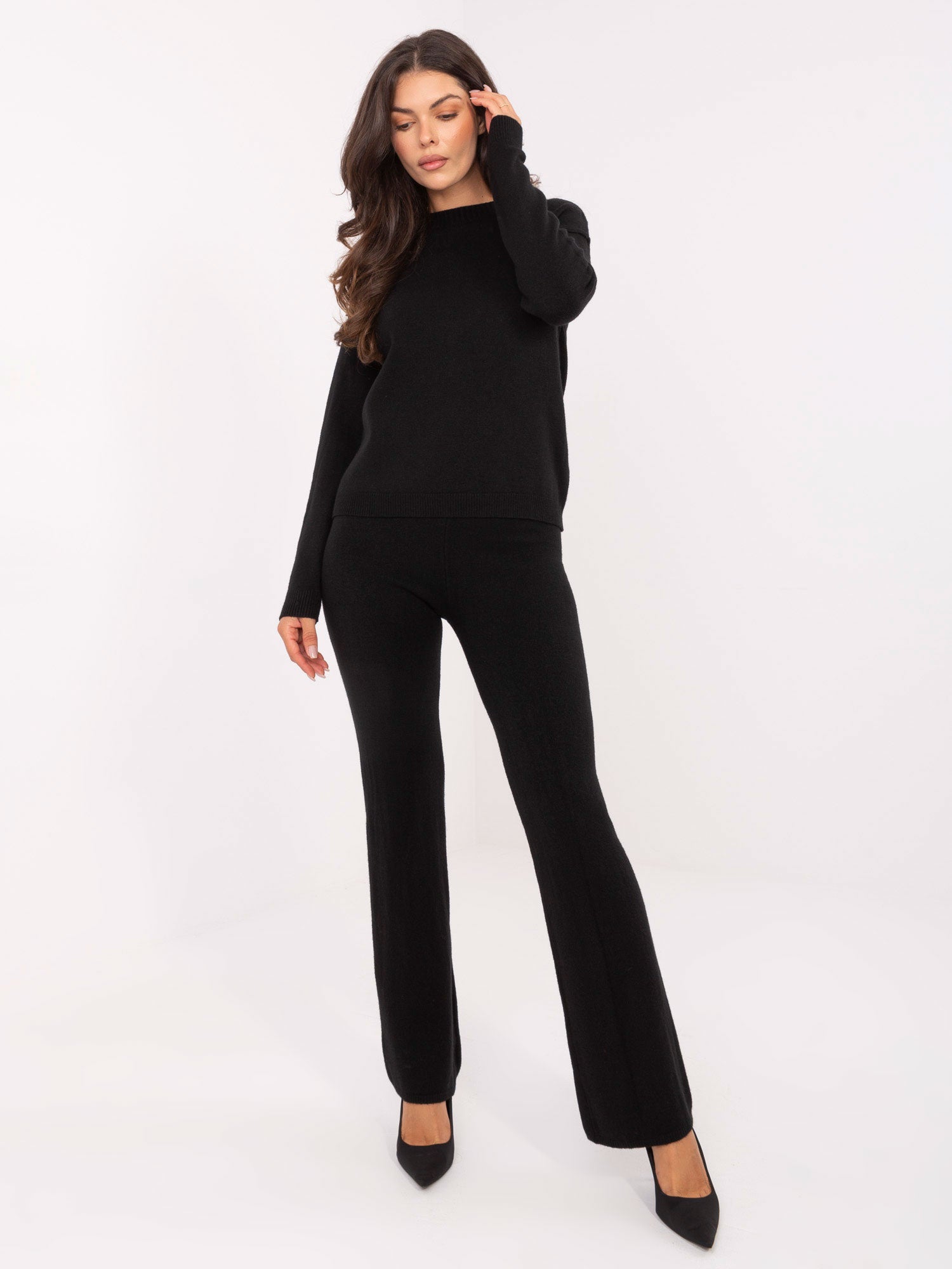 Wymiary kompletu w rozmiarze one size : szerokość pod pachami - 50 cm, długość swetra - 60 cm, długość rękawa - 52 cm (od szwu), szerokość w biodrach - 46 cm, szerokość spodni w pasie - 36 cm (na płasko), szerokość spodni w pasie - 75 cm (po rozciągnięciu), szerokość w biodrach - 39 cm, długość spodni - 107 cm.