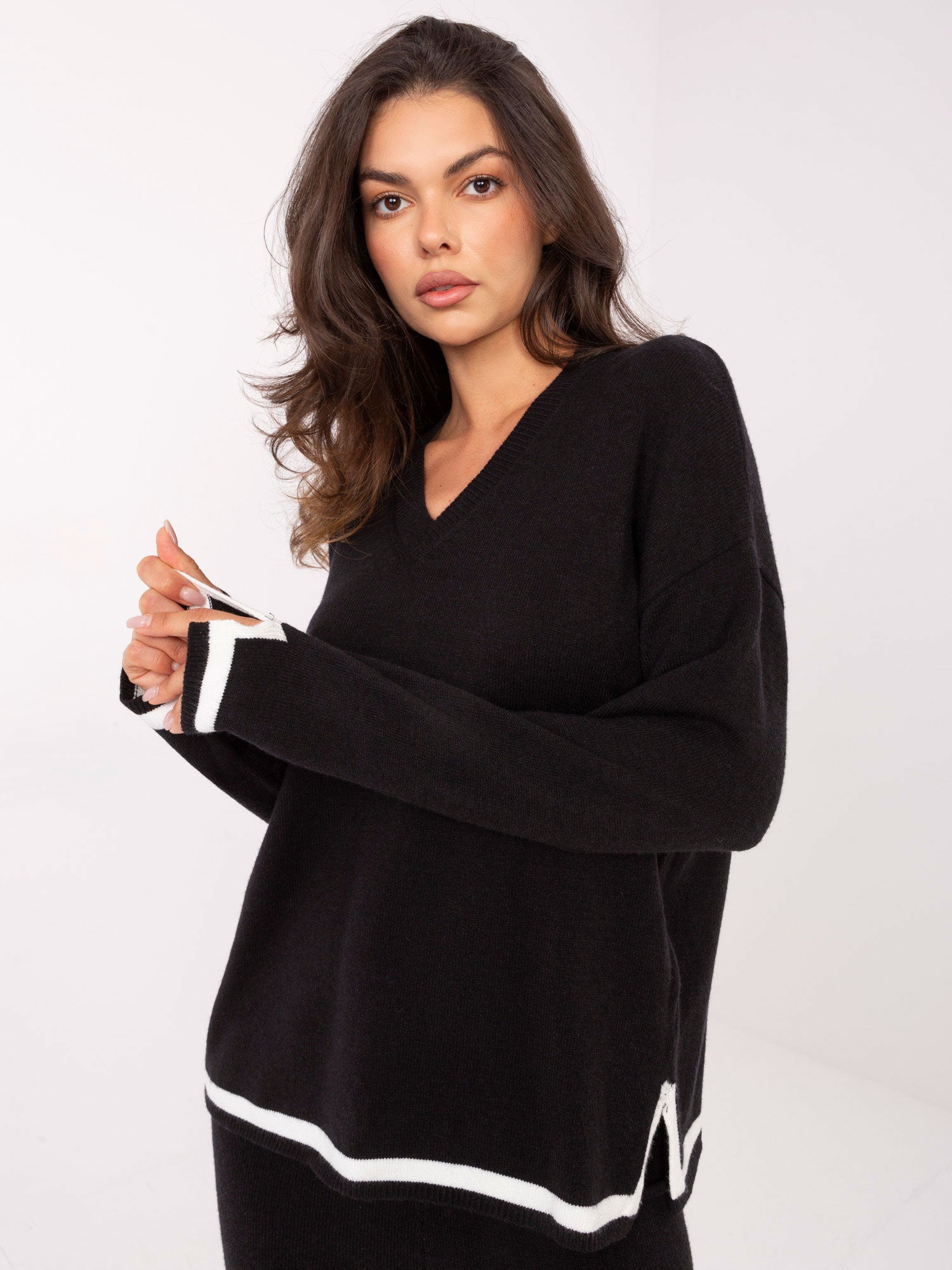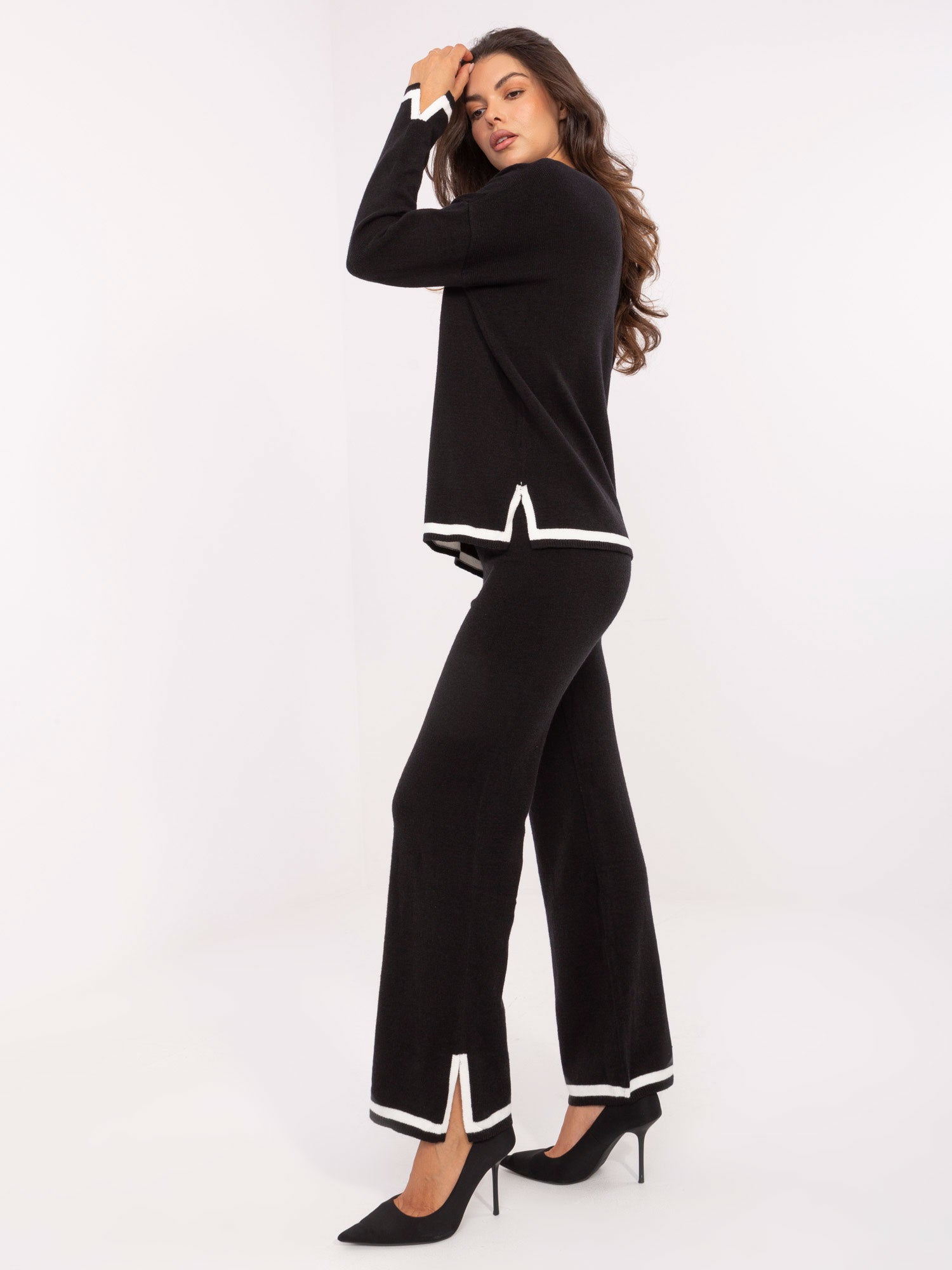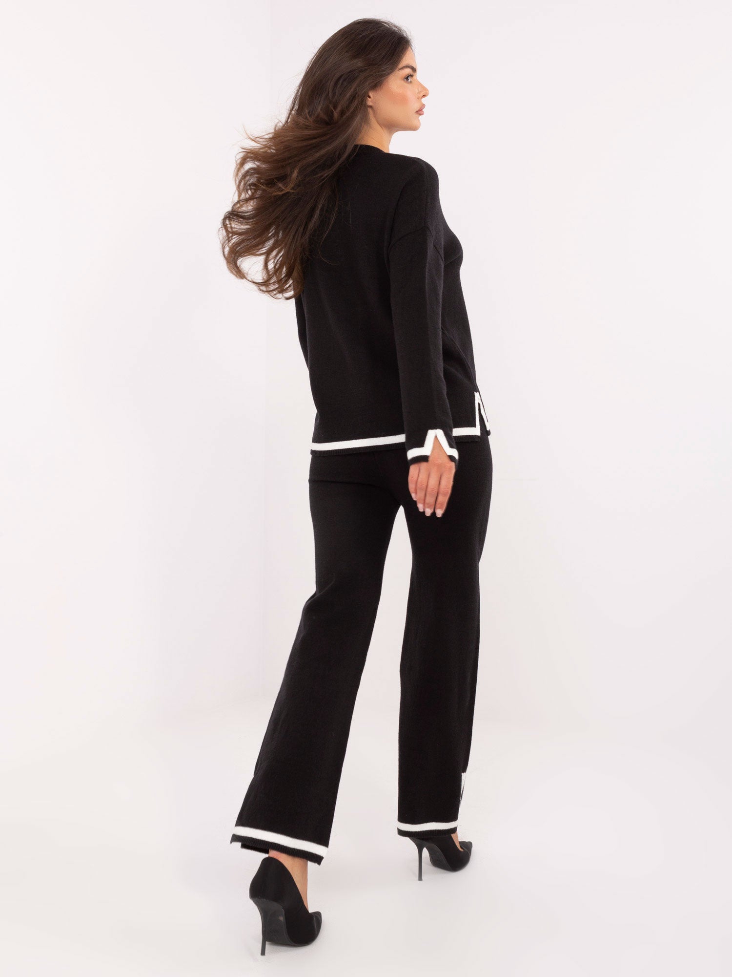 Wymiary kompletu w rozmiarze one size : szerokość pod pachami - 56 cm, długość swetra - 66 cm, długość rękawa - 48 cm (od szwu), szerokość w biodrach - 54 cm, szerokość spodni w pasie - 34 cm (na płasko), szerokość spodni w pasie - 67 cm (po rozciągnięciu), szerokość w biodrach - 37 cm, długość spodni - 103 cm.