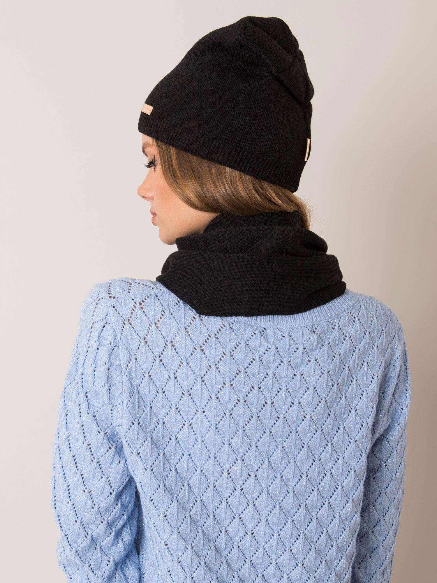 RUE PARIS Czarny komplet czapka i szalik Produkt polski
