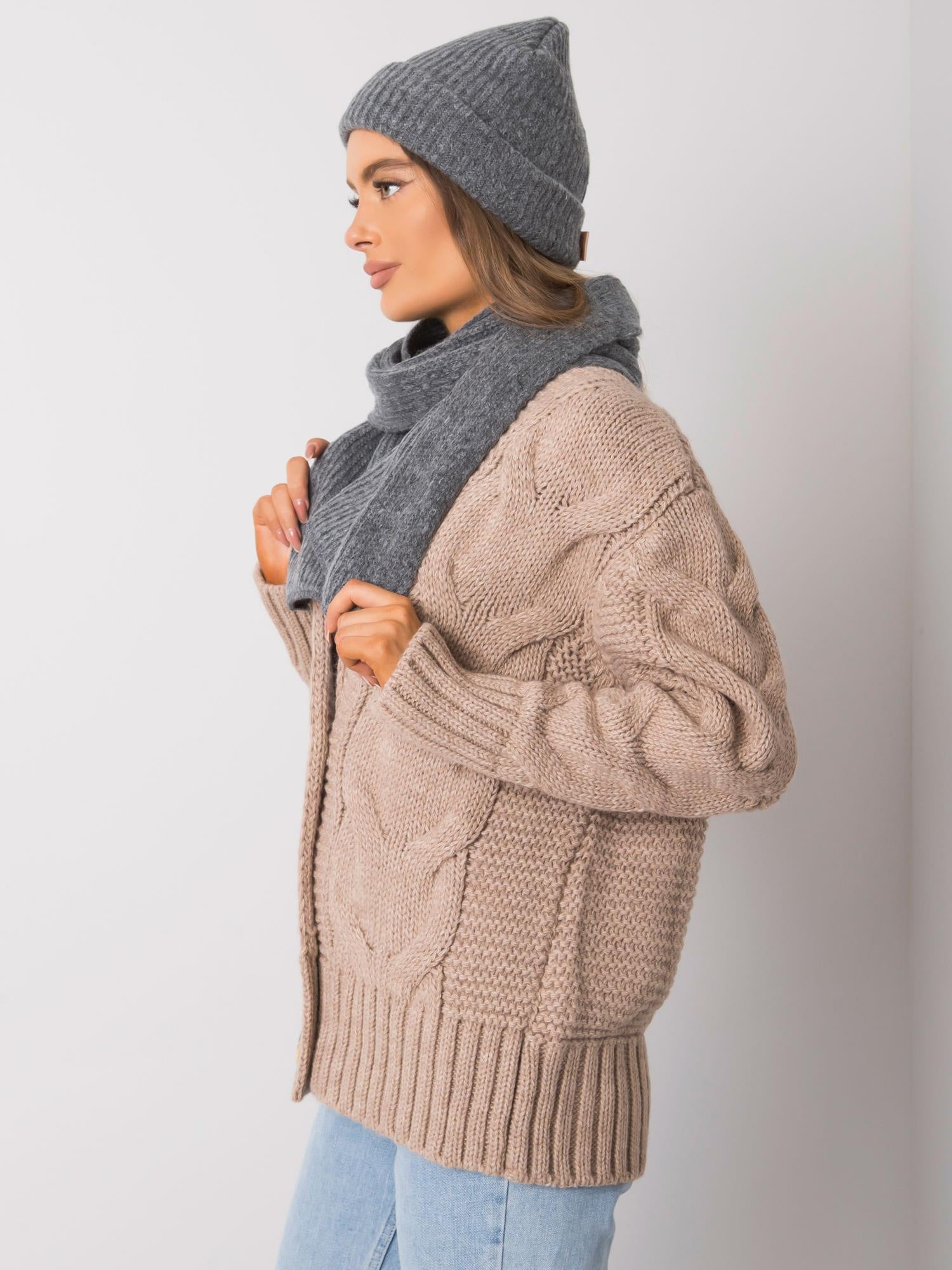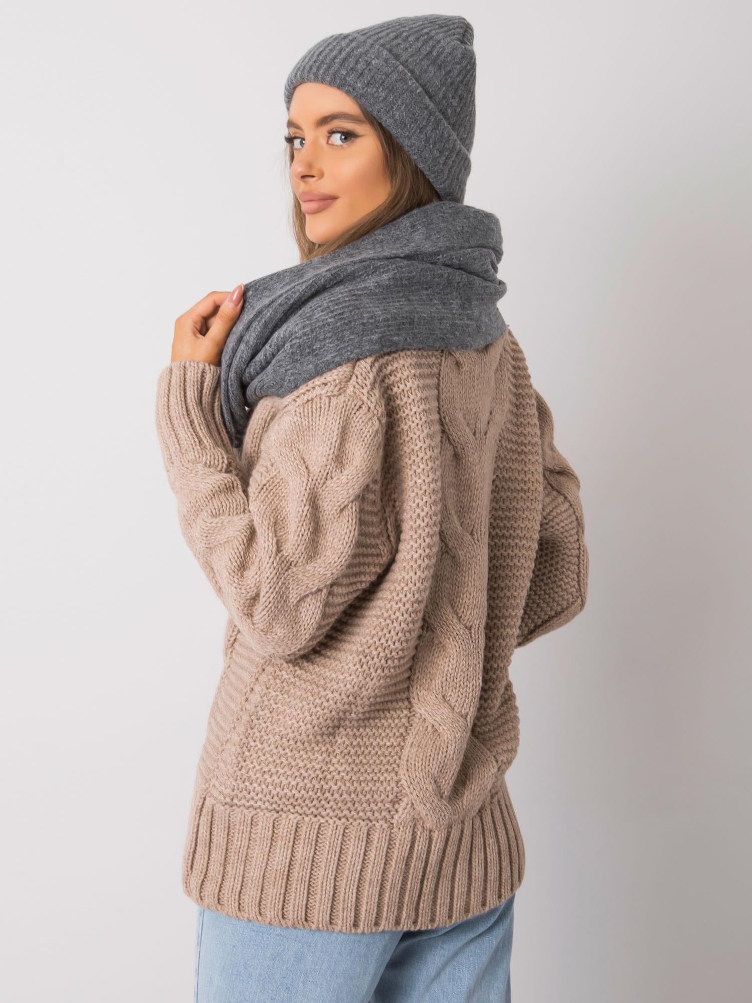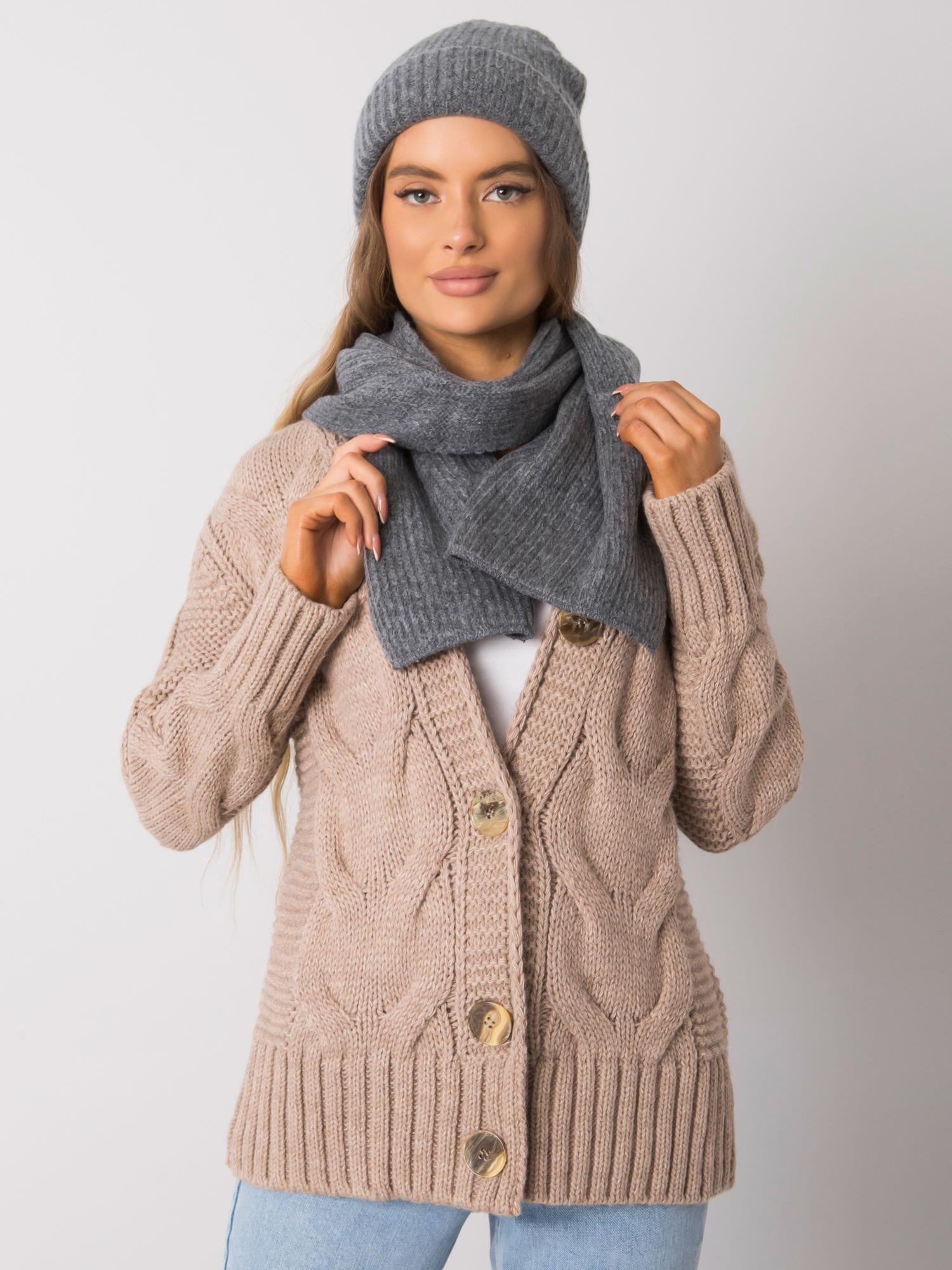 RUE PARIS Ciemnoszary dzianinowy komplet zimowy Produkt polski