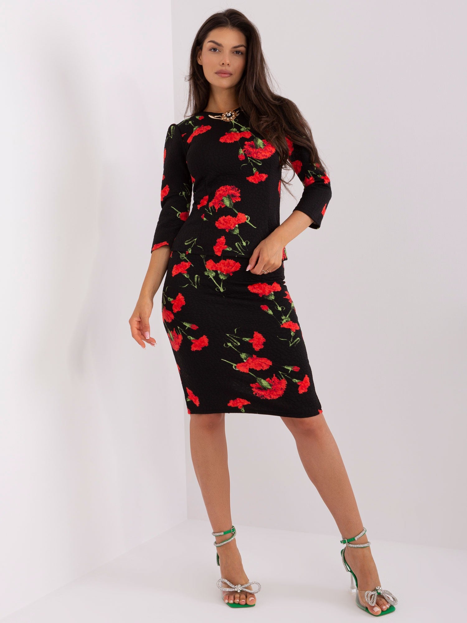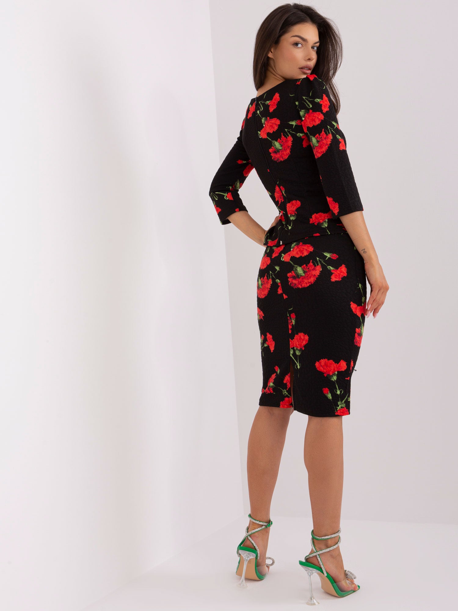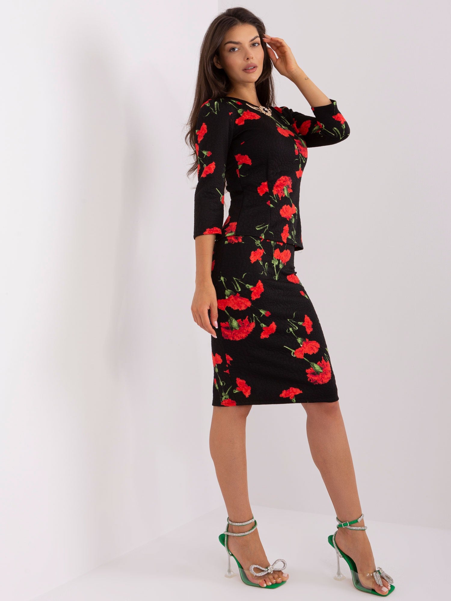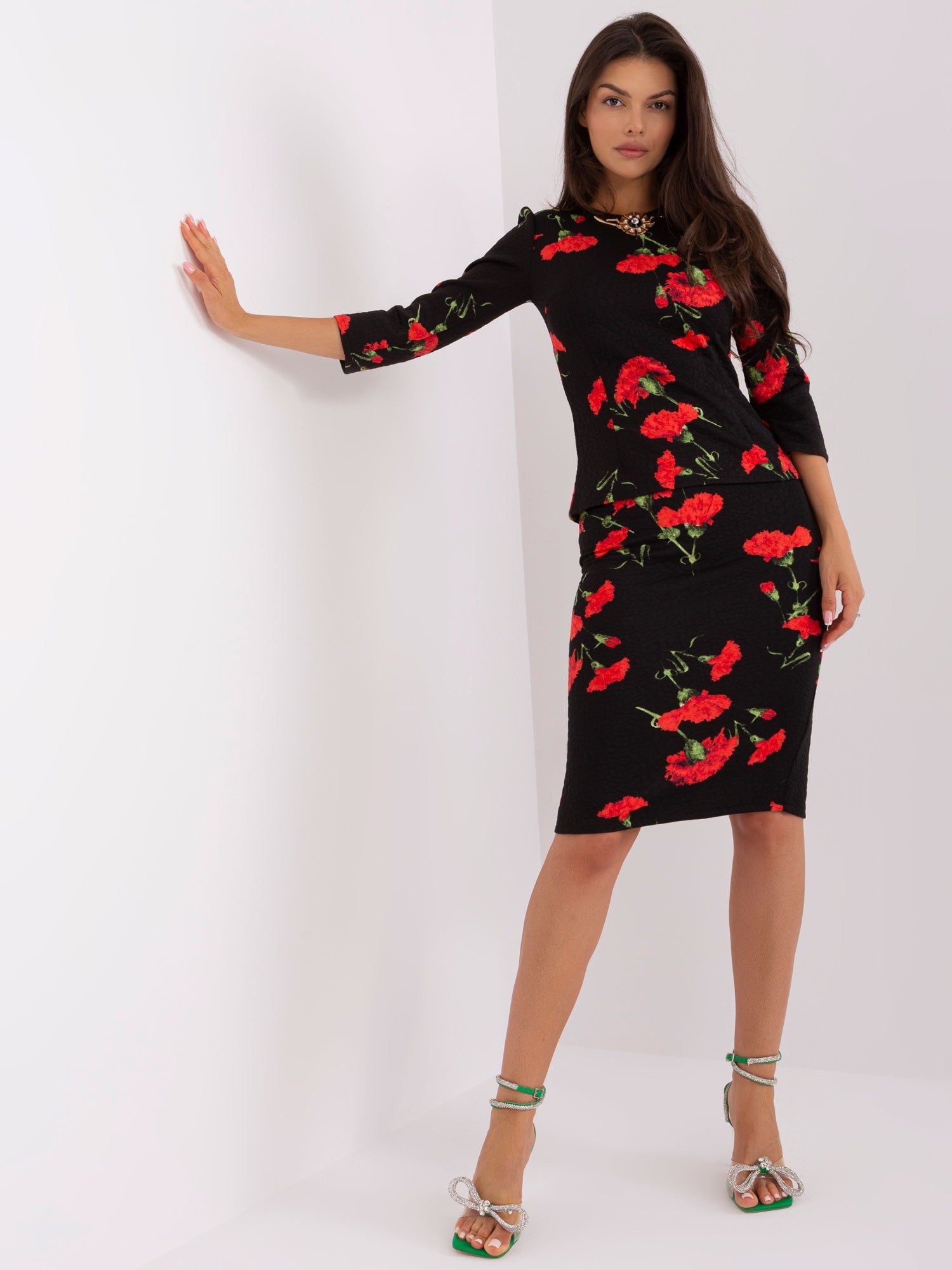 Czarno-czerwony damski komplet elegancki w kwiaty .