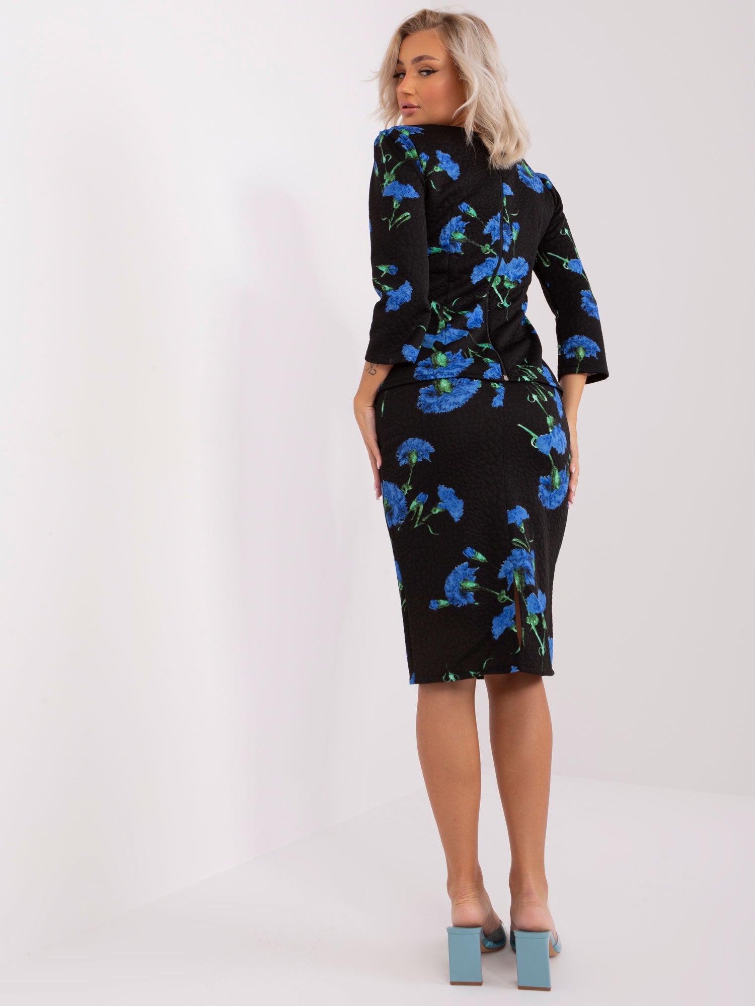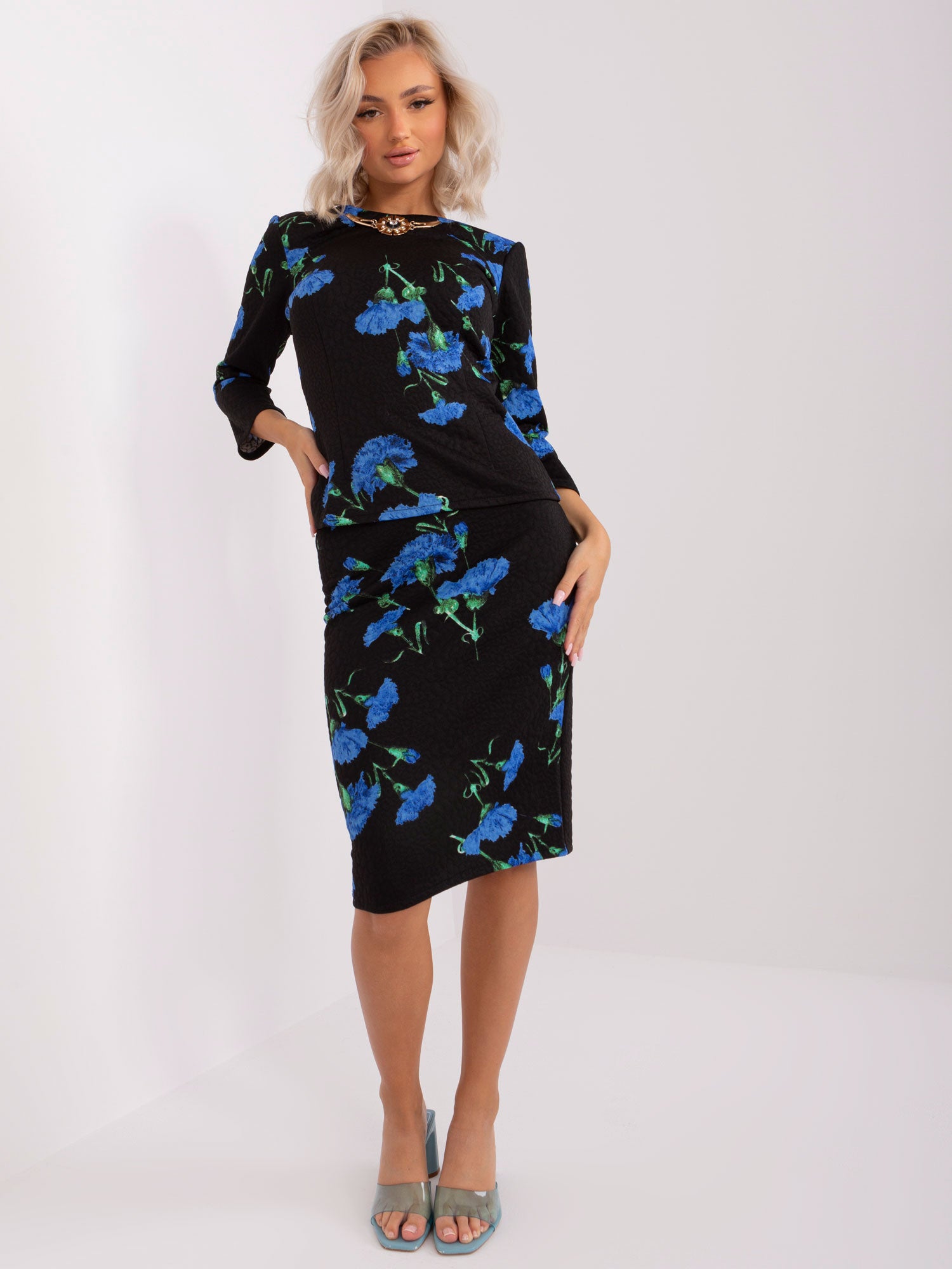 Czarno-niebieski komplet elegancki ze spódnicą .