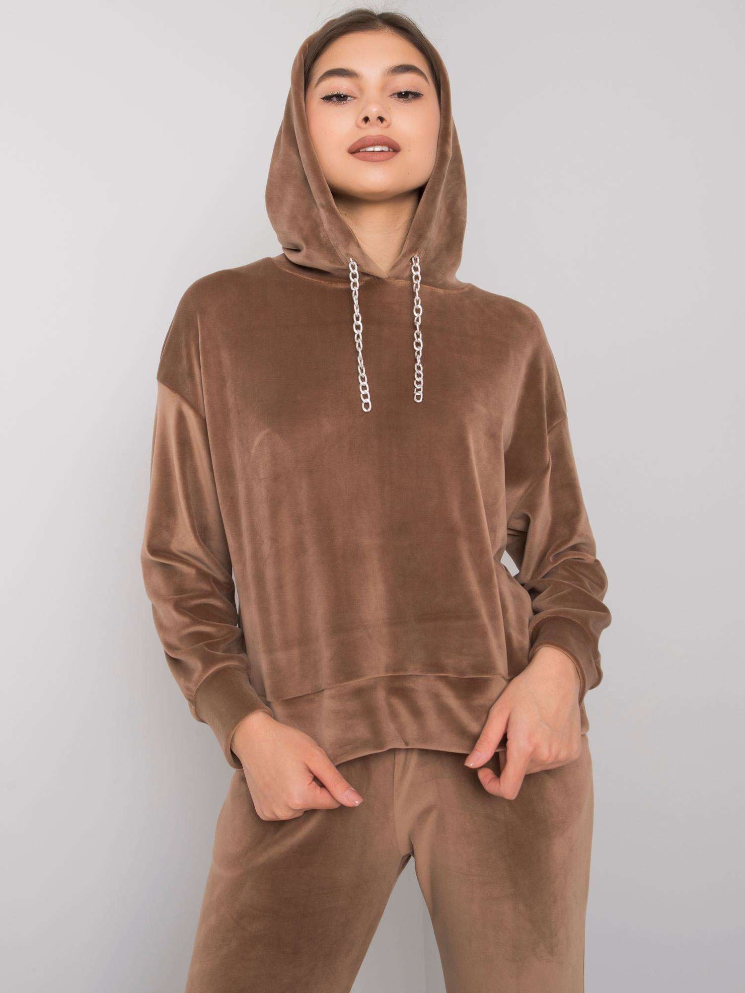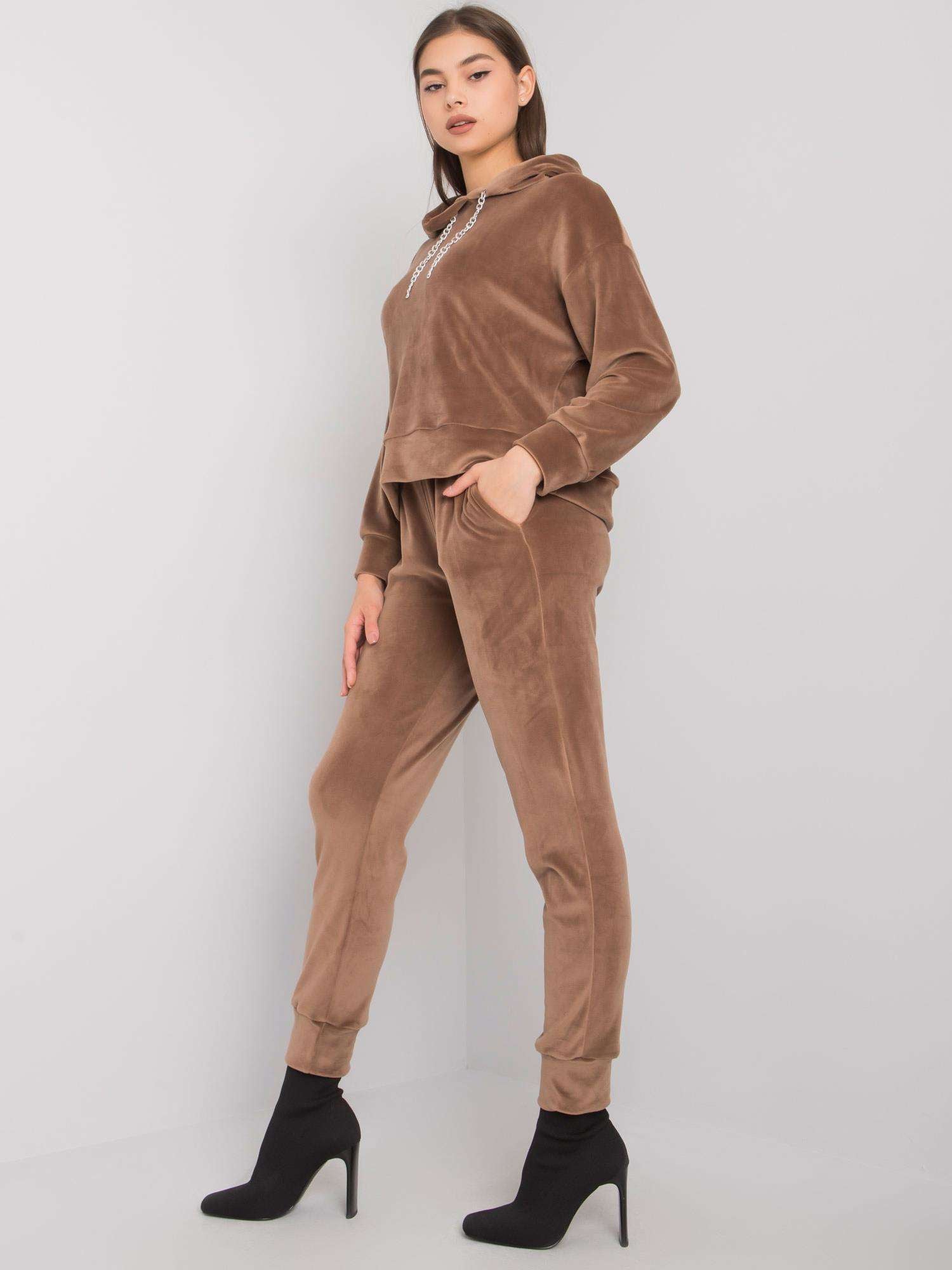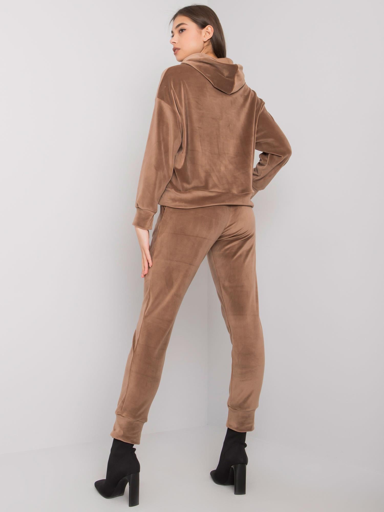Ciemnobeżowy dwuczęściowy komplet z weluru.