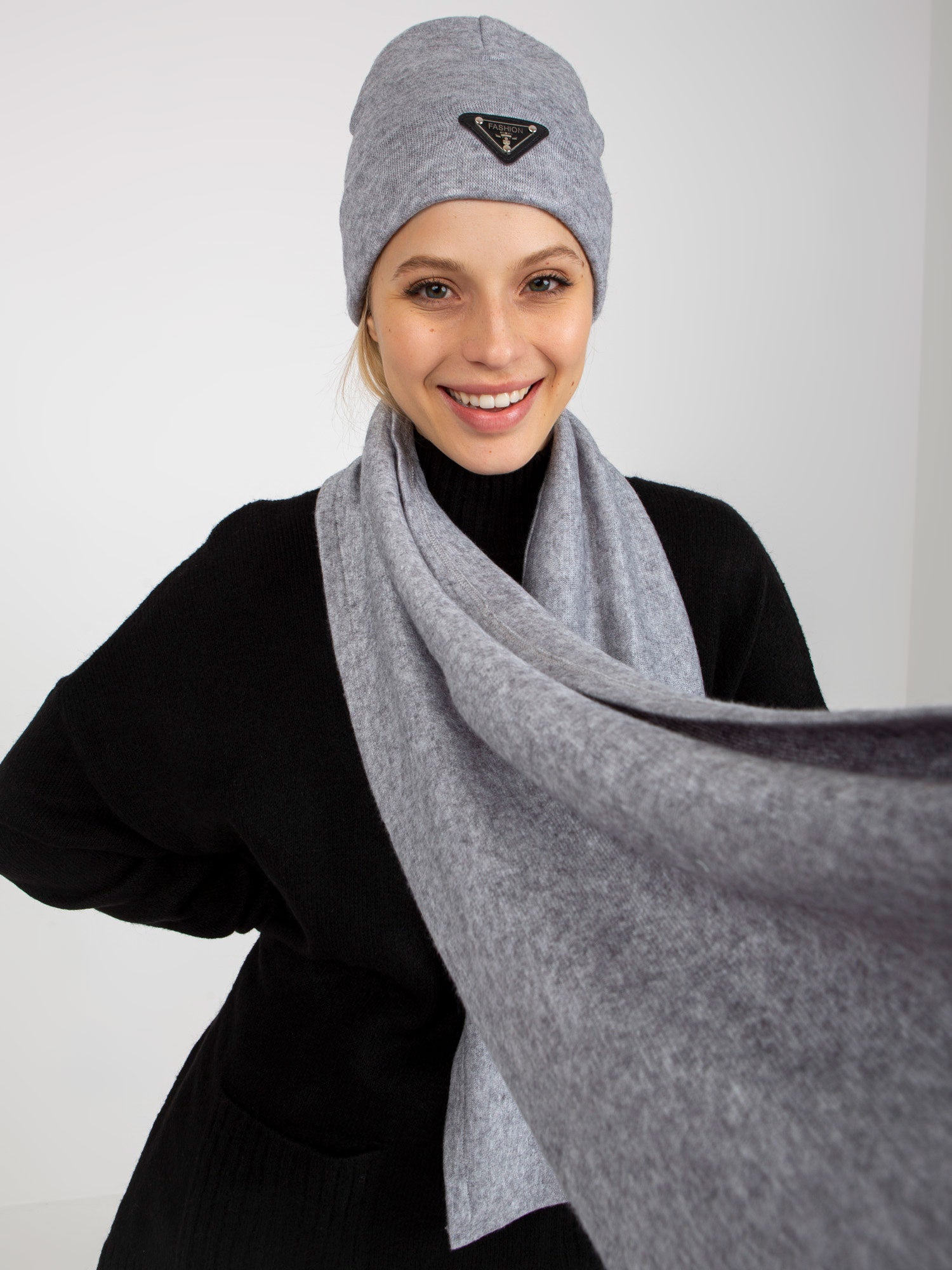 Szary komplet zimowy z szalikiem i czapką .