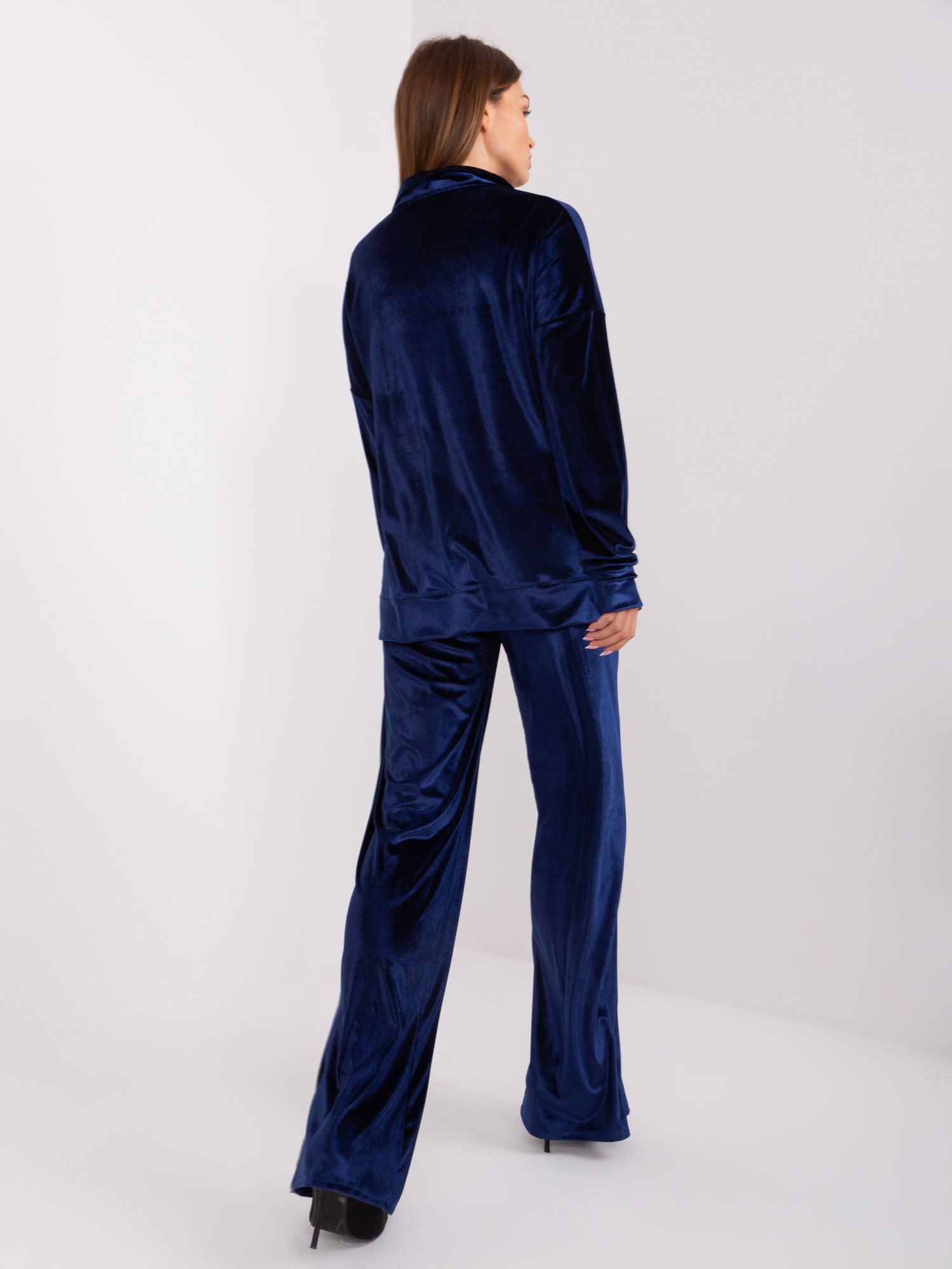 Wymiary kompletu w rozmiarze S/M mierzone na płasko: szerokość bluzki pod pachami - 60 cm, długość rękawa - 65 cm, długość bluzki - 66 cm, szerokość spodni w pasie - 31 cm, wysokość stanu - 31 cm, długość spodni - 111 cm.
