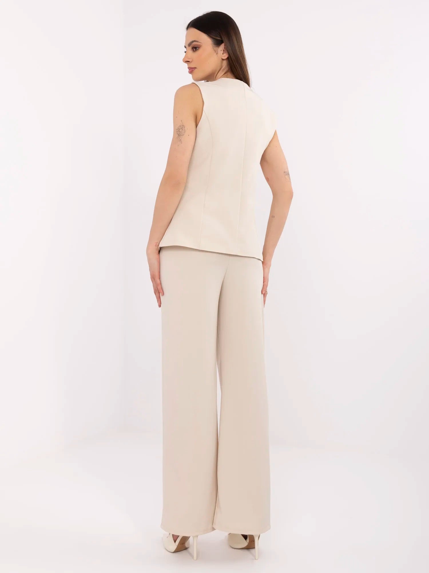 Wymiary kamizelki w rozmiarze S. mierzone na płasko: szerokość pod pachami - 47 cm, szerokość w biodrach - 54 cm, długość całkowita - 61 cm.