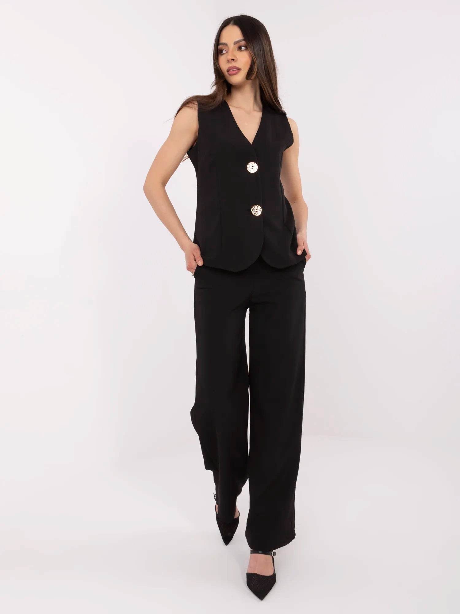 Wymiary kamizelki w rozmiarze S. mierzone na płasko: szerokość pod pachami - 47 cm, szerokość w biodrach - 54 cm, długość całkowita - 61 cm.