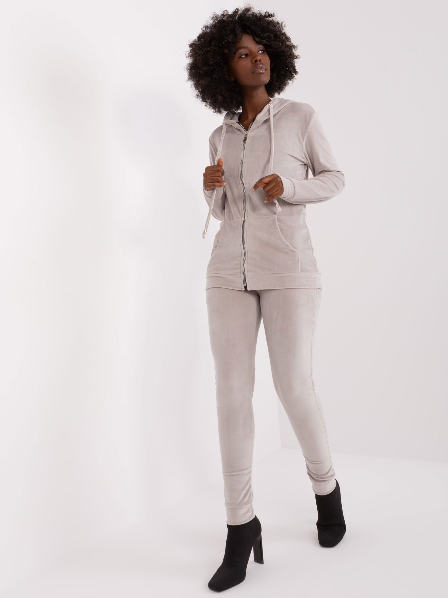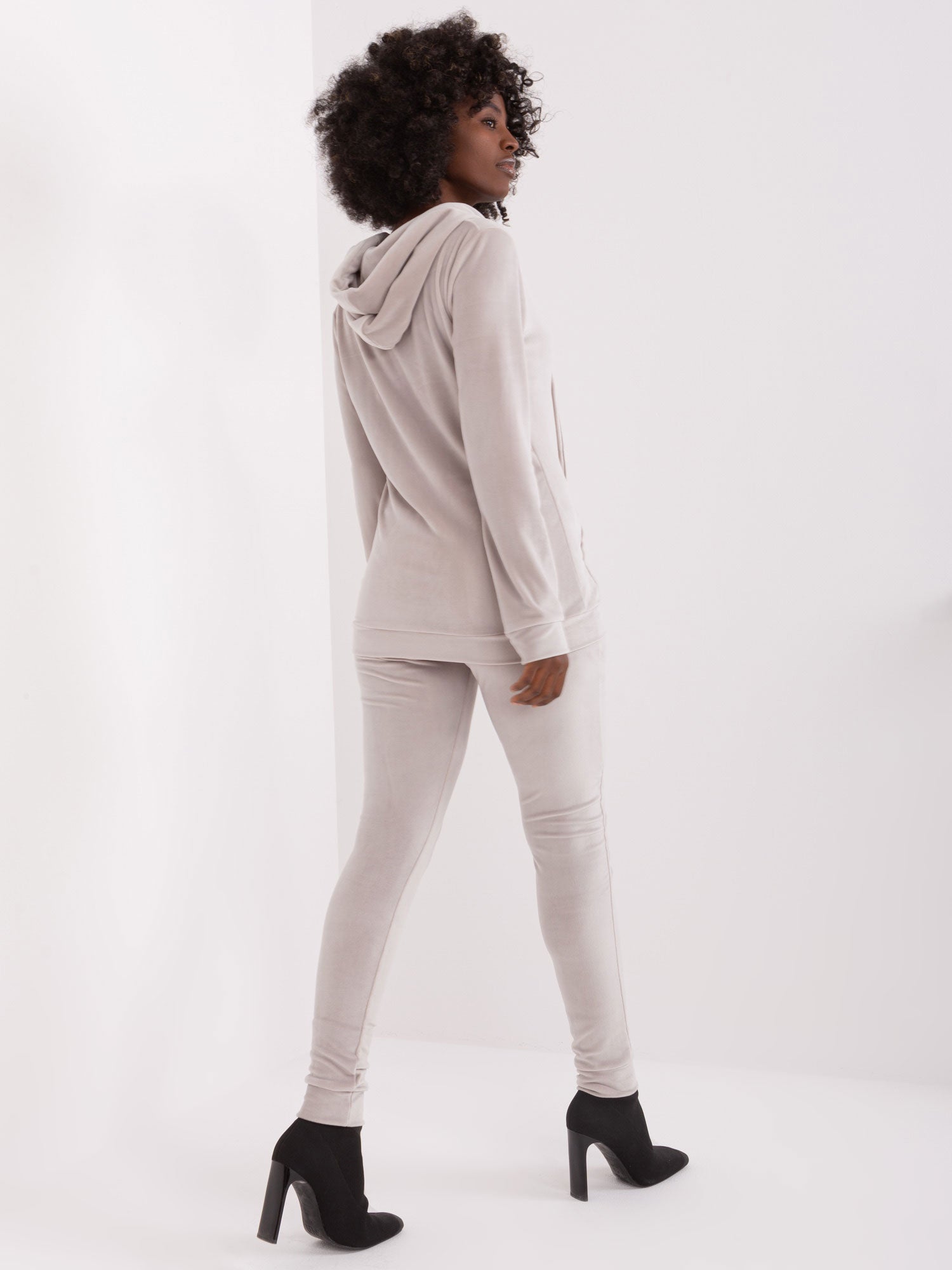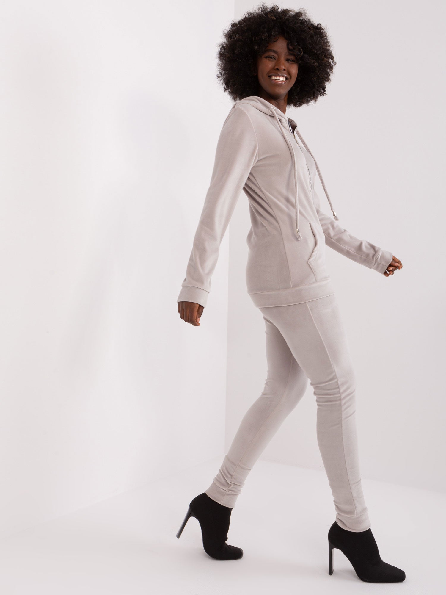 Wymiary kompletu w rozmiarze S mierzone na płasko: szerokość bluzy pod pachami - 48 cm, długość rękawa - 61 cm, długość bluzy - 68 cm, szerokość spodni w pasie - 36 cm, wysokość stanu - 26 cm, długość spodni - 96 cm.