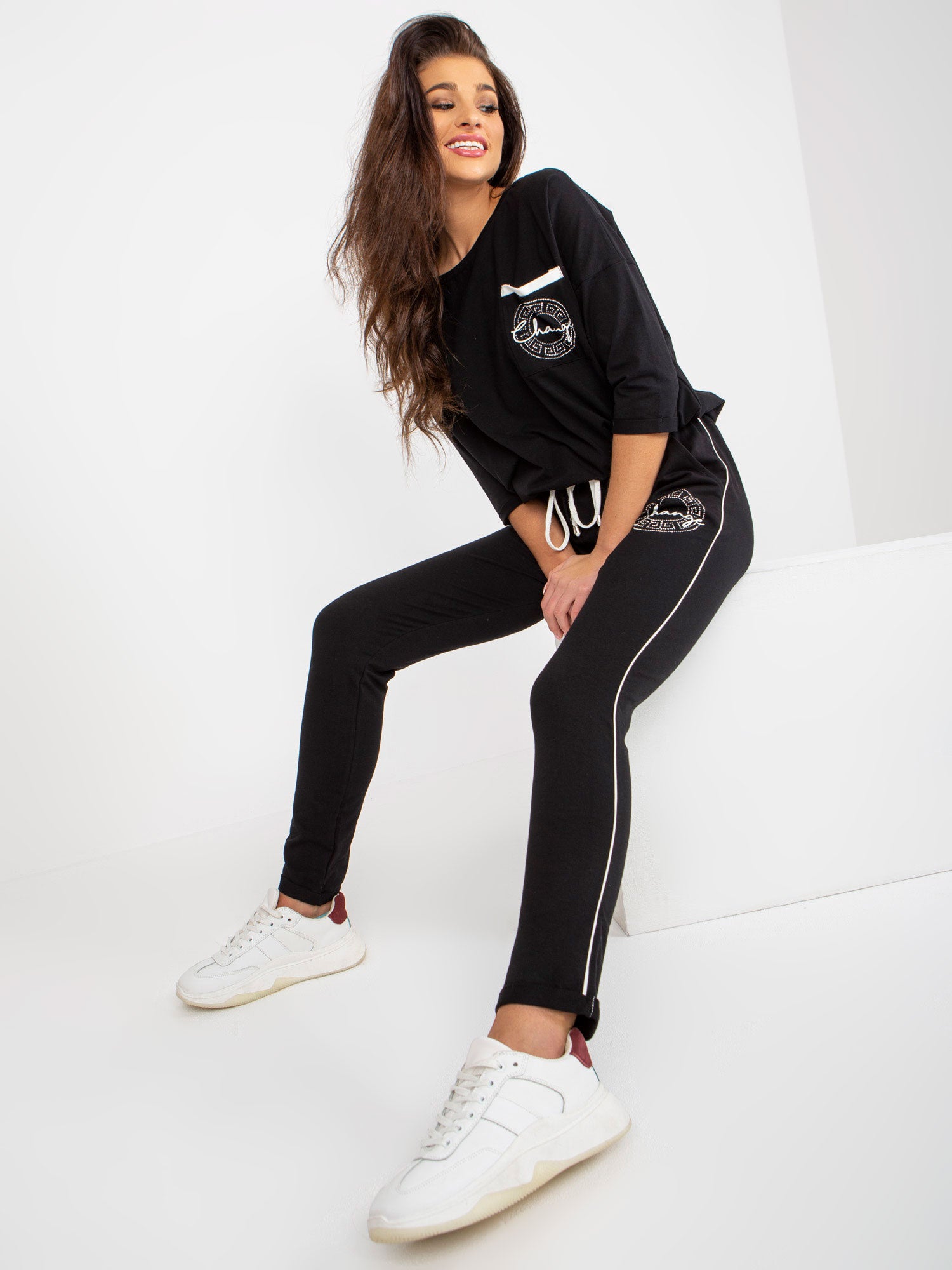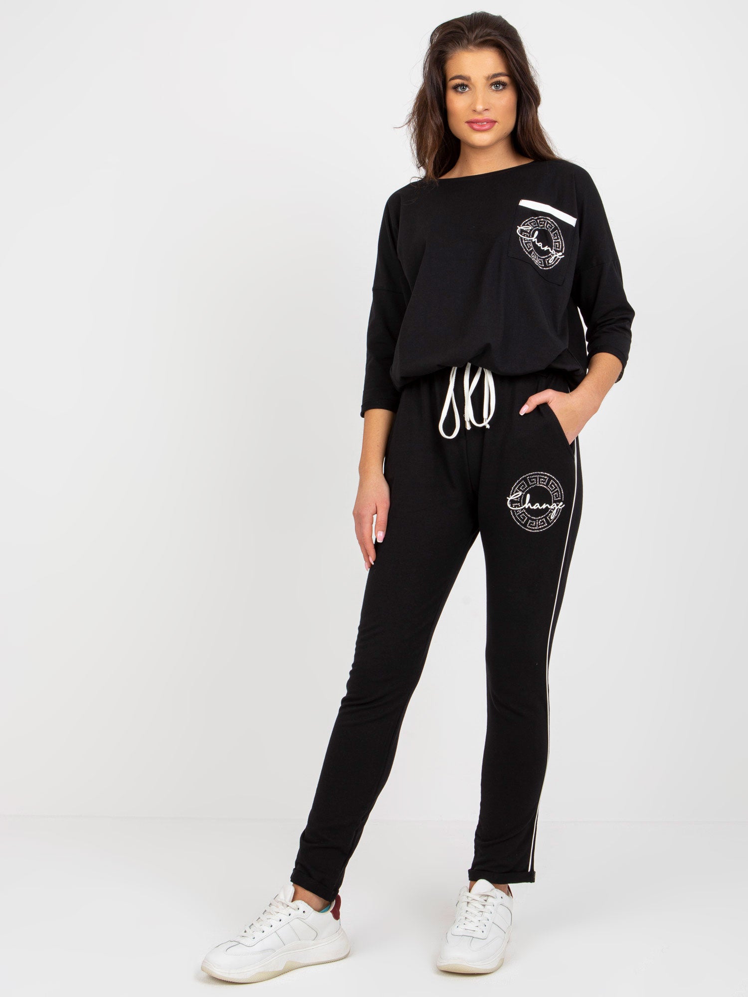 Czarny komplet dresowy z bluzką z rękawem 3/4 .