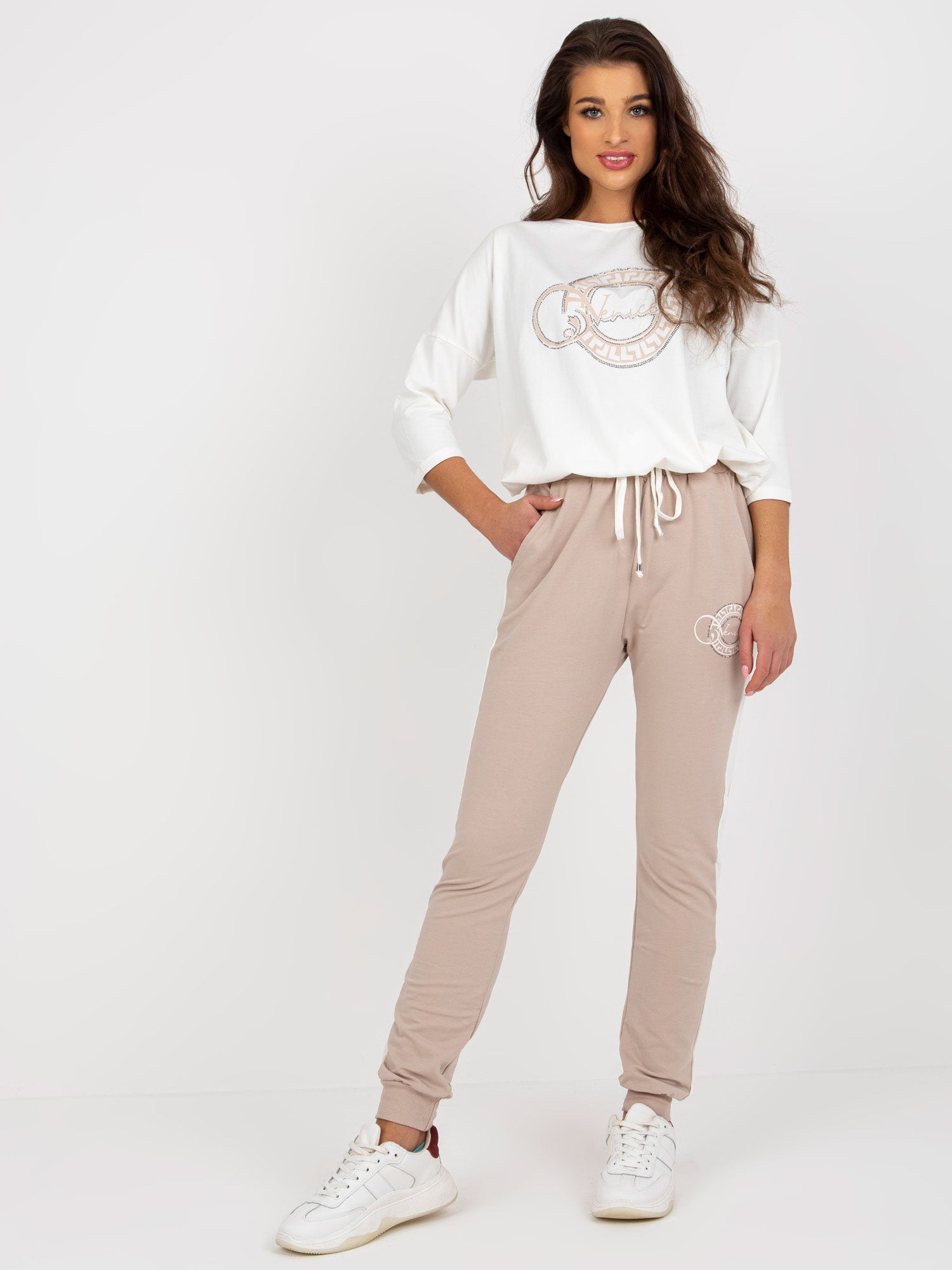 Ecru-beżowy komplet dresowy z bluzką z rękawem 3/4 .