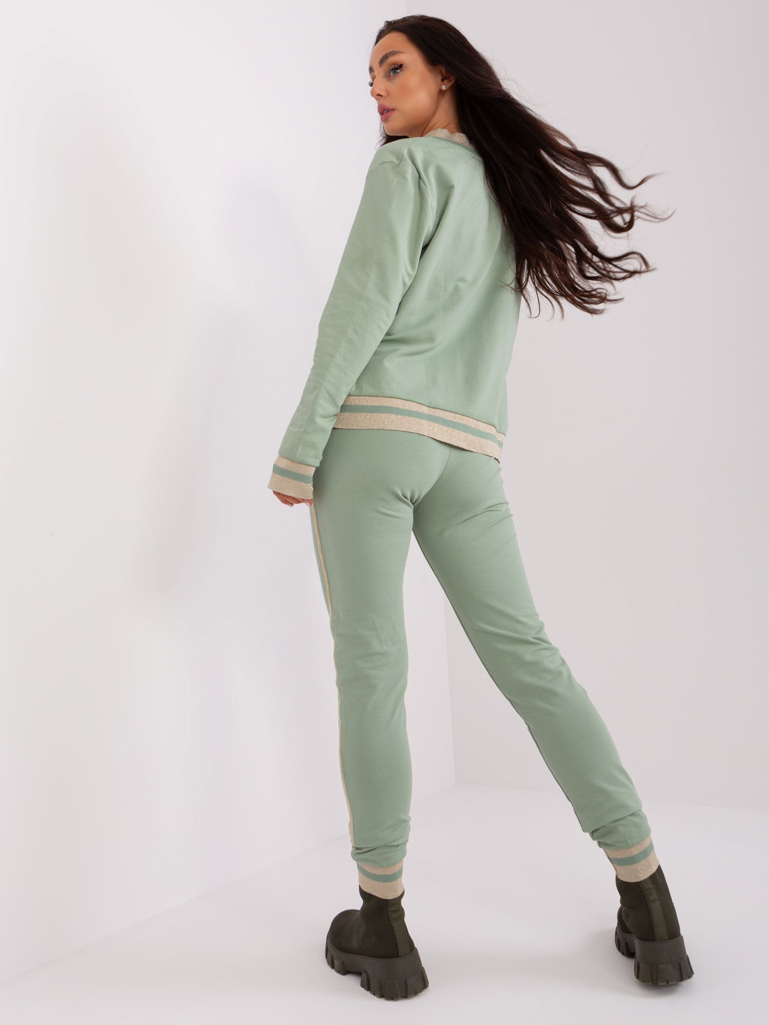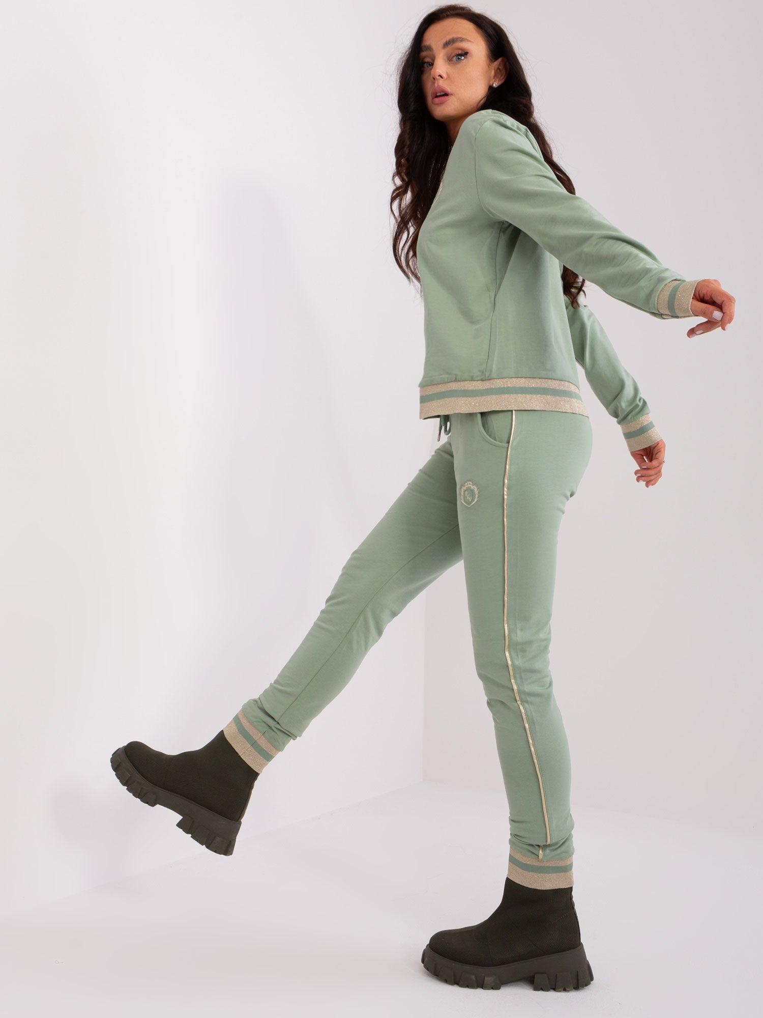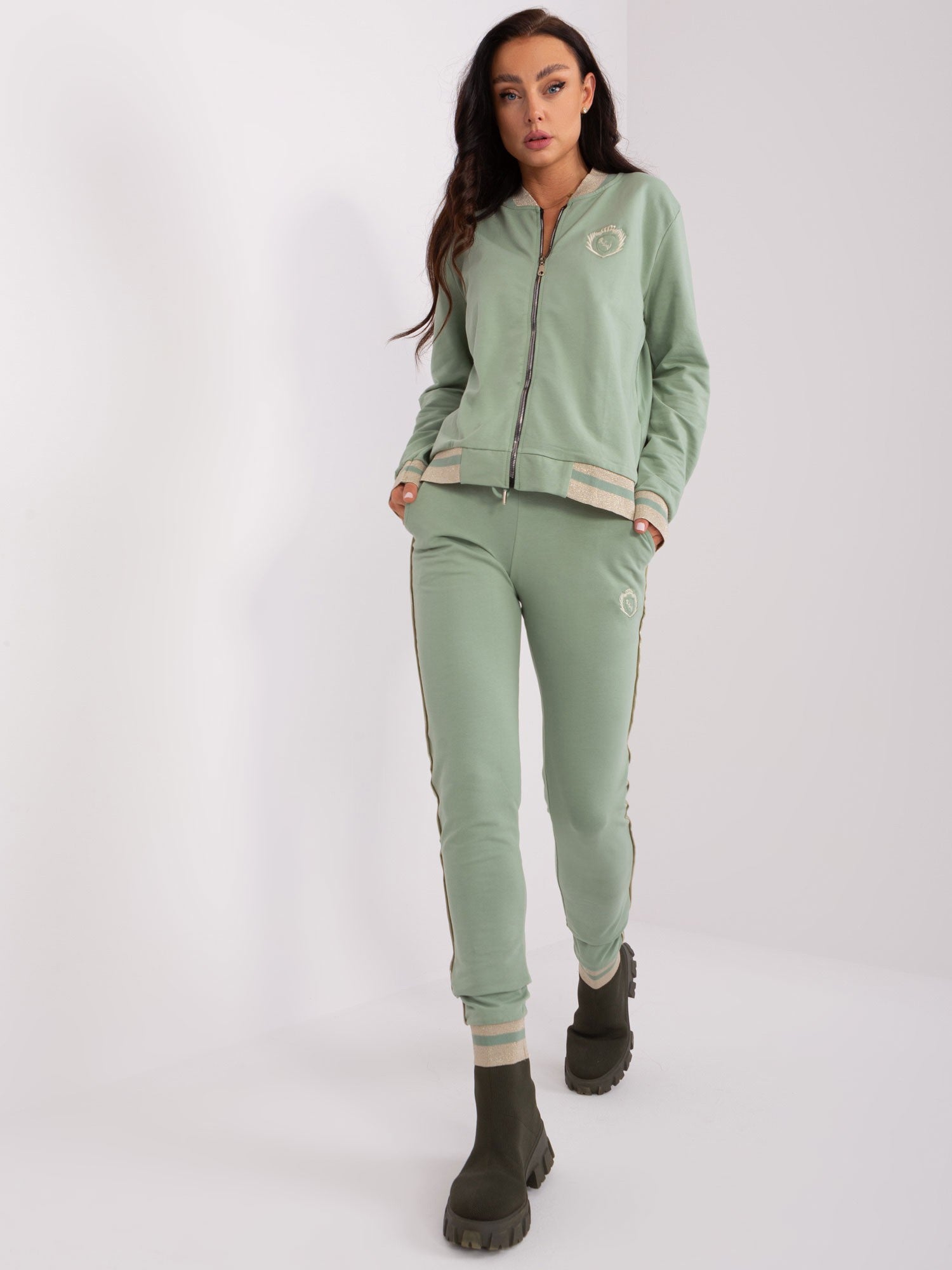 Pistacjowy komplet dresowy z naszywkami .