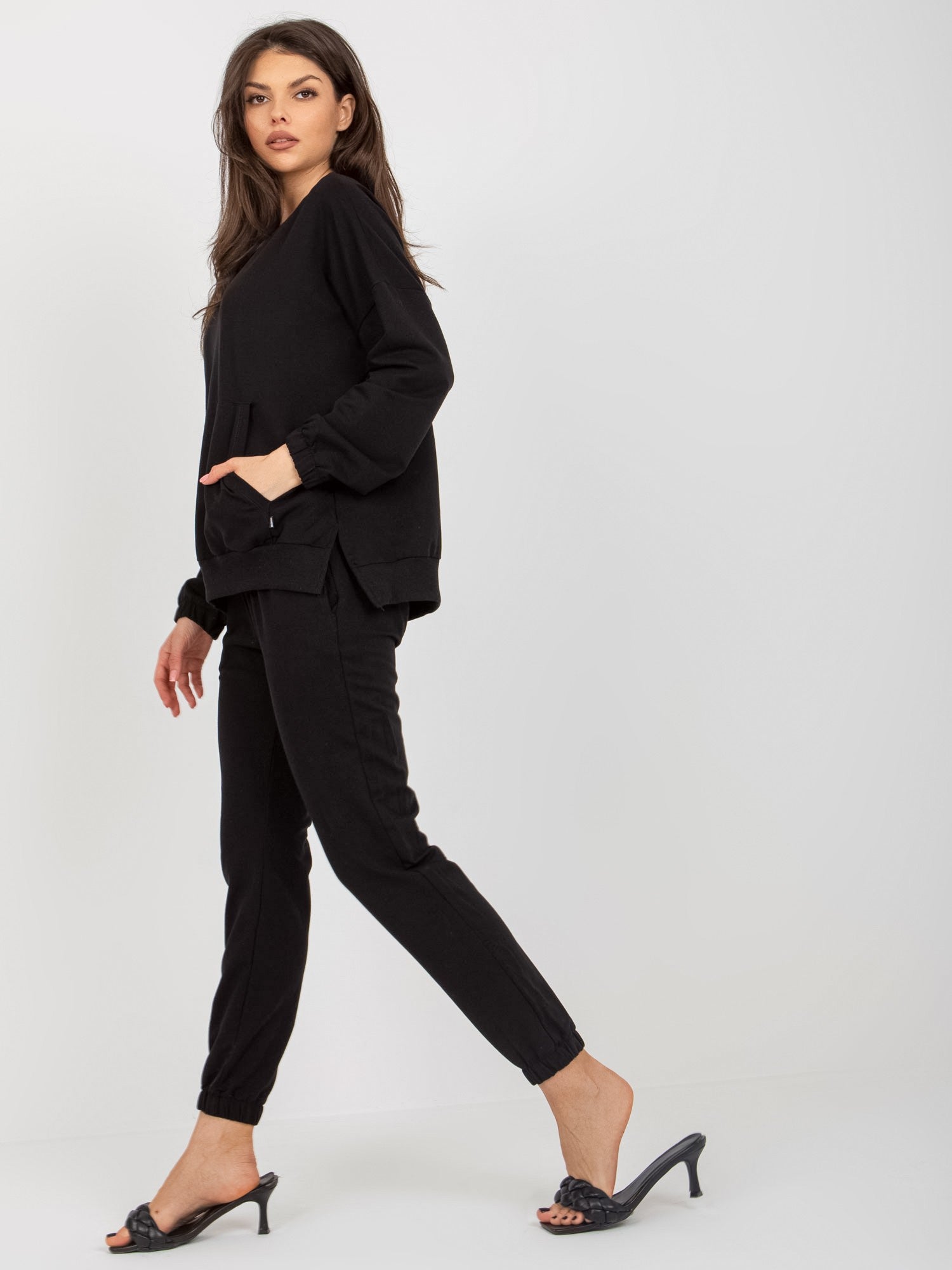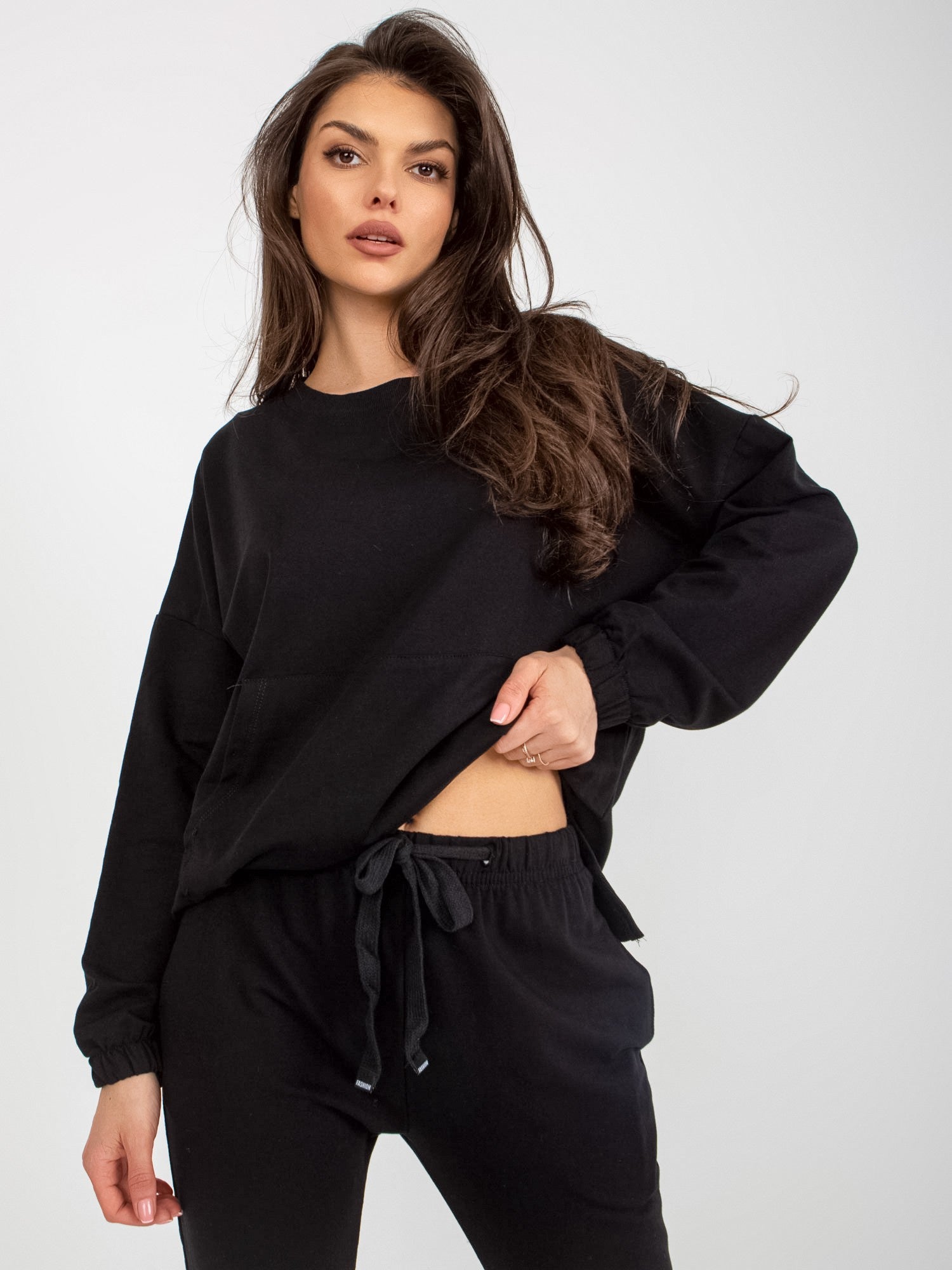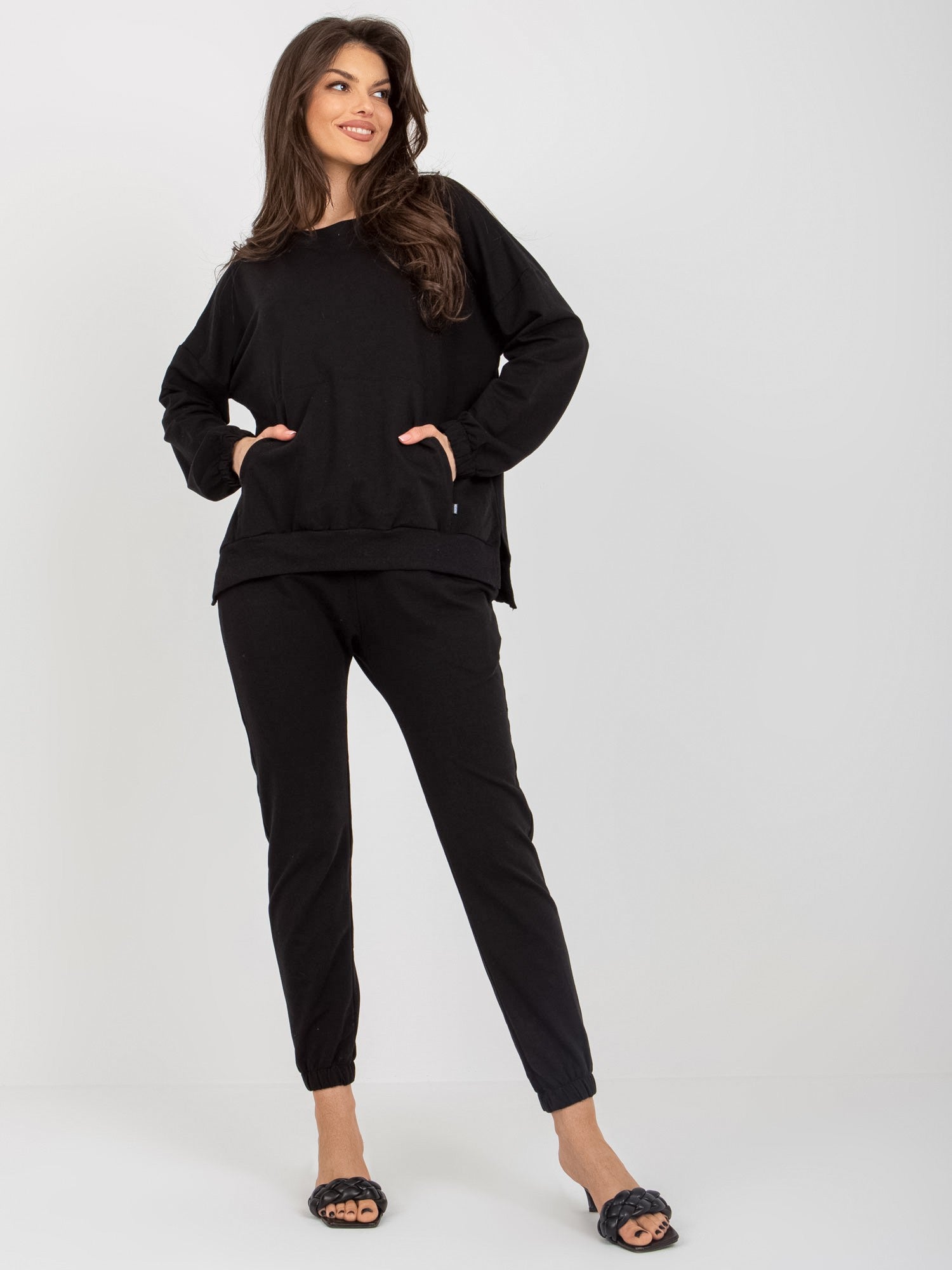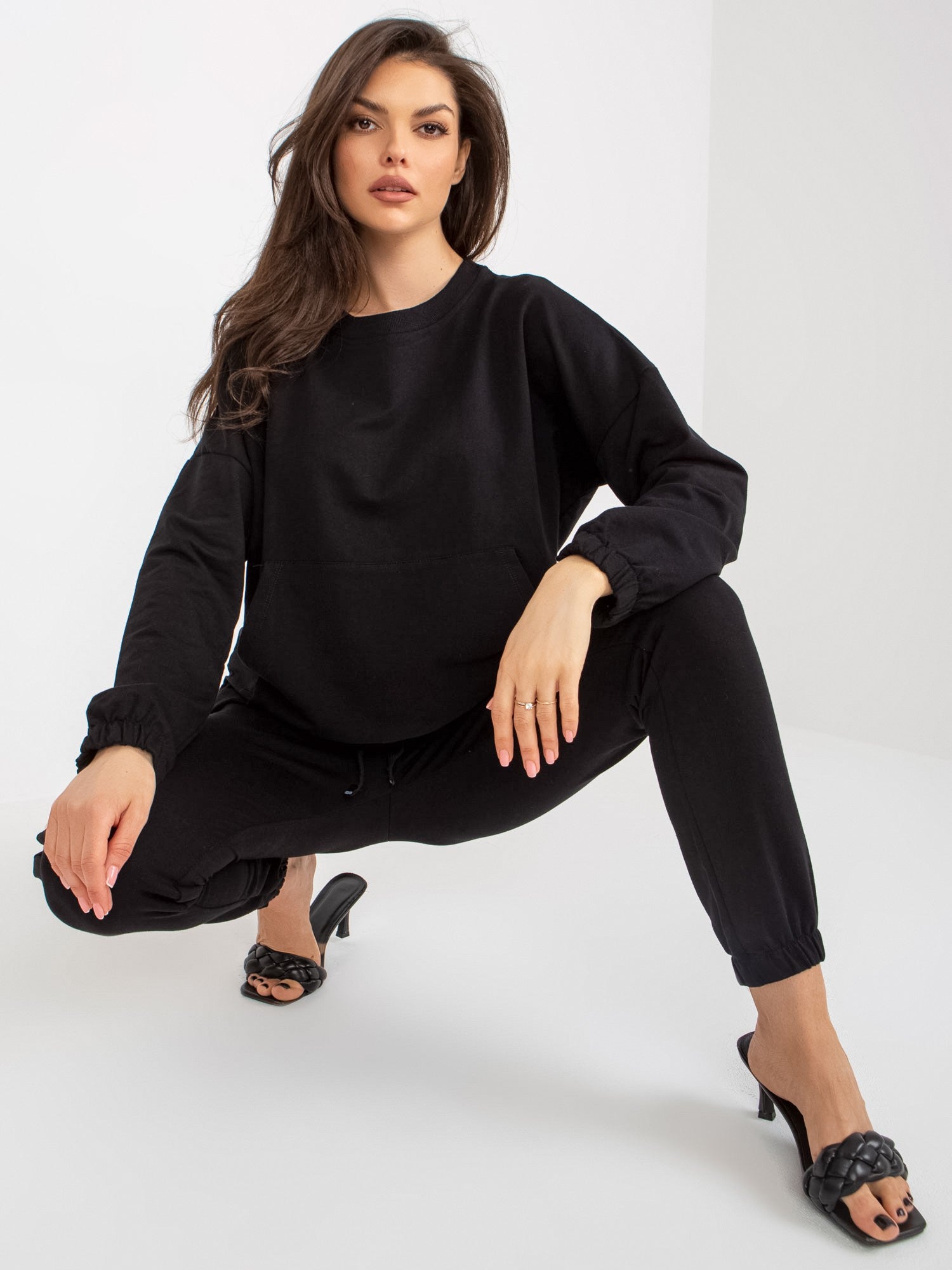 Czarny dresowy komplet basic z bluzą bez kaptura .
