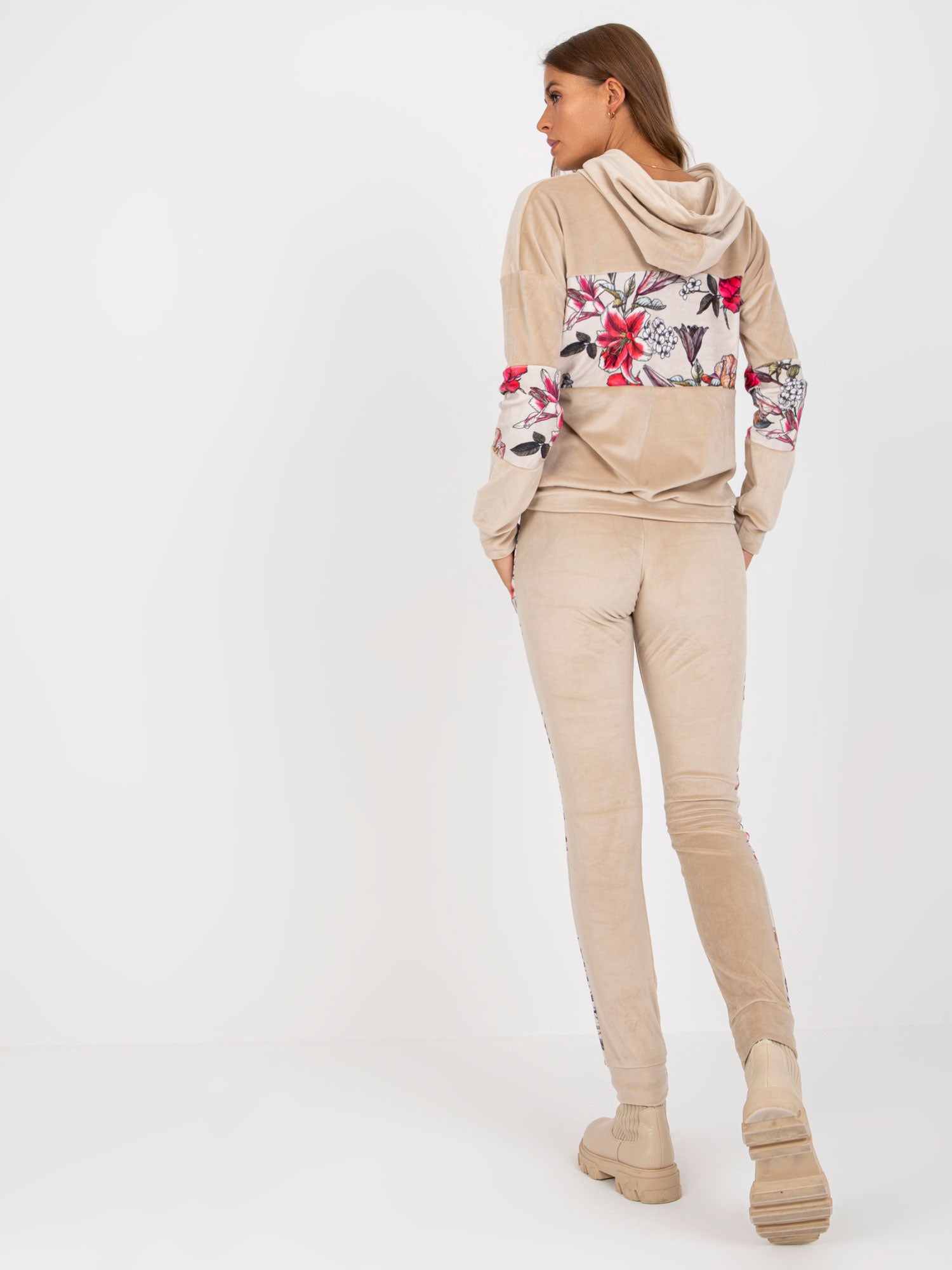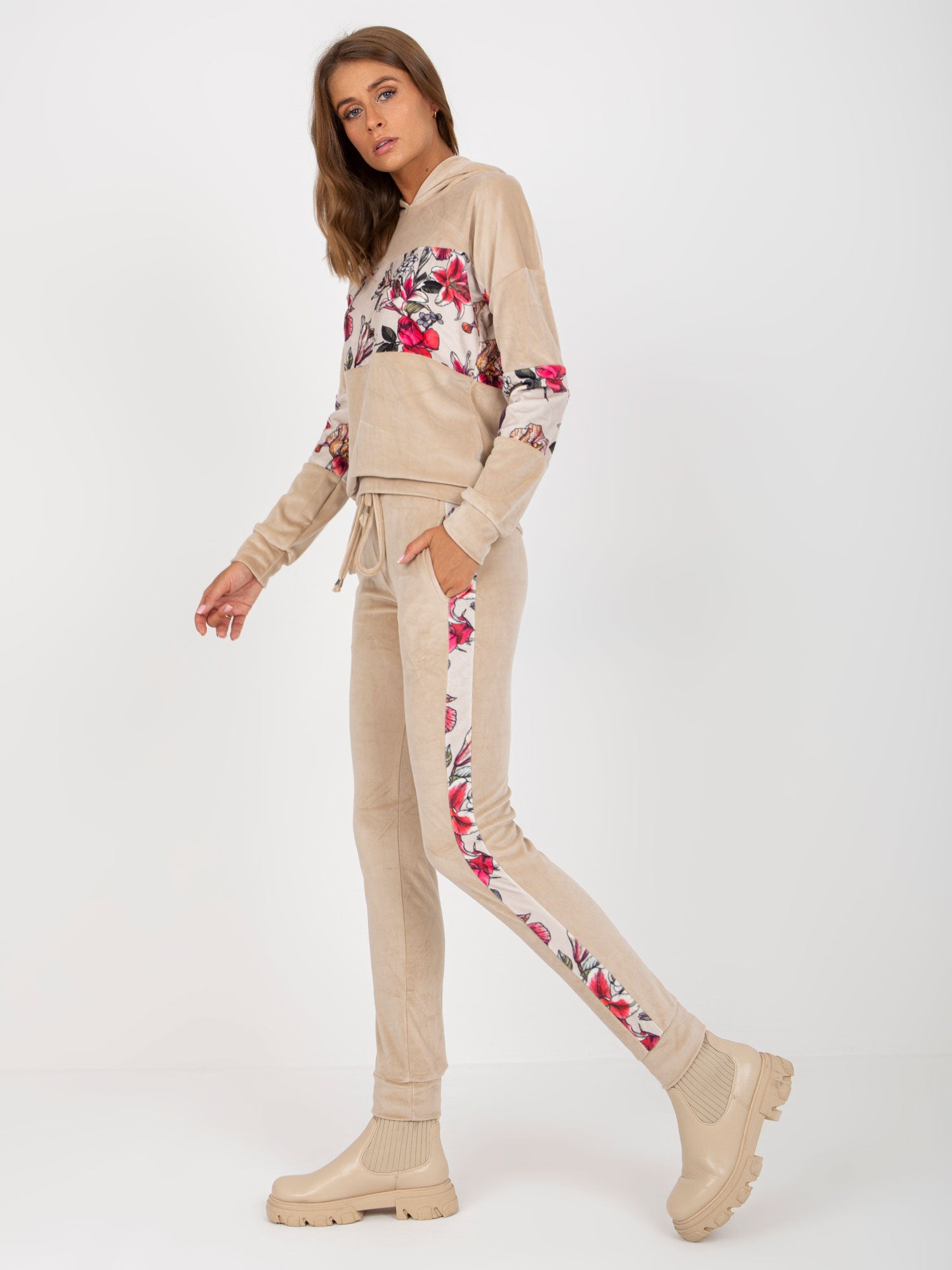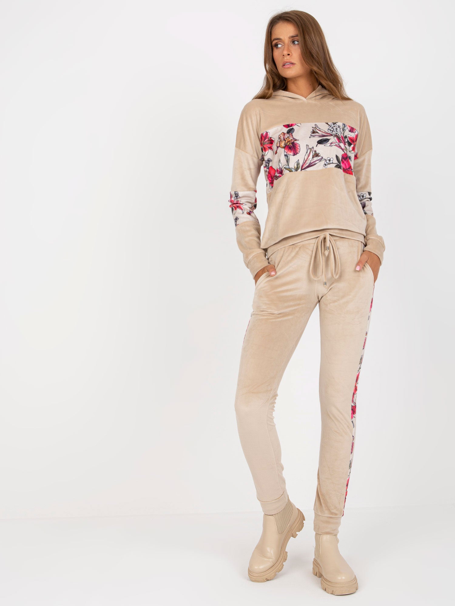 Beżowy dwuczęściowy damski komplet z weluru RUE PARIS .
