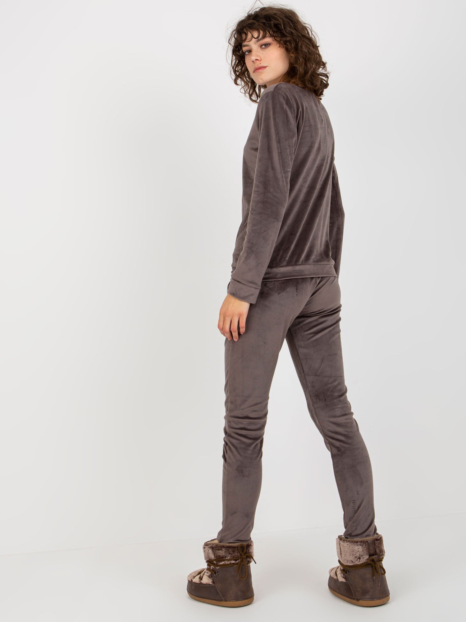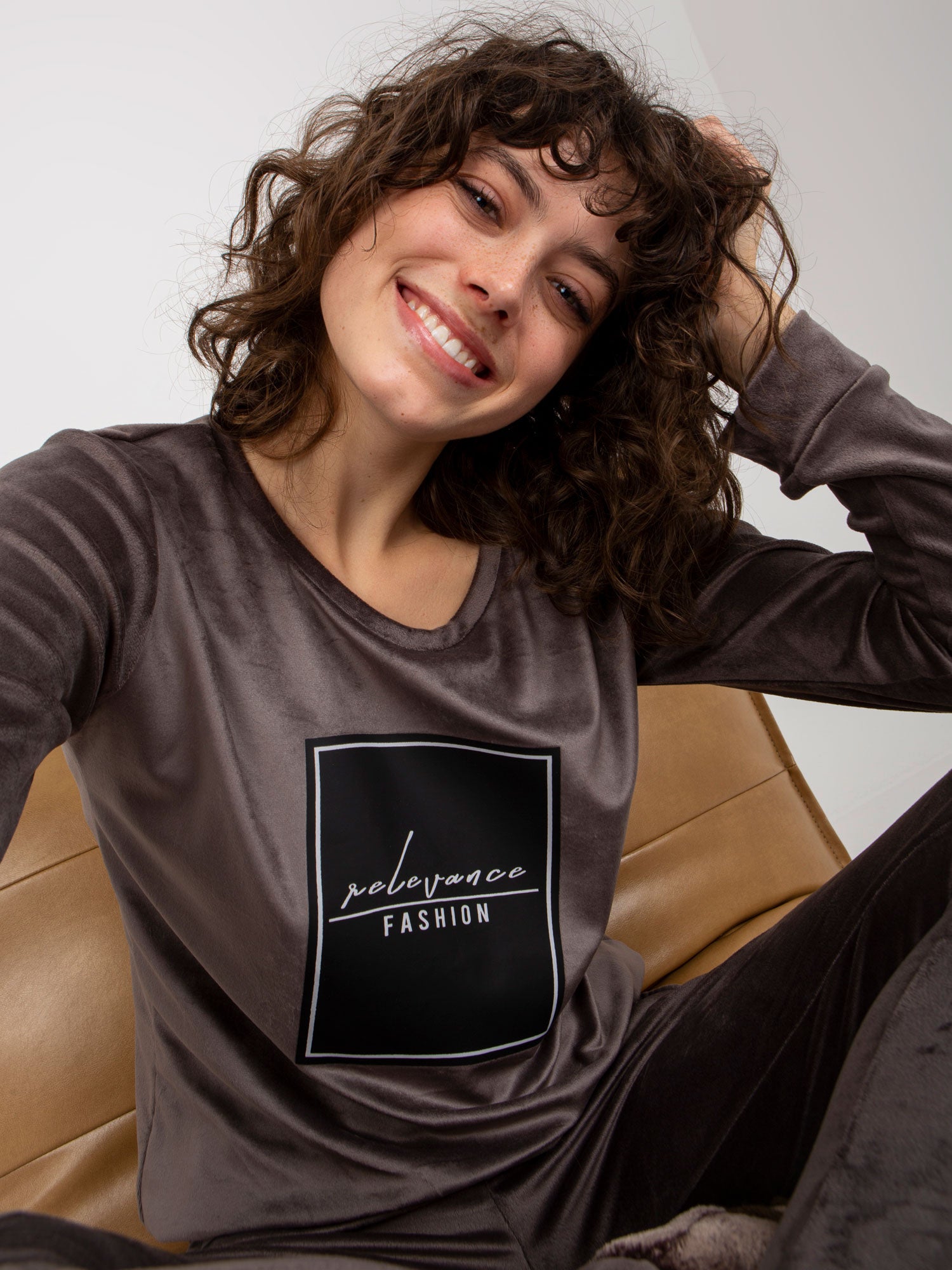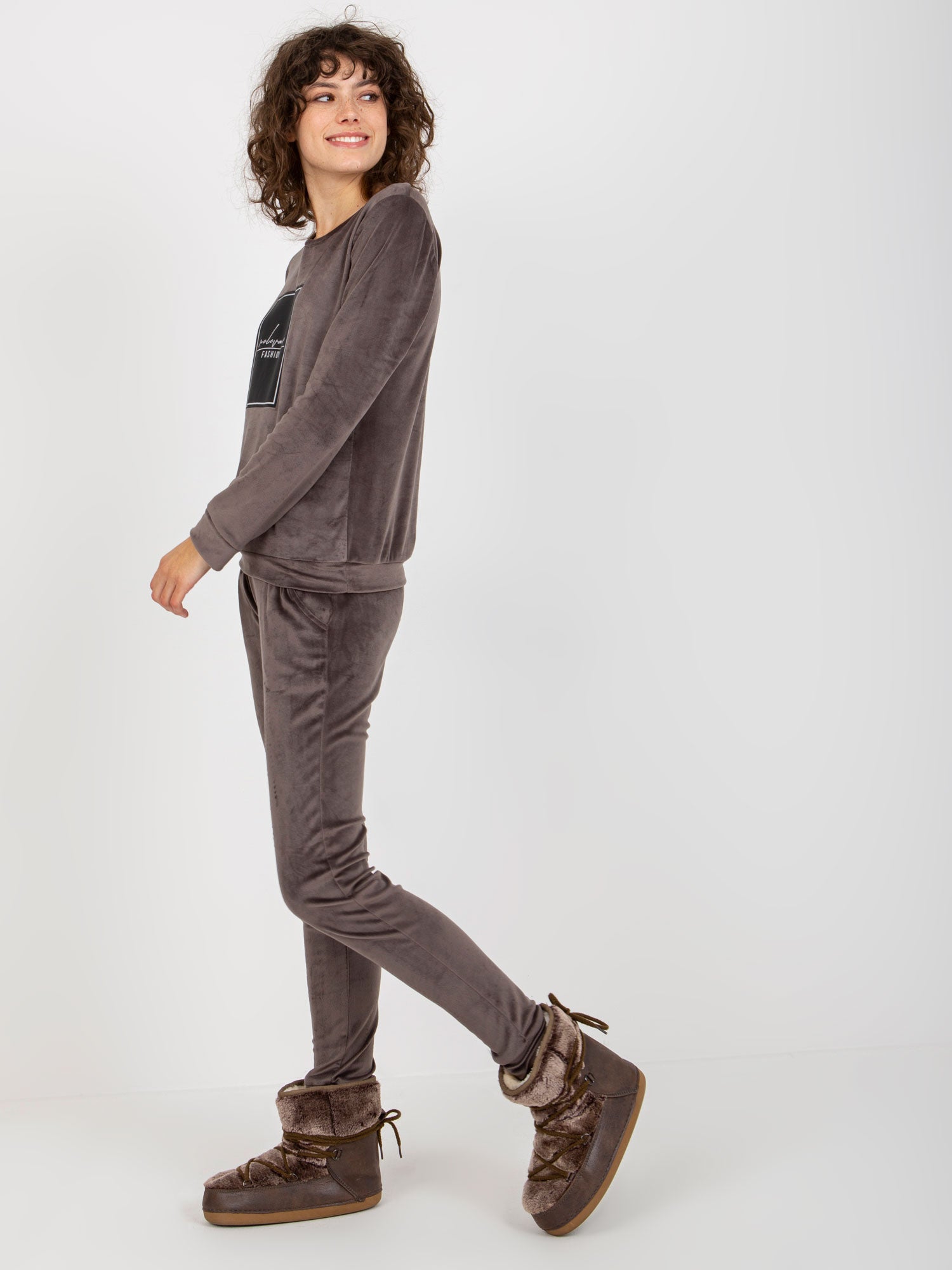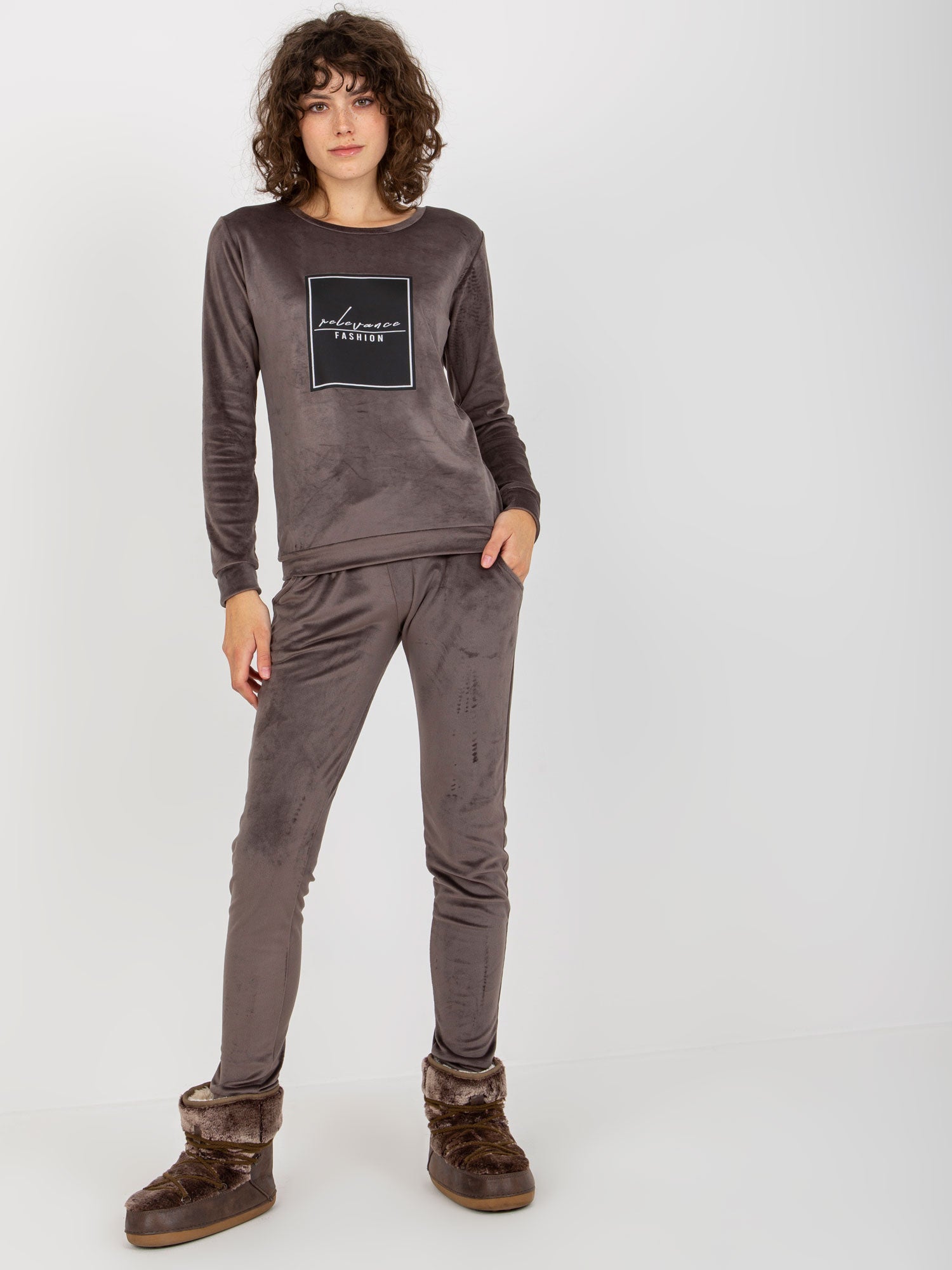 Ciemnoszary damski komplet welurowy z nadrukiem .