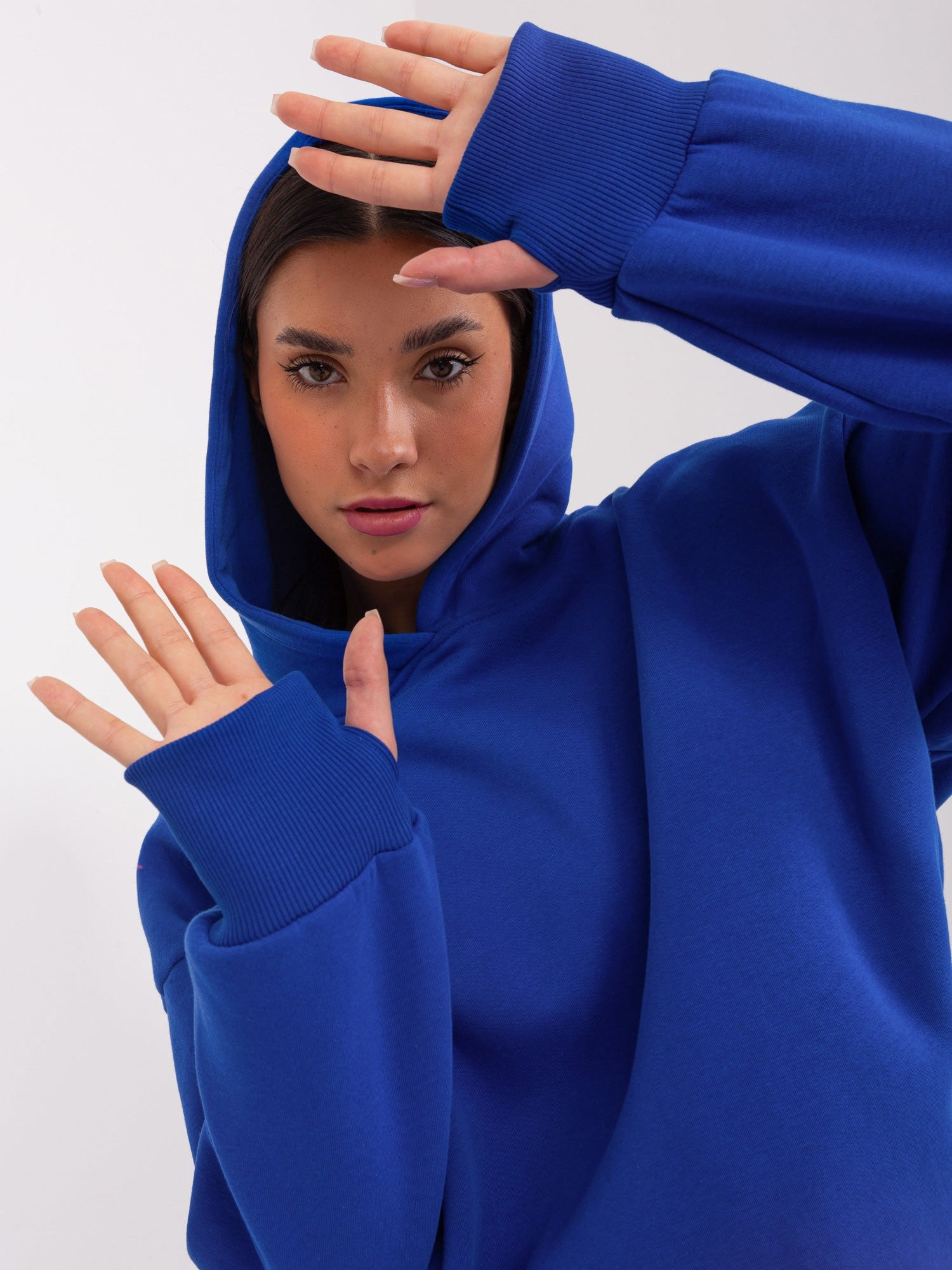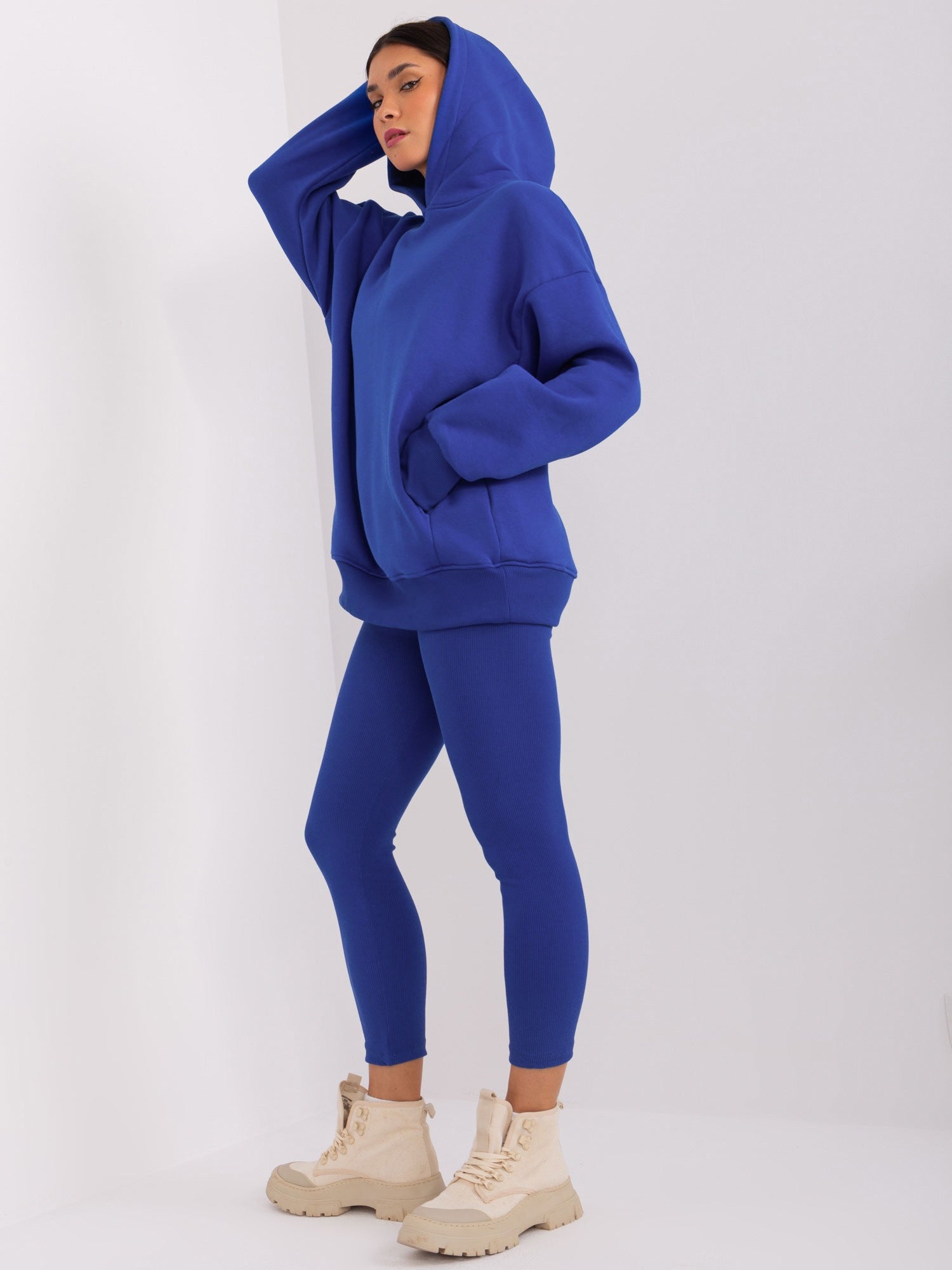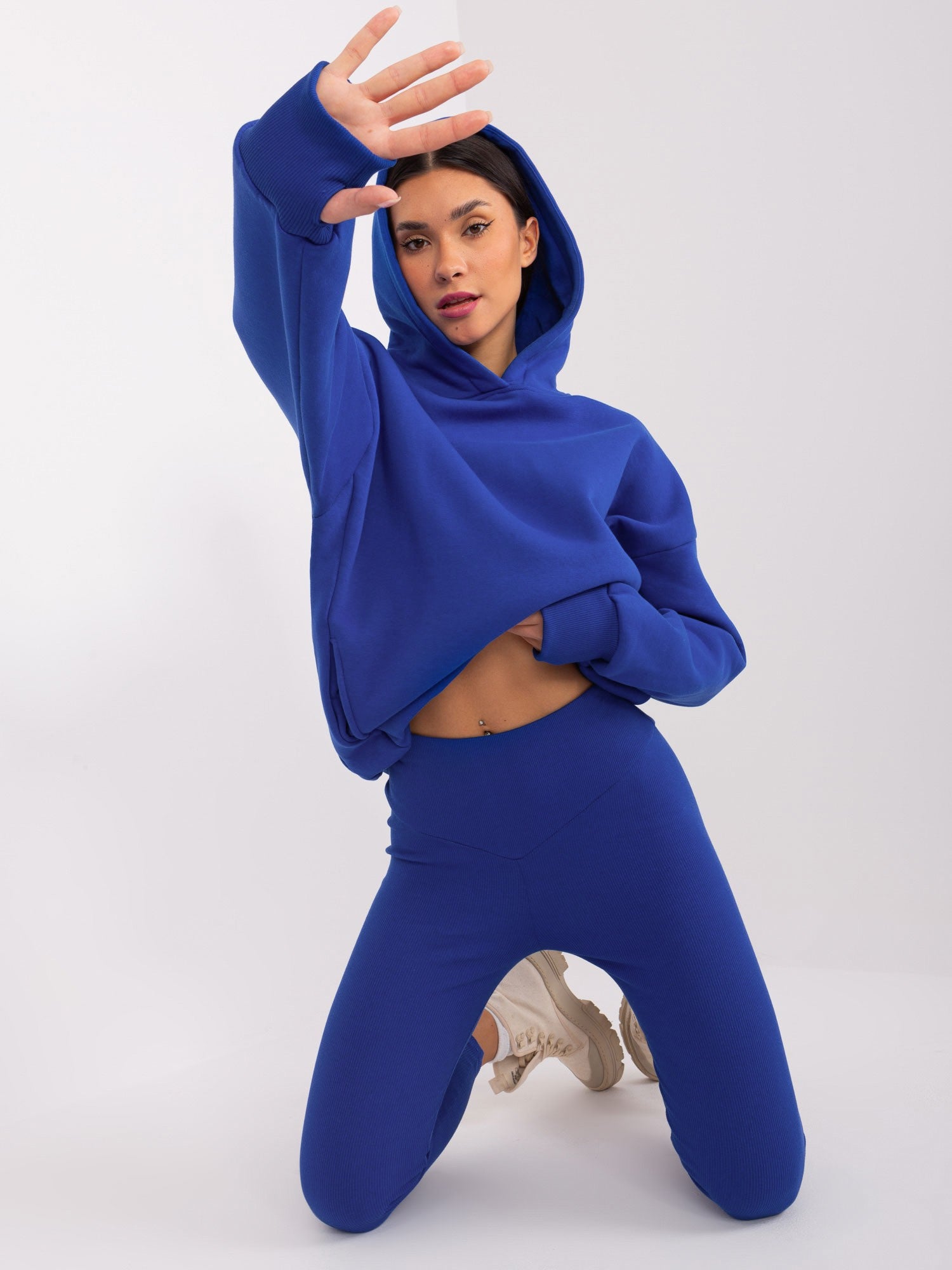 Kobaltowy dwuczęściowy komplet casualowy z legginsami .