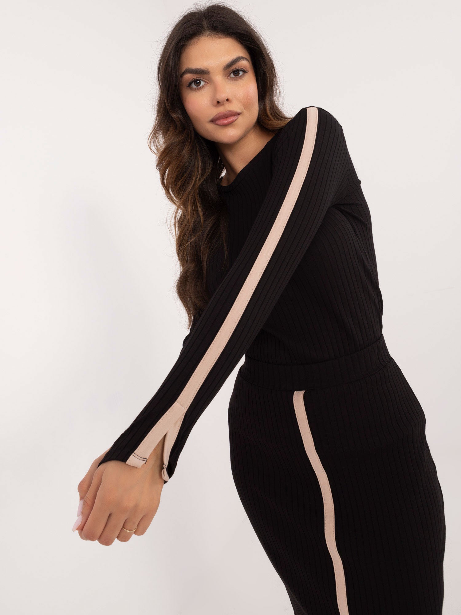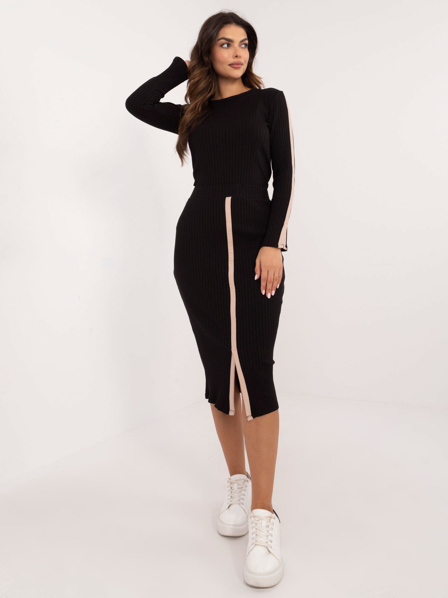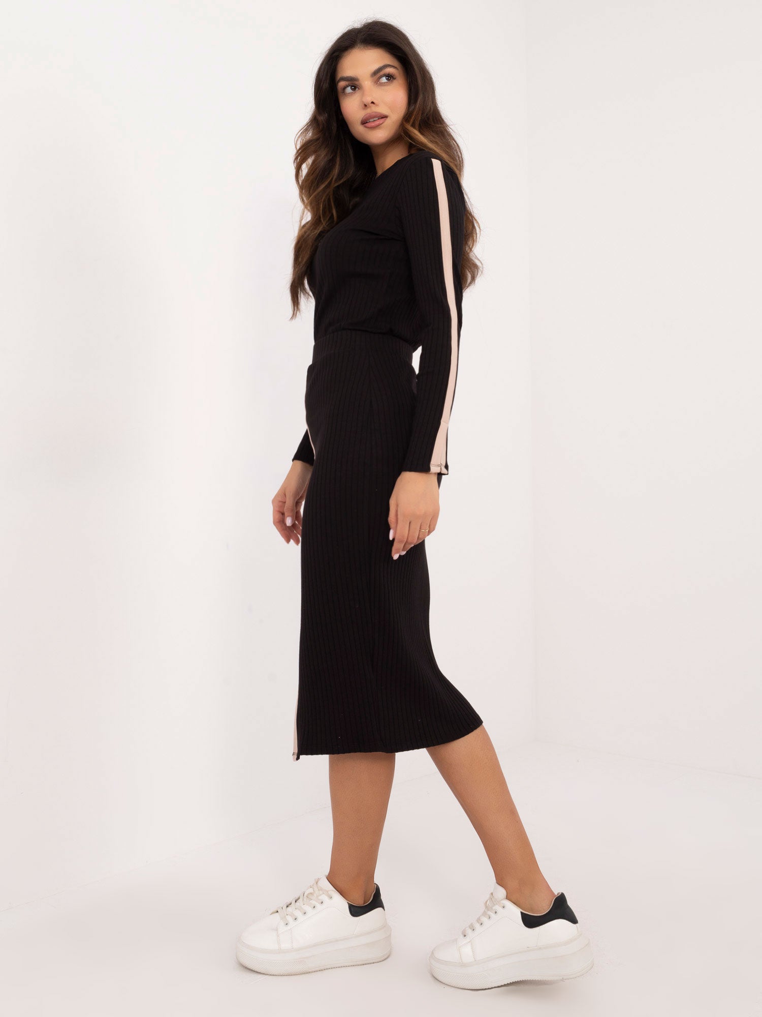 Wymiary kompletu w rozmiarze one size mierzone na płasko: szerokość bluzki pod pachami - 41 cm, długość bluzki - 60 cm, długość rękawa - 56 cm, szerokość spódnicy w pasie - 33 cm, długość spódnicy - 77 cm.