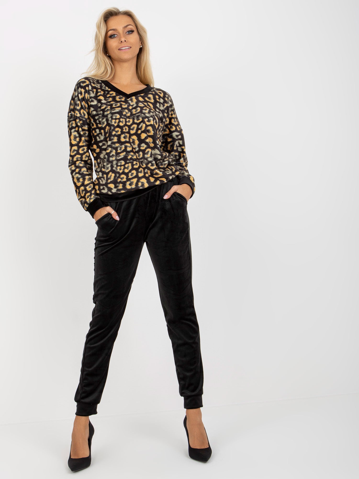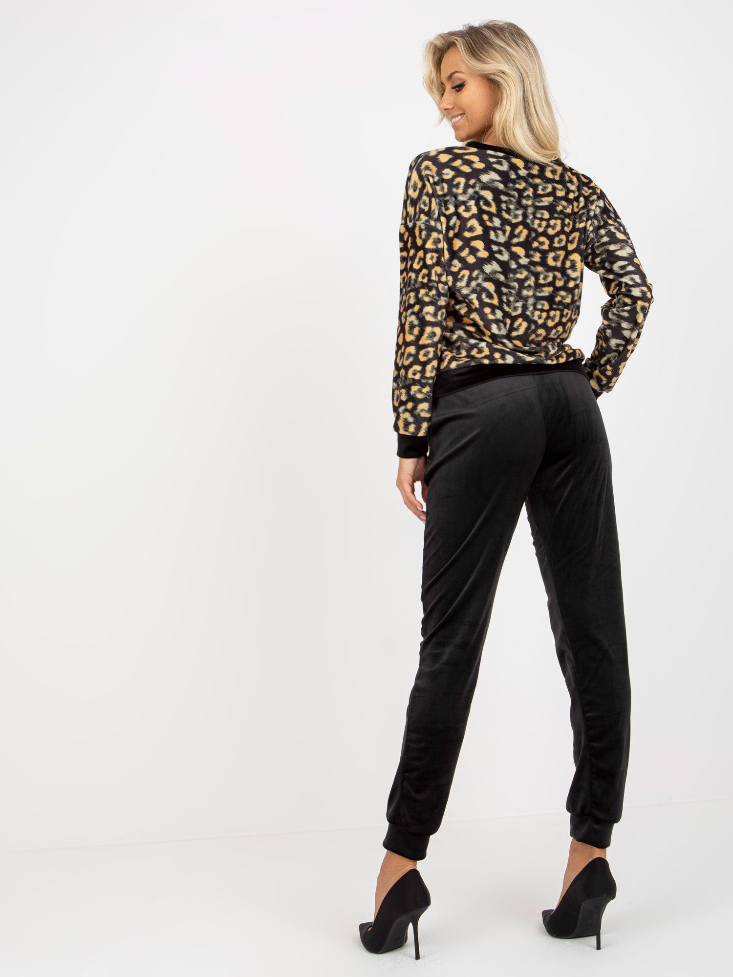 Czarno-żółty komplet welurowy z bluzą w panterkę RUE PARIS.