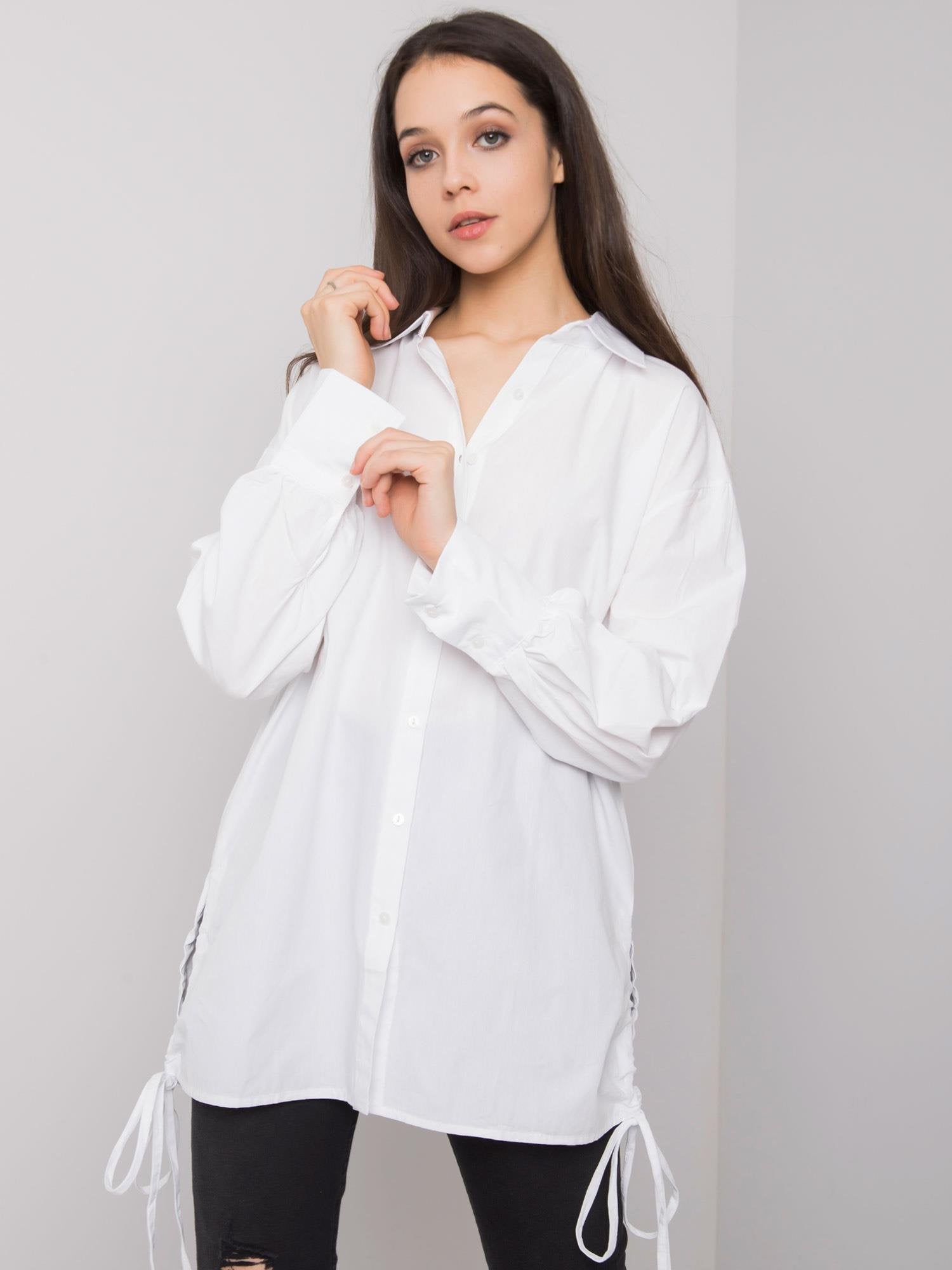 Wymiary koszuli w rozmiarze one size mierzone na płasko: szerokość pod pachami - 56 cm, długość całkowita - 70 cm, długość rękawa - 59 cm