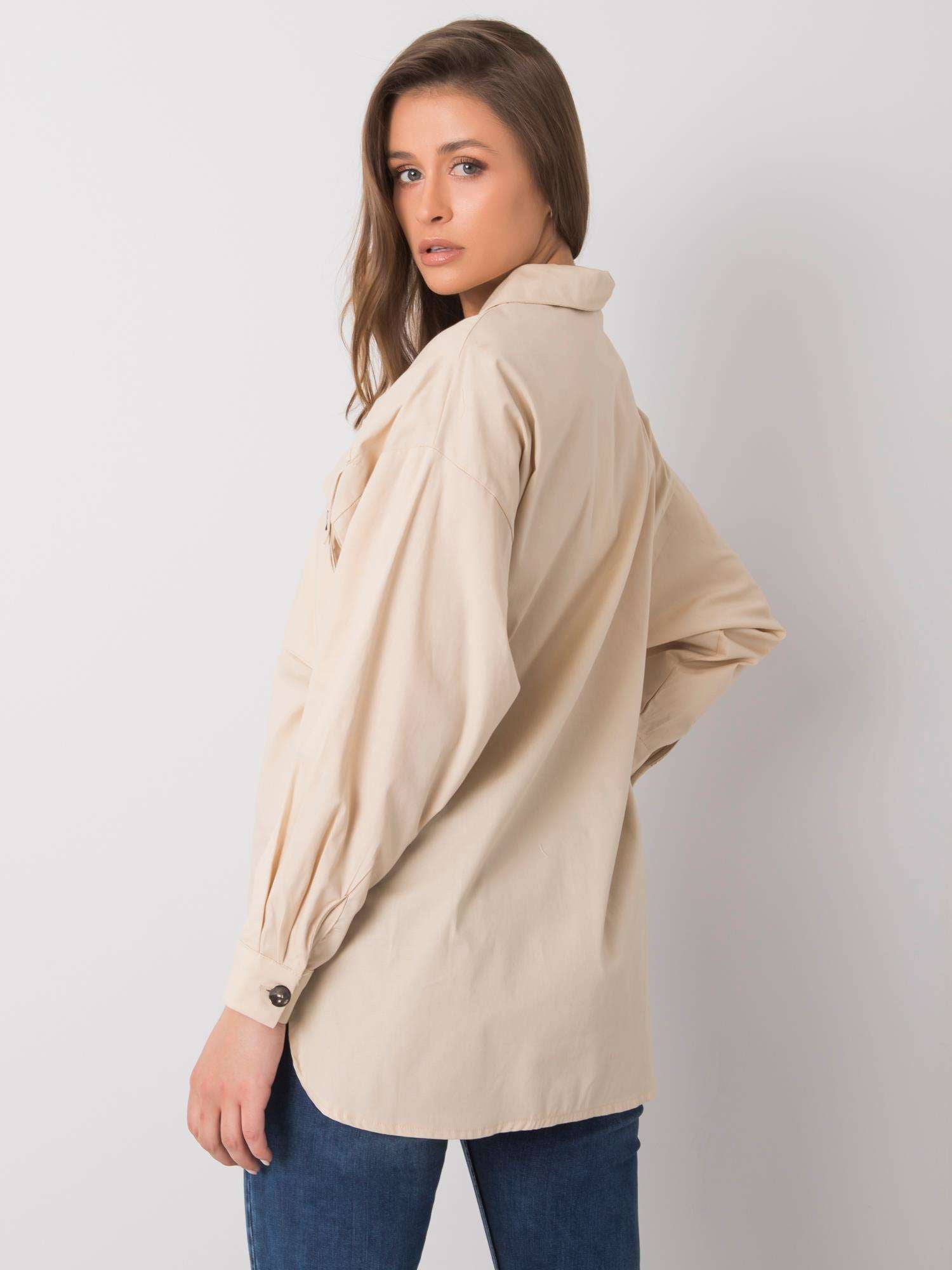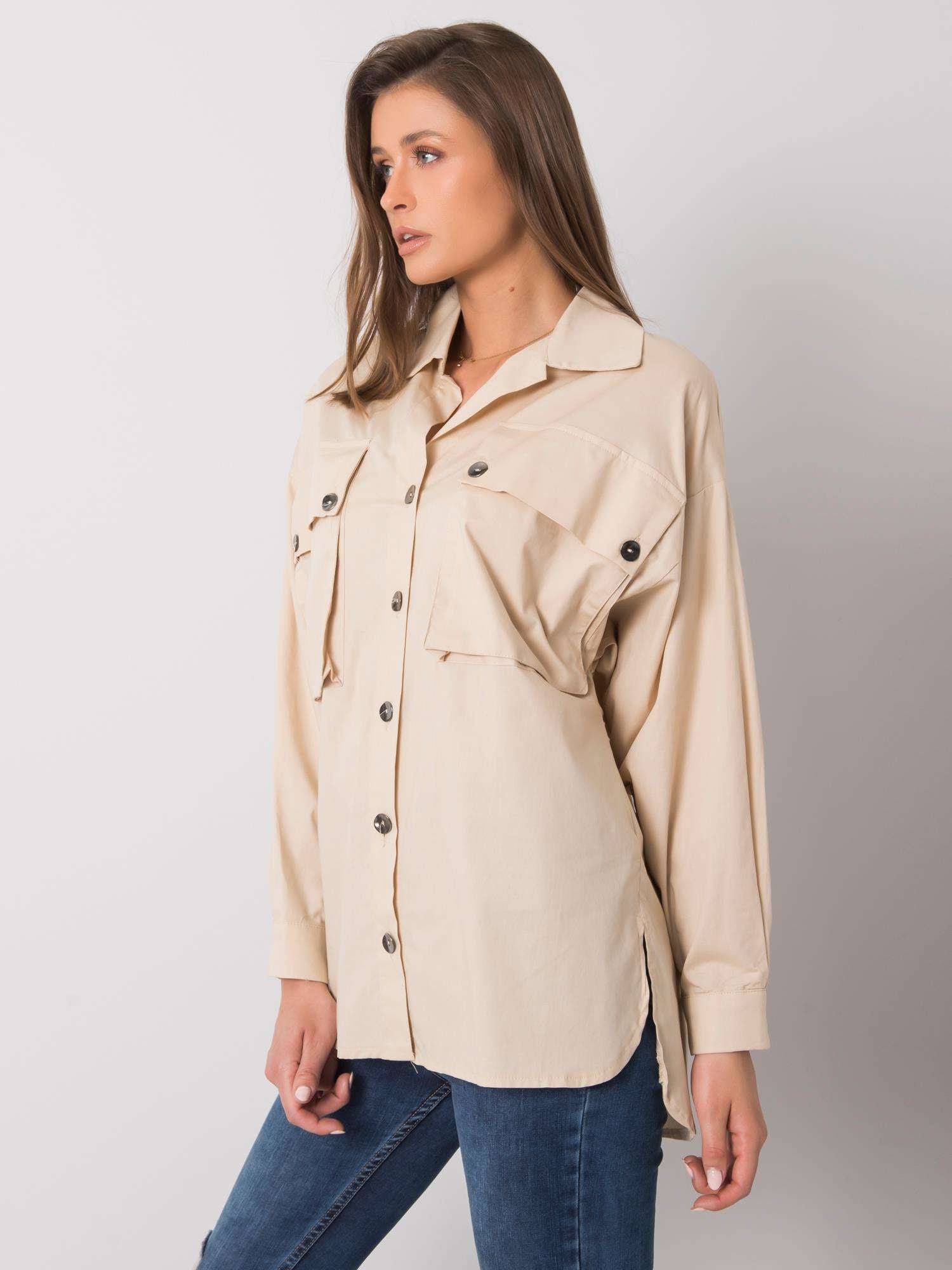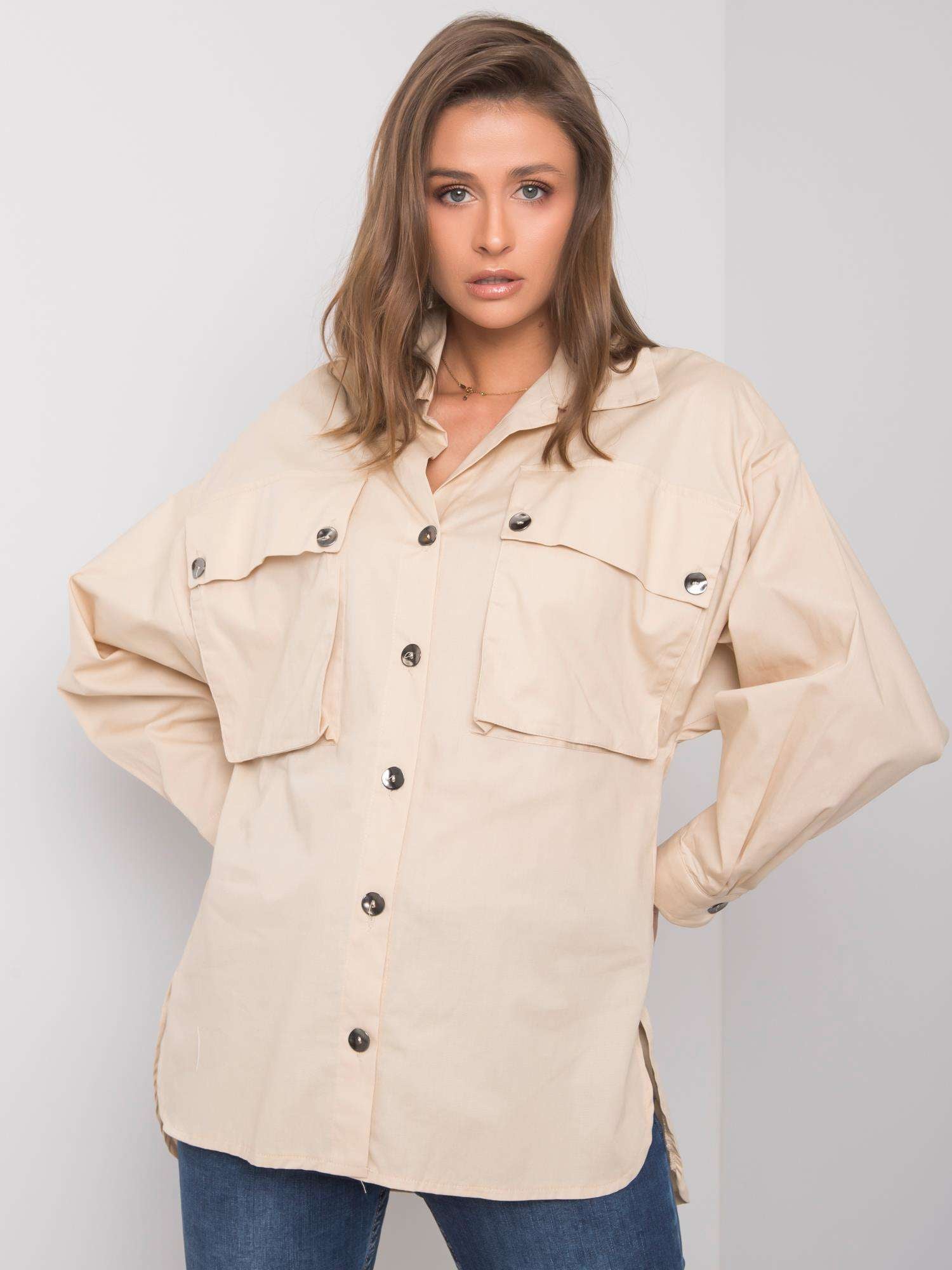 RUE PARIS Beżowa damska koszula z kieszeniami.