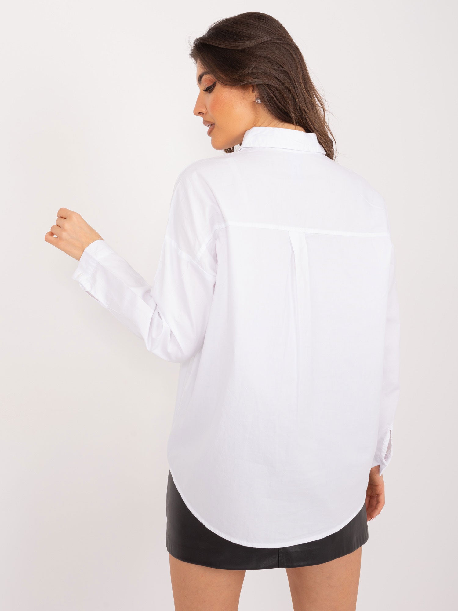 Wymiary koszuli w rozmiarze S mierzone na płasko: szerokość pod pachami - 55 cm, długość rękawa - 59 cm, długość całkowita (przód) - 66 cm, długość całkowita (tył) - 74 cm.