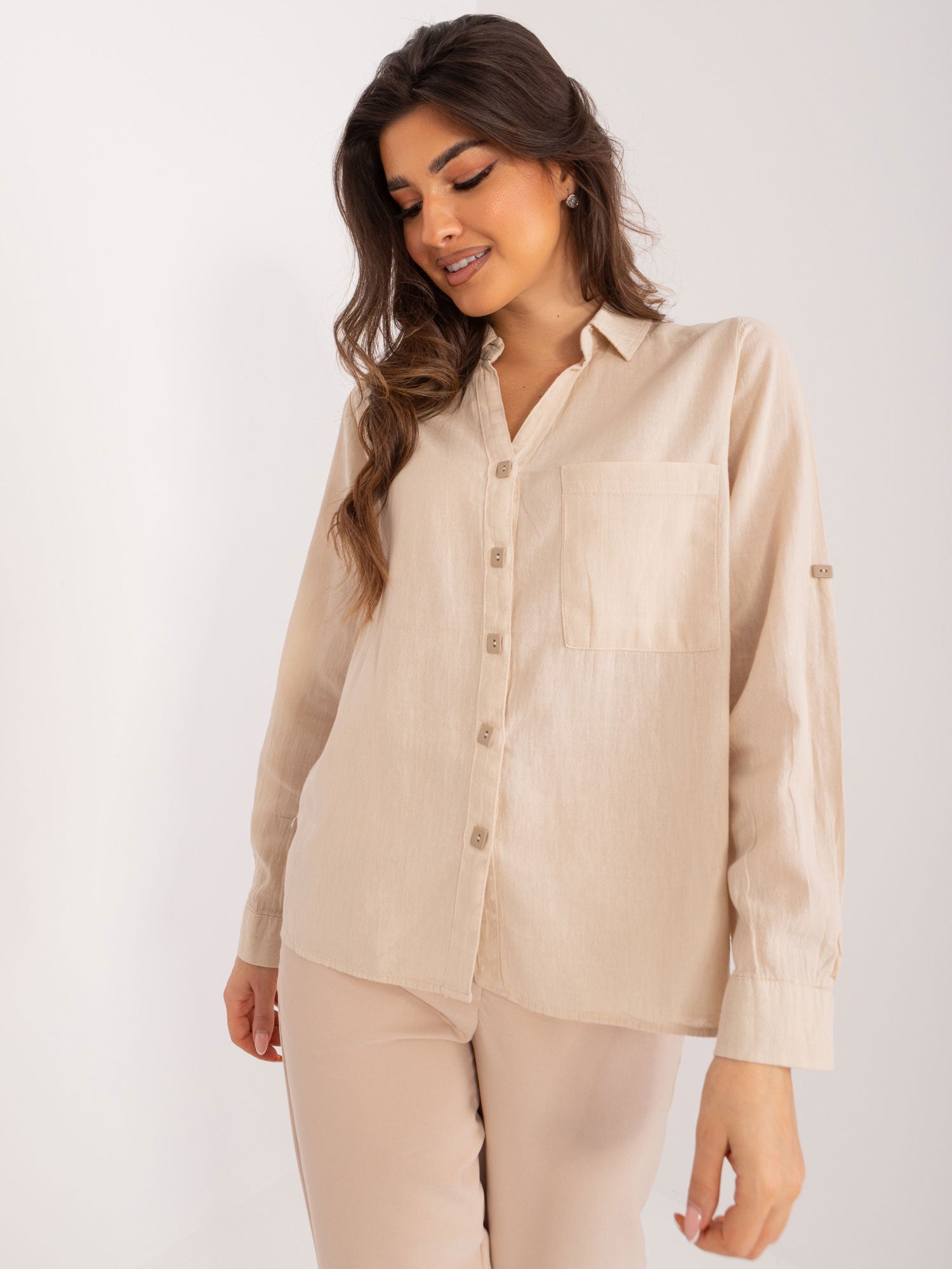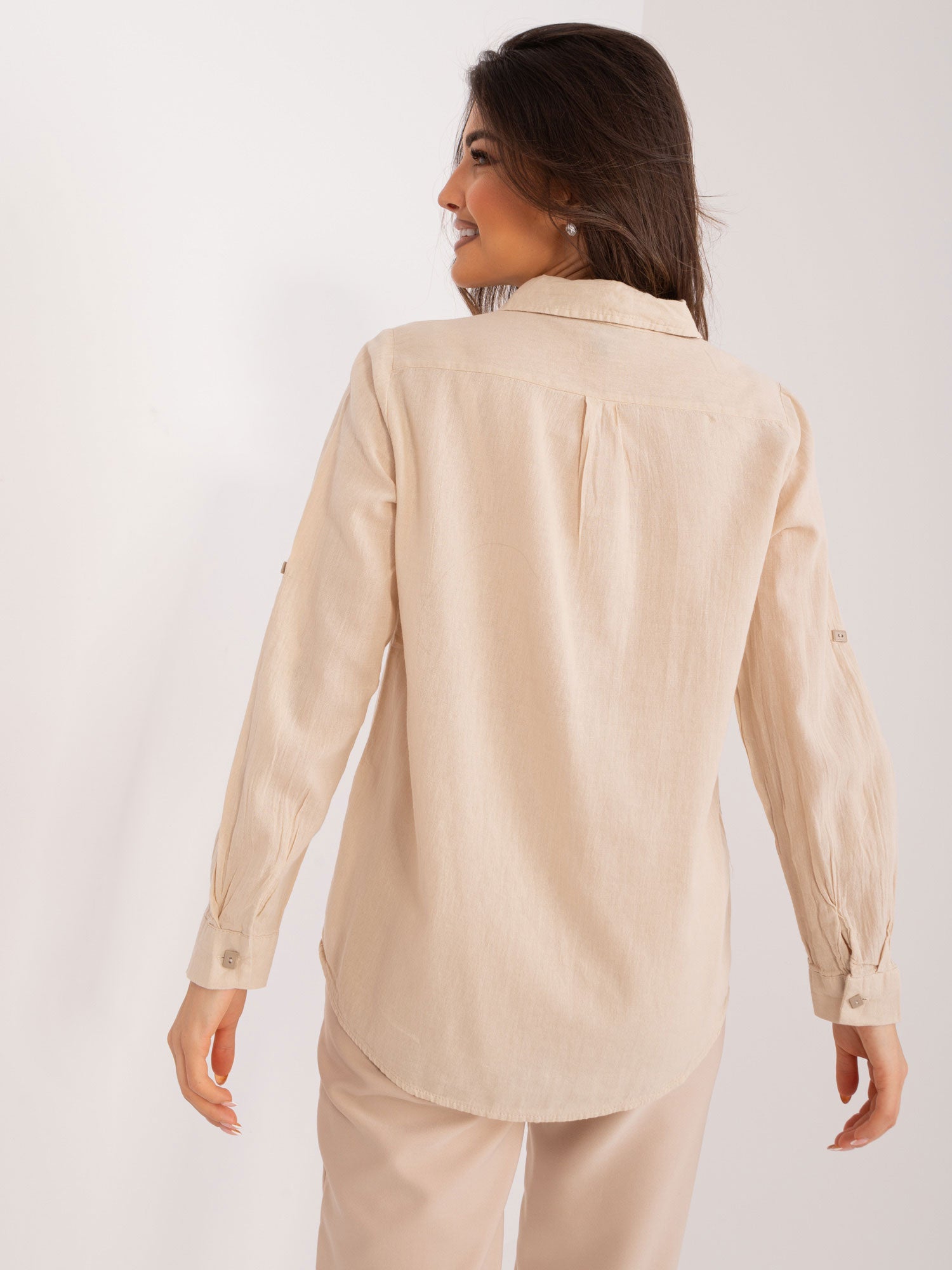 Wymiary koszuli w rozmiarze S mierzone na płasko: szerokość pod pachami - 53 cm, długość rękawa - 58 cm, długość całkowita (przód) - 61 cm, długość całkowita (tył) - 69 cm.