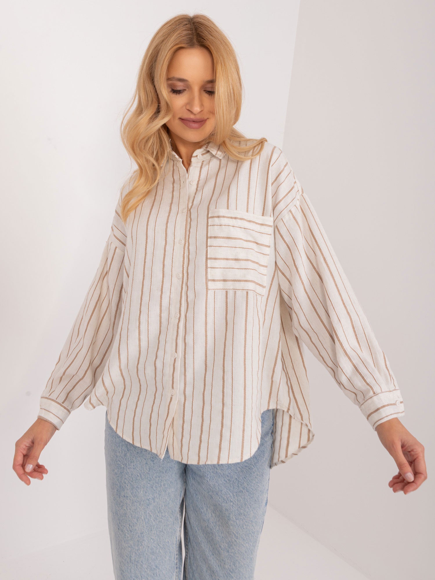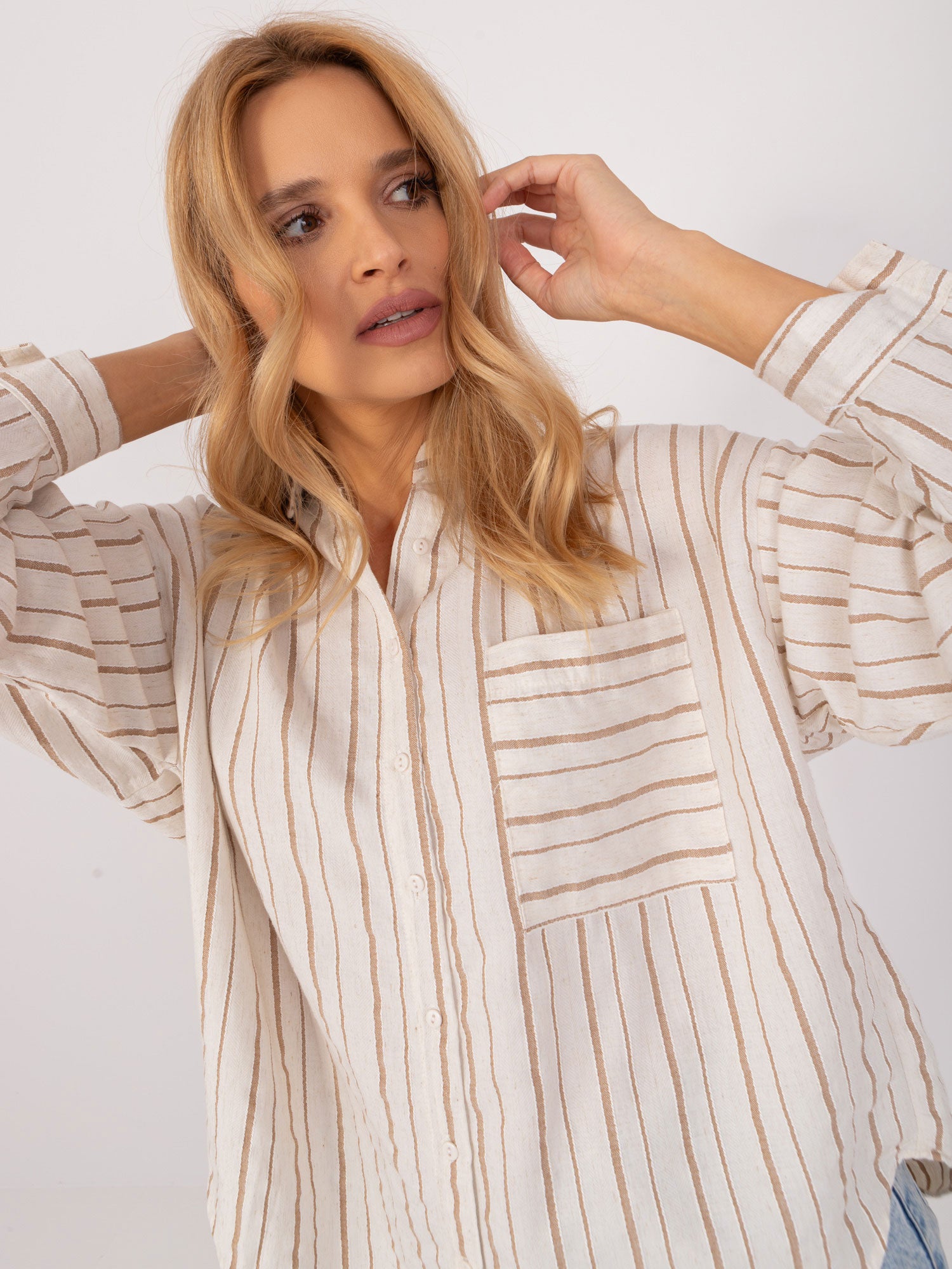 Wymiary koszuli w rozmiarze S mierzone na płasko: szerokość pod pachami - 63 cm, długość rękawa - 58 cm, długość całkowita (przód) - 66 cm, długość całkowita (tył) 76 cm.