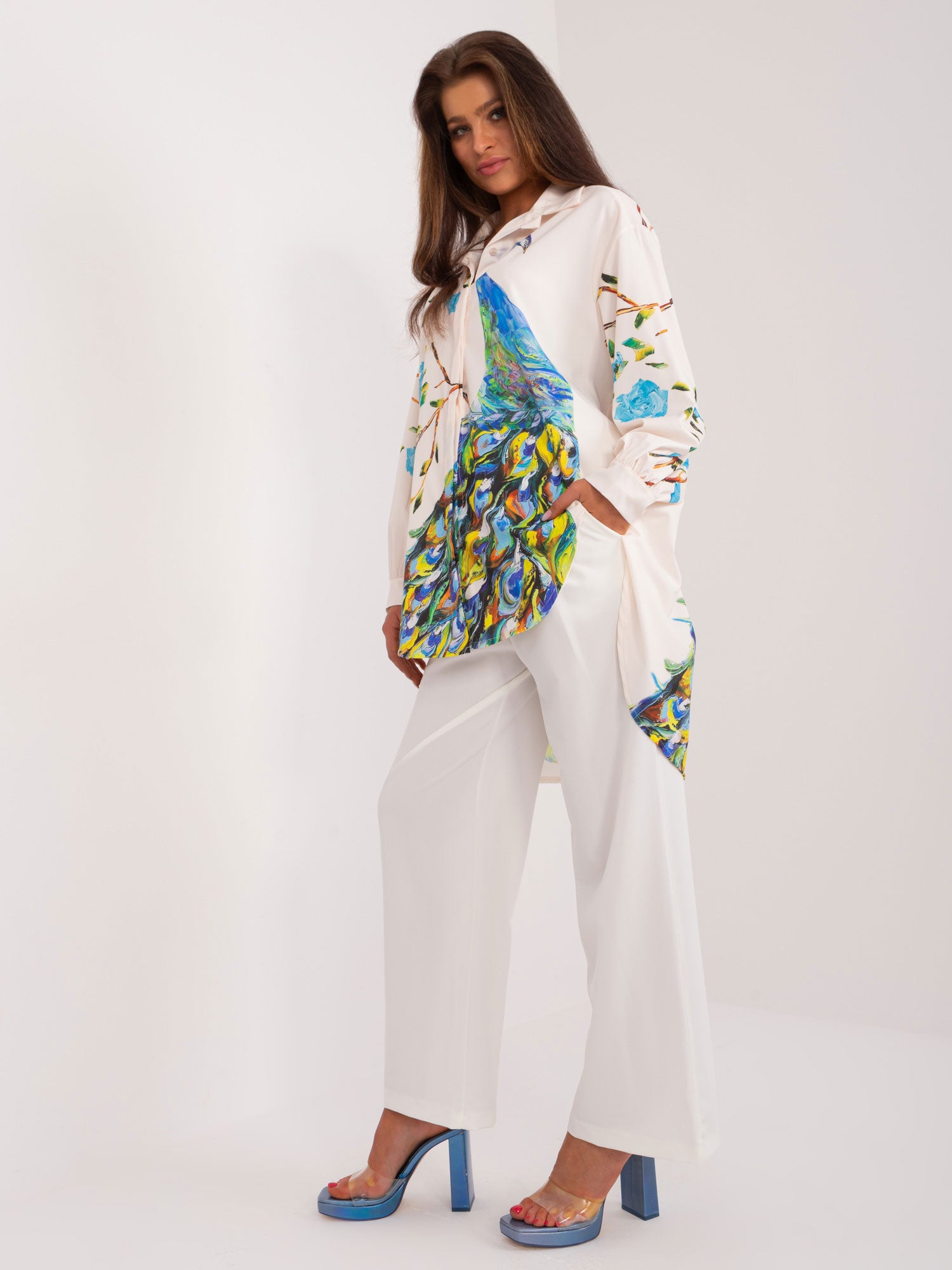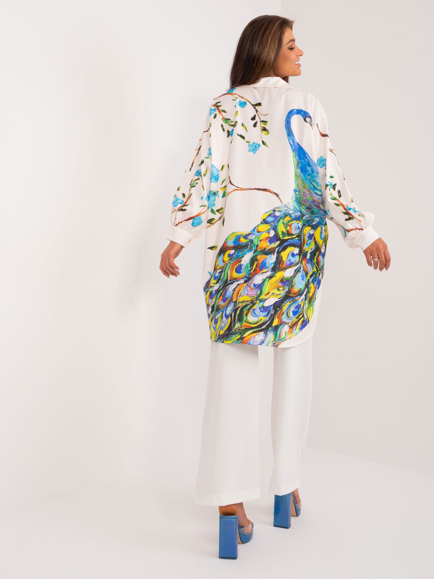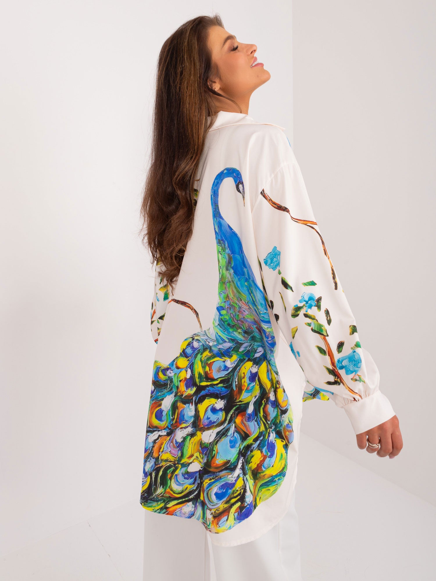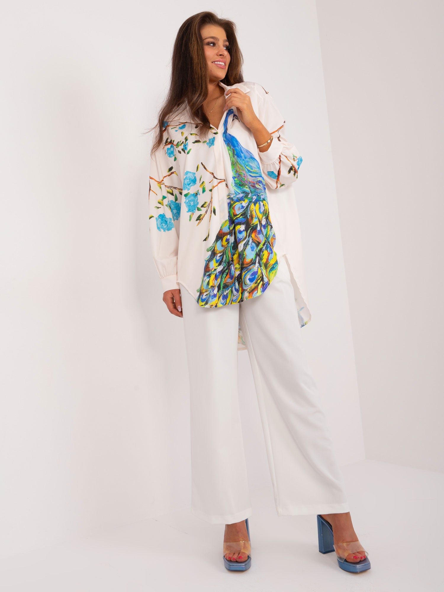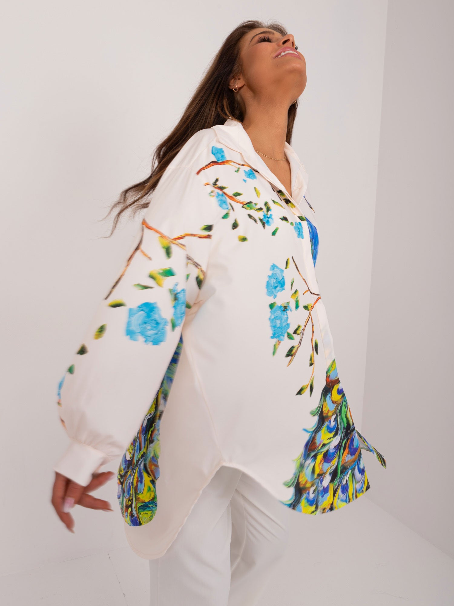 Wymiary koszuli w rozmiarze one size mierzone na płasko: szerokość pod pachami - 72 cm, długość rękawa - 64 cm, długość całkowita (przód) - 78 cm, długość całkowita (tył) - 96 cm .