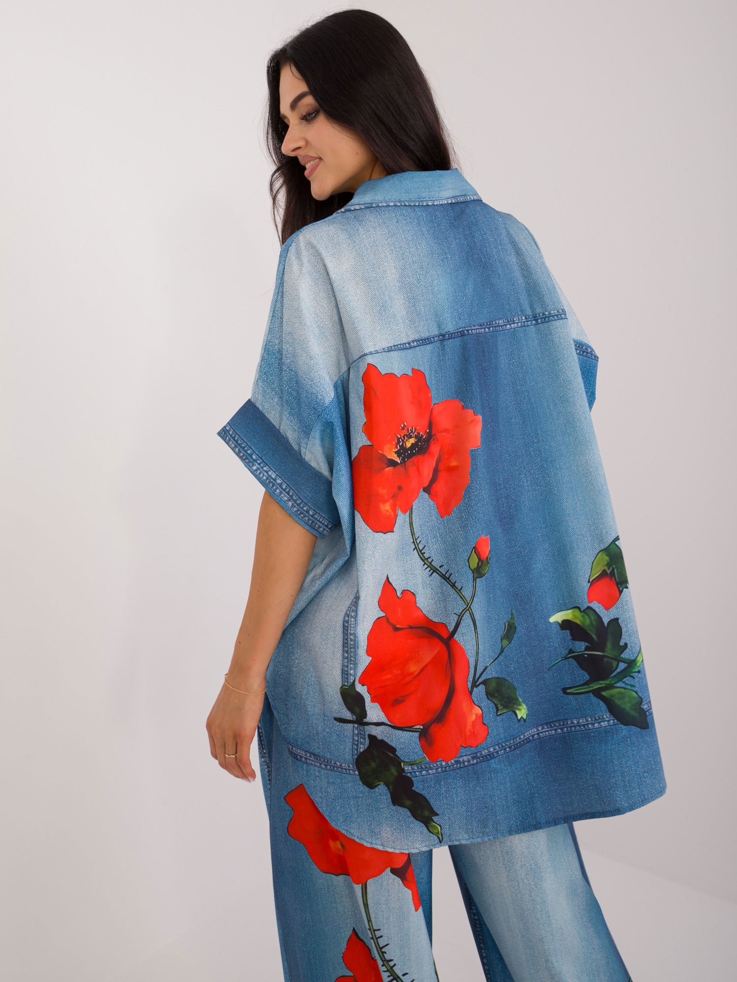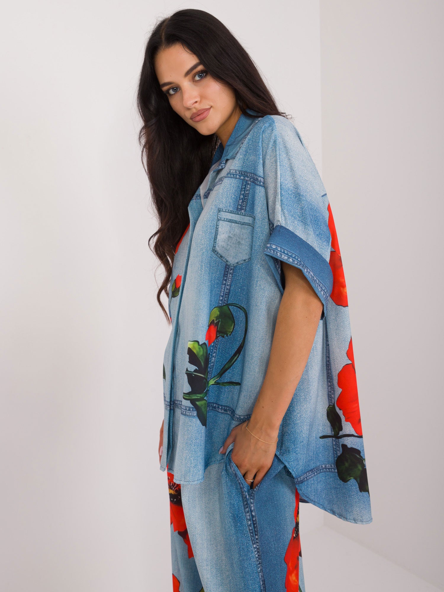 Wymiary koszuli w rozmiarze one size mierzone na płasko: szerokość pod pachami - 82 cm, długość całkowita (przód) - 65 cm, długość całkowita (tył) - 77 cm .