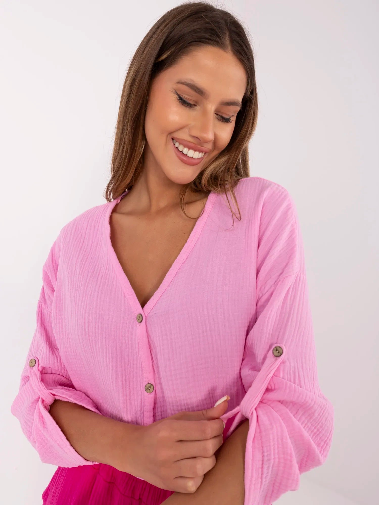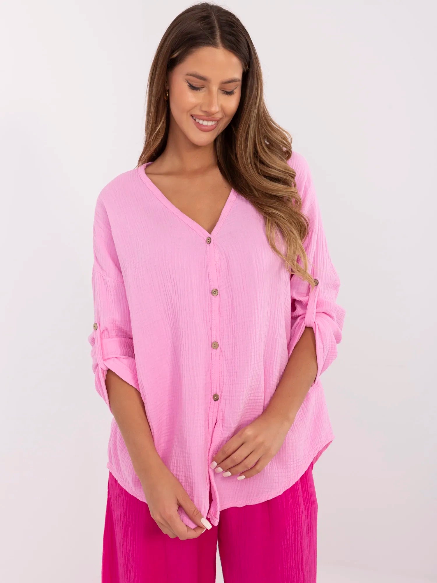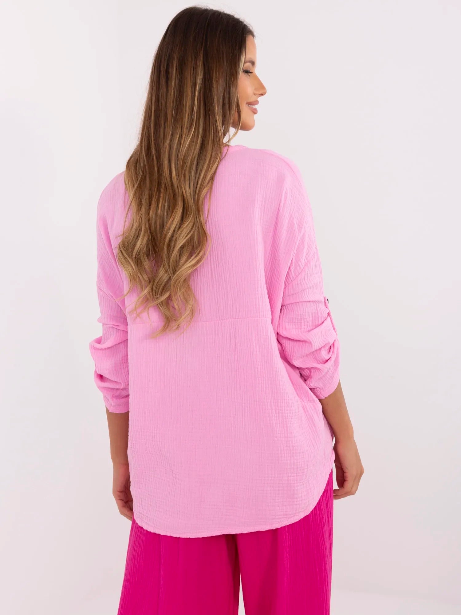Wymiary koszuli w rozmiarze one size mierzone na płasko: szerokość pod pachami - 70 cm długość rękawa - 40 cm (od szwu), szerokość w biodrach - 70 cm, długość całkowita - 76 cm.