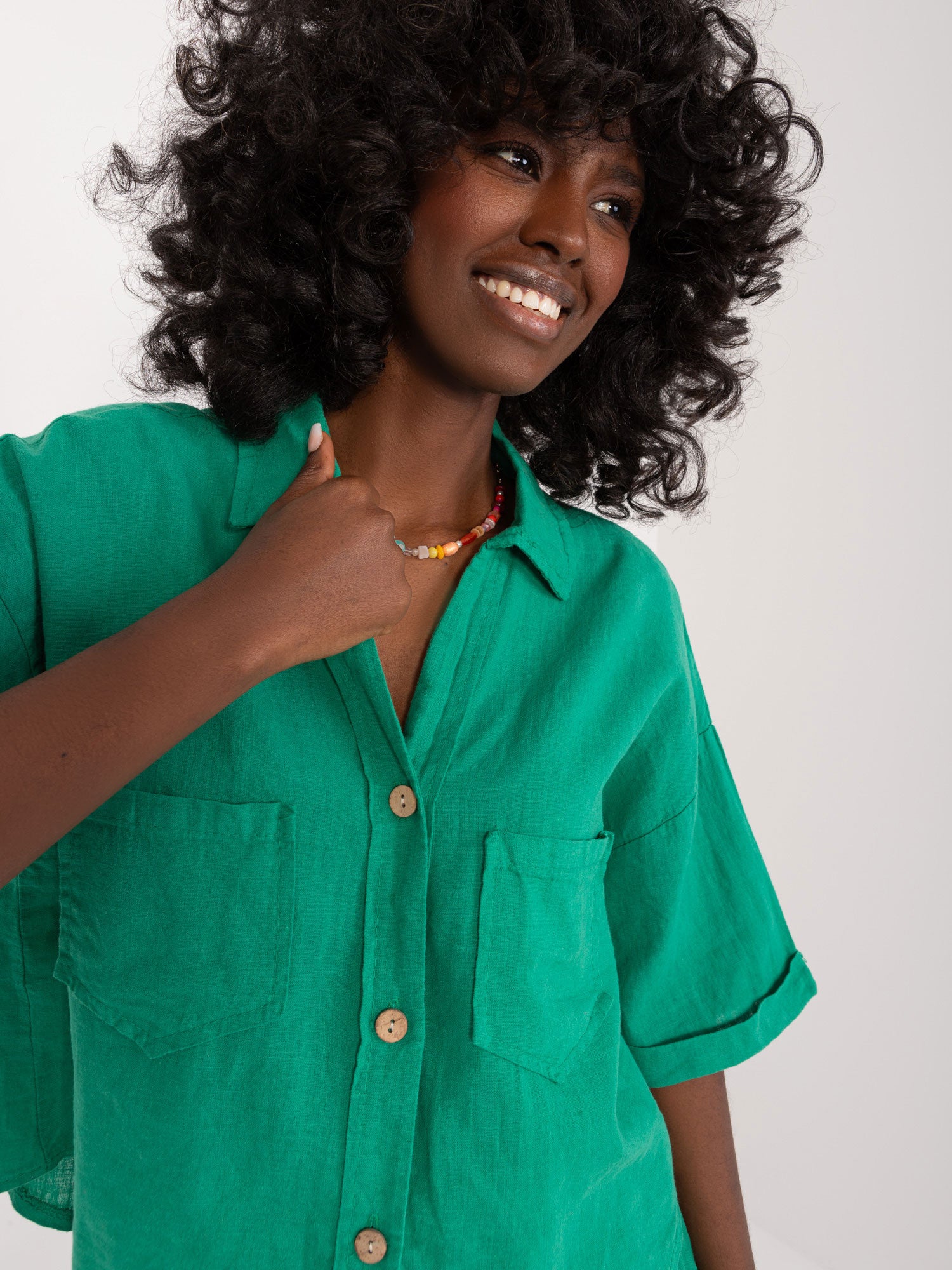 Wymiary koszuli w rozmiarze one size mierzone na płasko: szerokość pod pachami - 51 cm, długość rękawa - 29 cm, długość całkowita (tył) - 58 cm.
