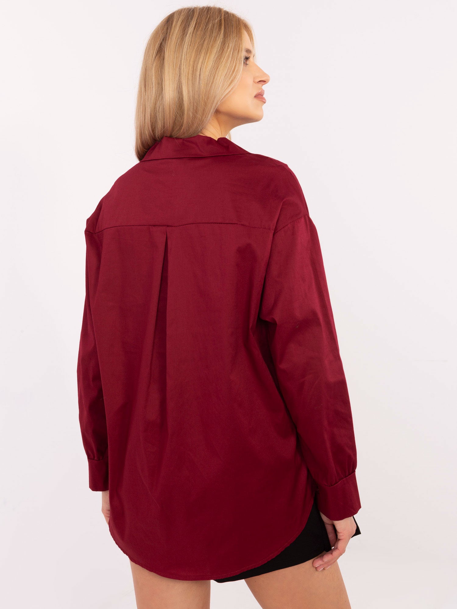 Wymiary koszuli w rozmiarze one size mierzone na płasko: szerokość pod pachami - 60 cm, szerokość w biodrach - 63 cm, długość rękawa - 54 cm (od szwu), długość całkowita - 70 cm.