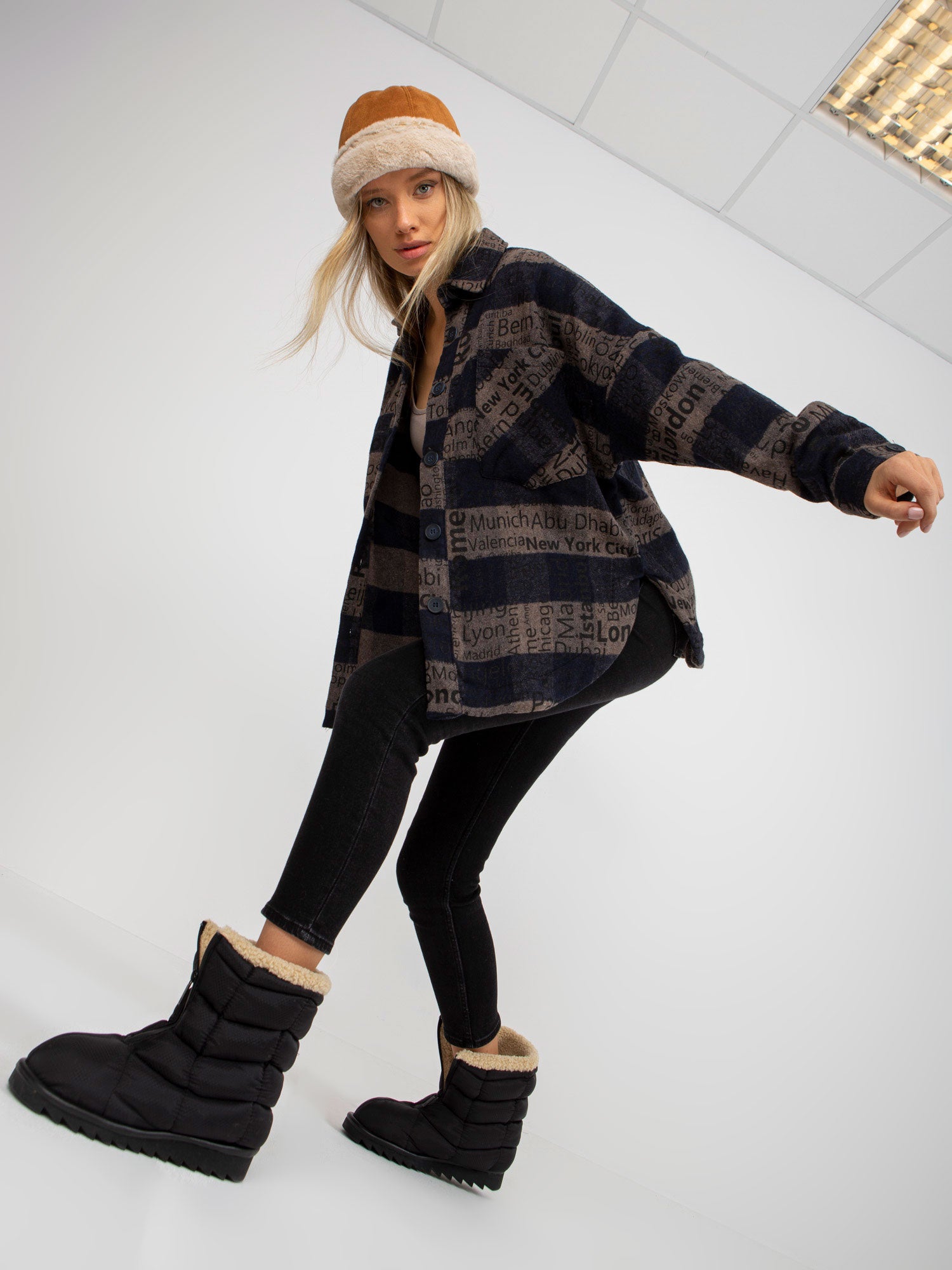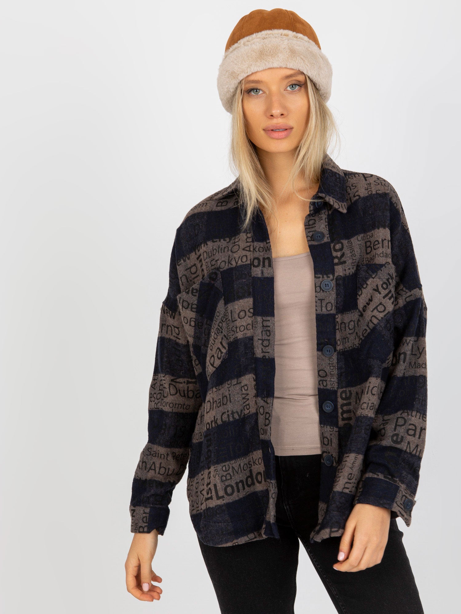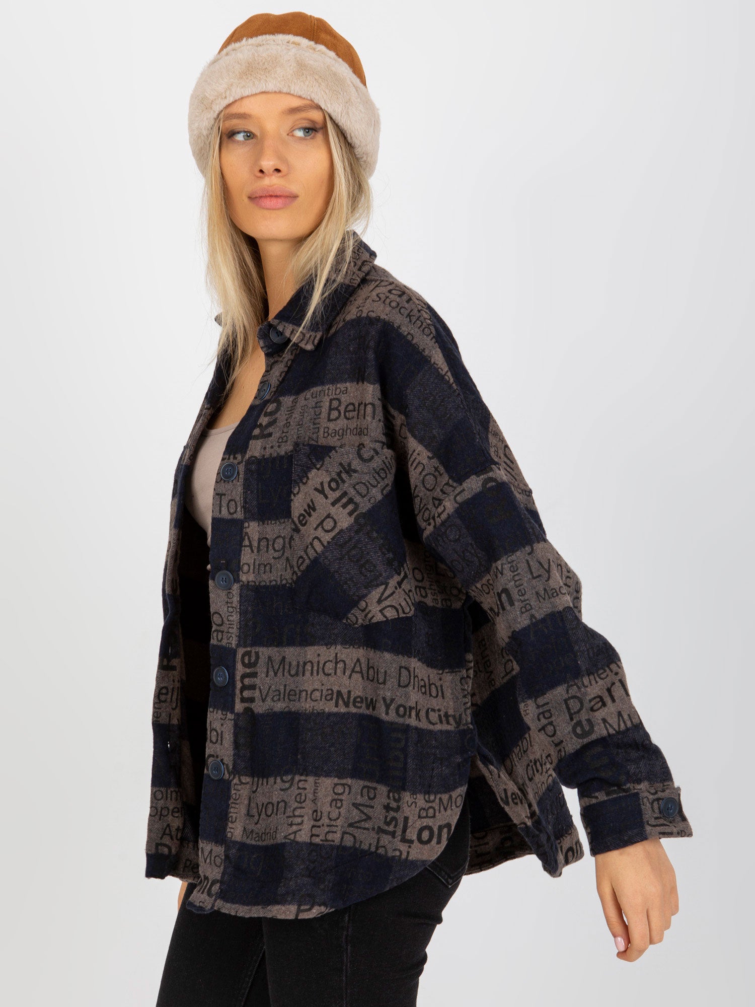 Granatowo-ciemnoszara wierzchnia koszula w kratę z kieszeniami .