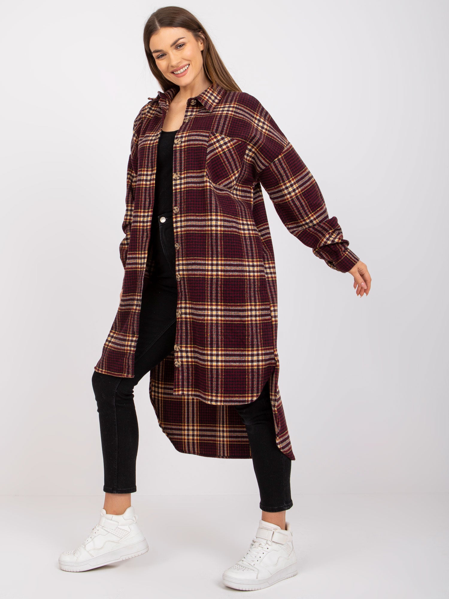 Wymiary koszuli w rozmiarze one size mierzone na płasko: szerokość pod pachami - 61 cm, długość całkowita (przód) - 94 cm, długość całkowita (tył) - 112 cm, długość rękawa - 63 cm
