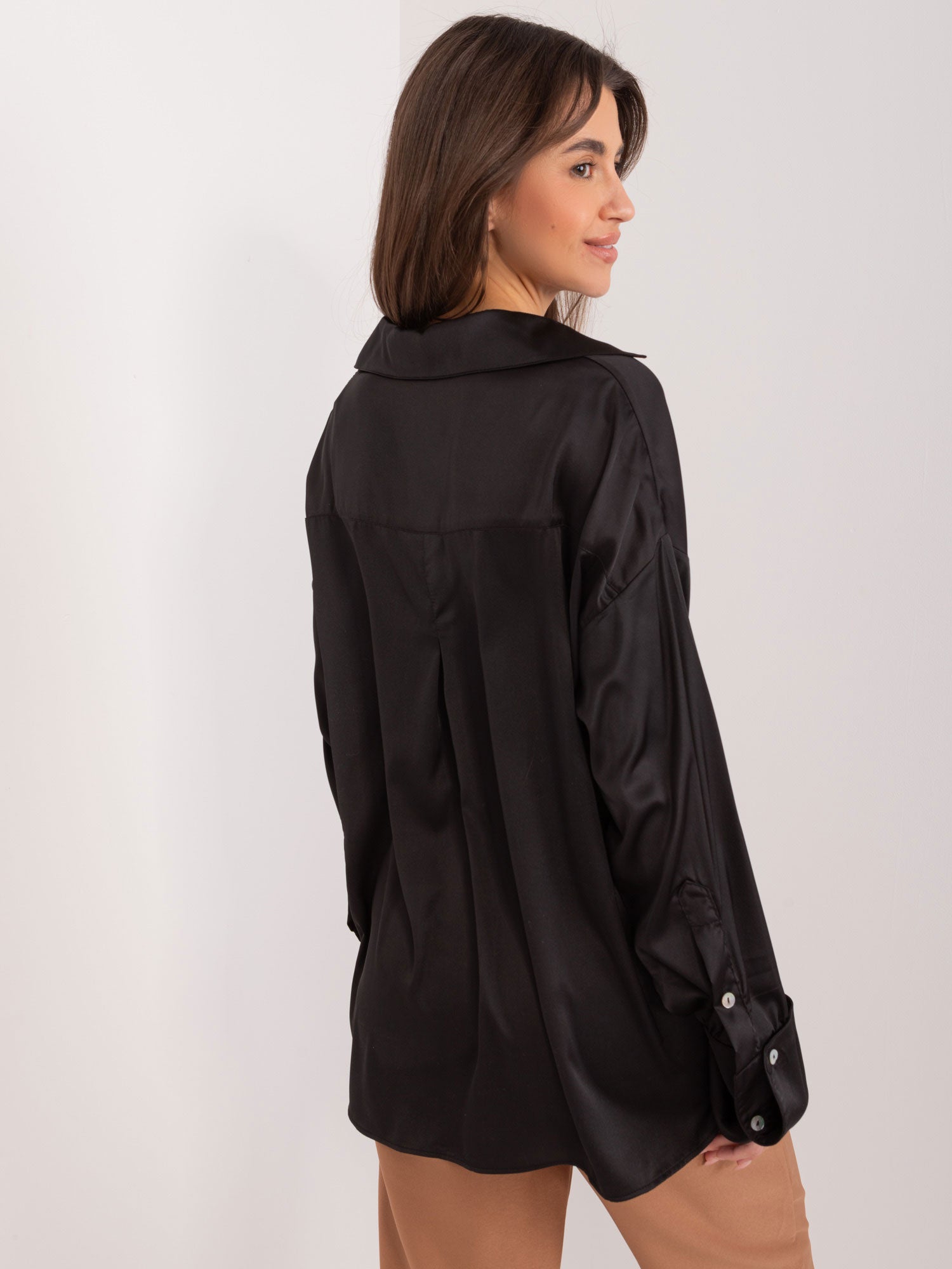 Wymiary koszuli w rozmiarze S/M mierzone na płasko: szerokość pod pachami - 54 cm, długość rękawa - 68 cm, długość całkowita - 65 cm.