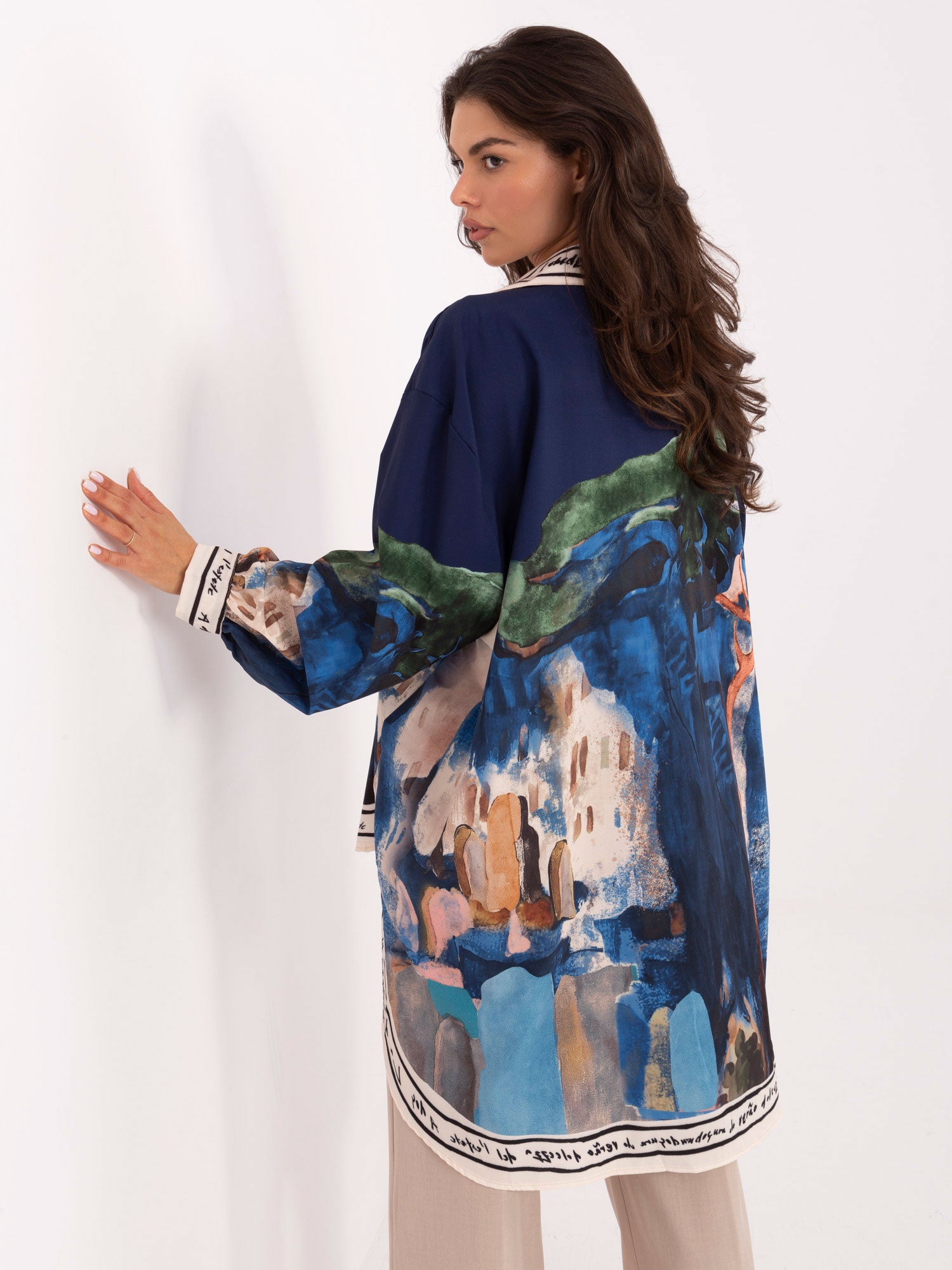 Wymiary koszuli w rozmiarze one size mierzone na płasko: szerokość pod pachami - 78 cm, długość rękawa - 55 cm (od szwu), szerokość w biodrach - 78 cm, długość całkowita - 78 cm (przód), długość całkowita - 101 cm (tył) .