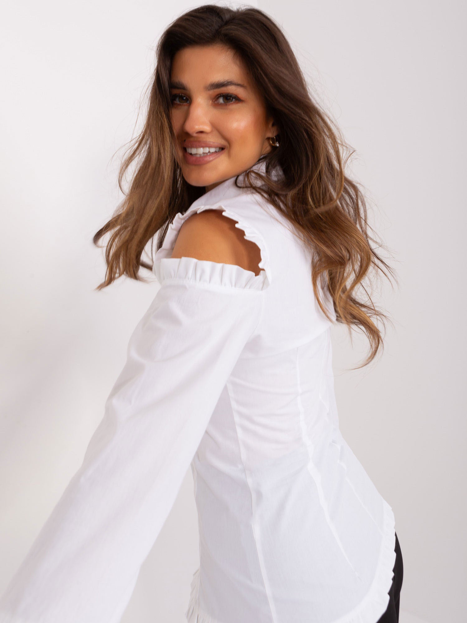Wymiary koszuli w rozmiarze 36 mierzone na płasko: szerokość pod pachami - 46 cm, długość rękawa - 40 cm, długość całkowita - 64 cm.