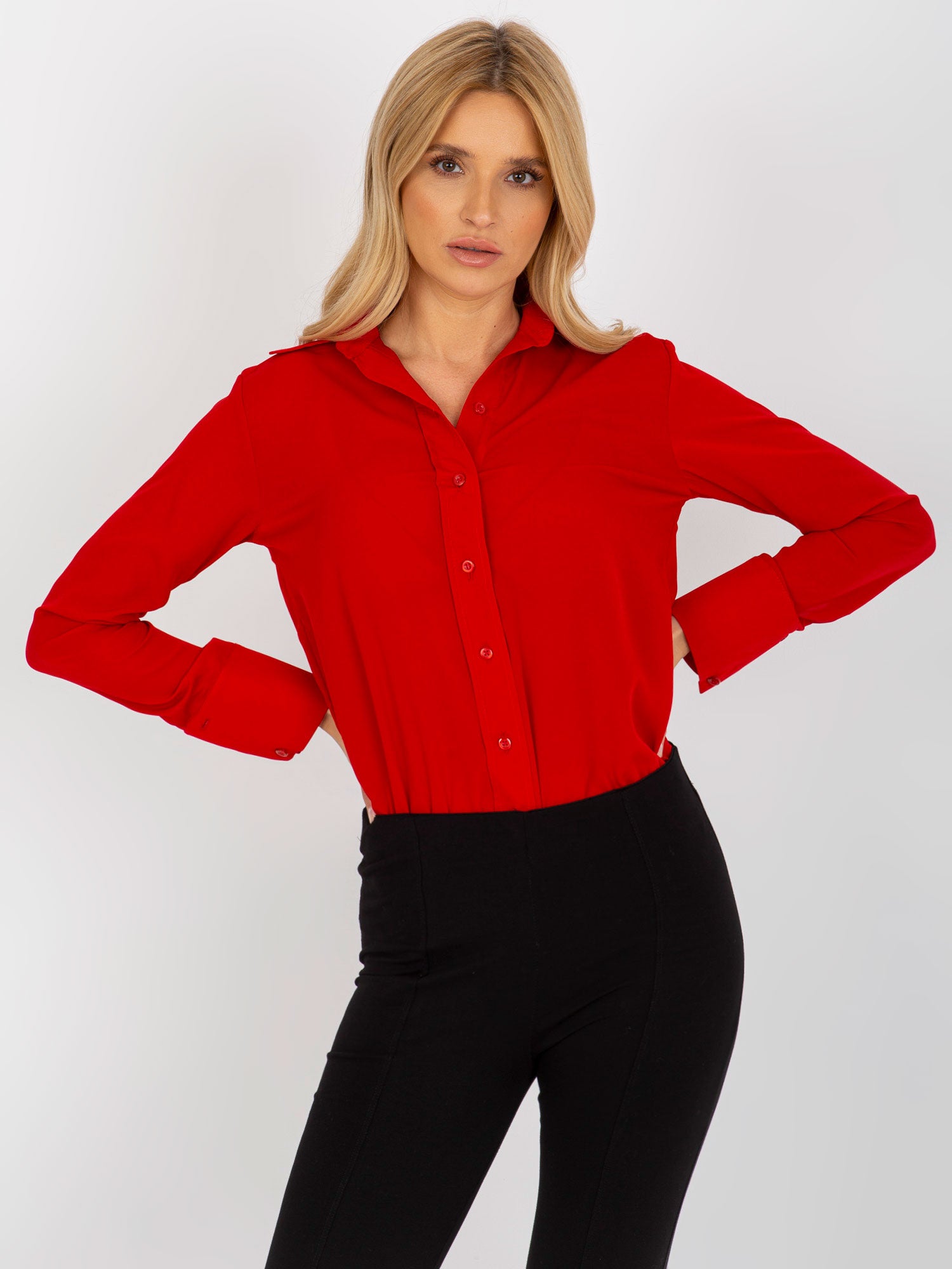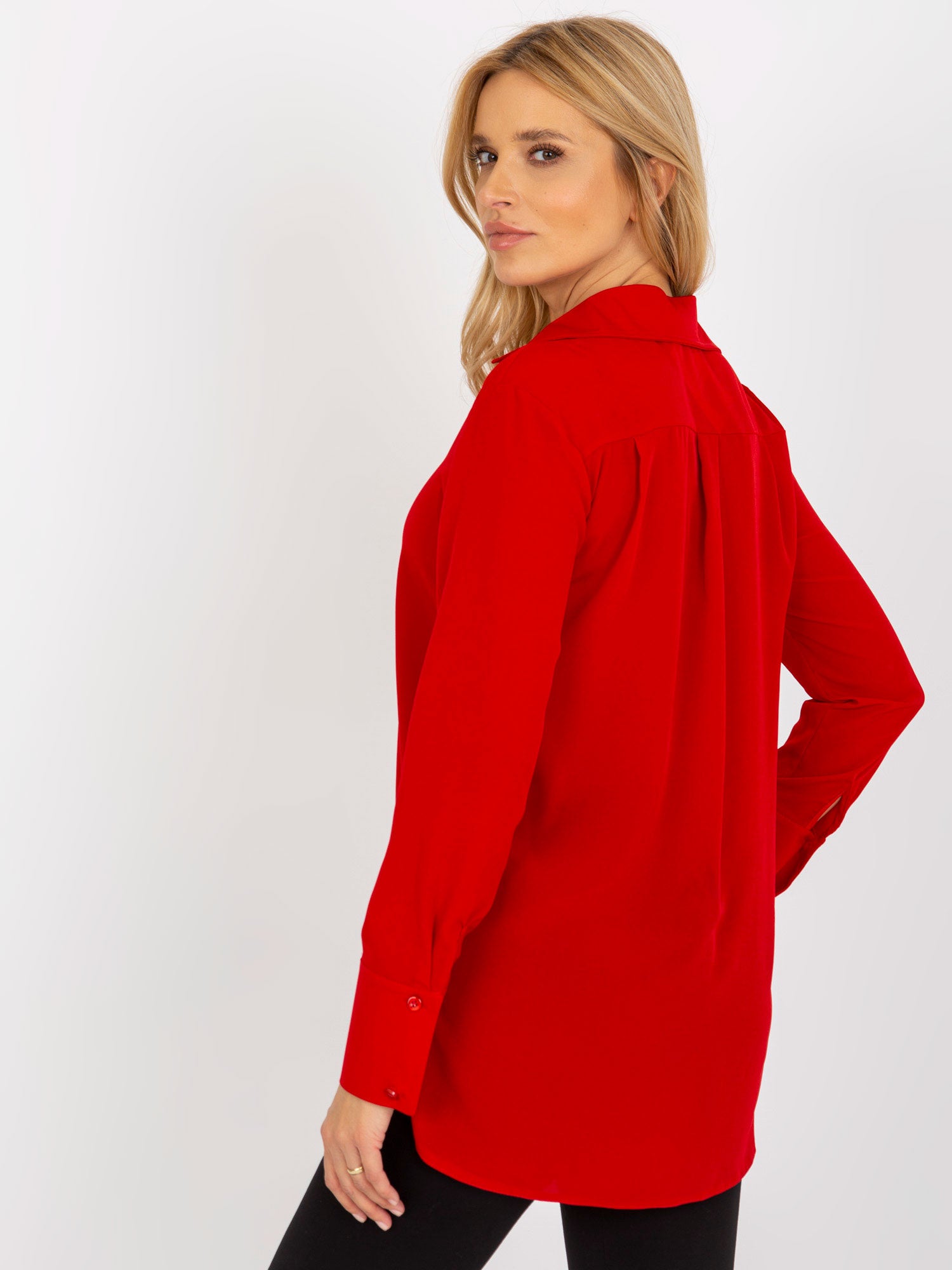 Czerwona elegancka koszula klasyczna z kołnierzykiem .
