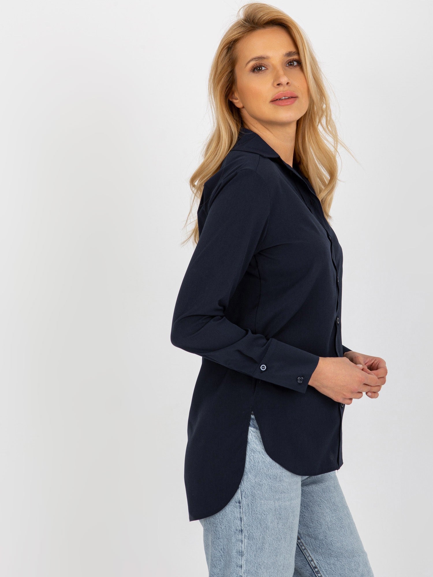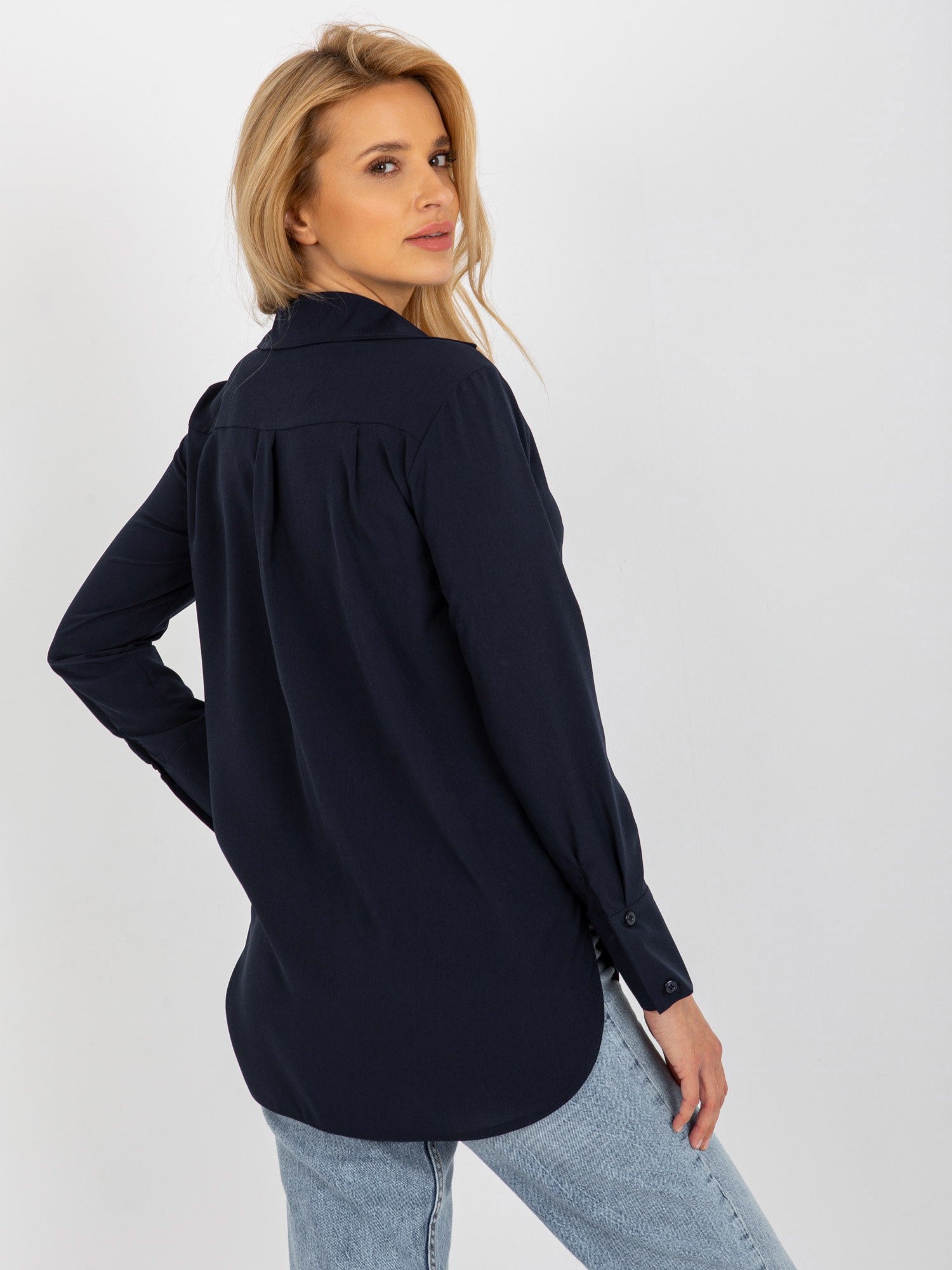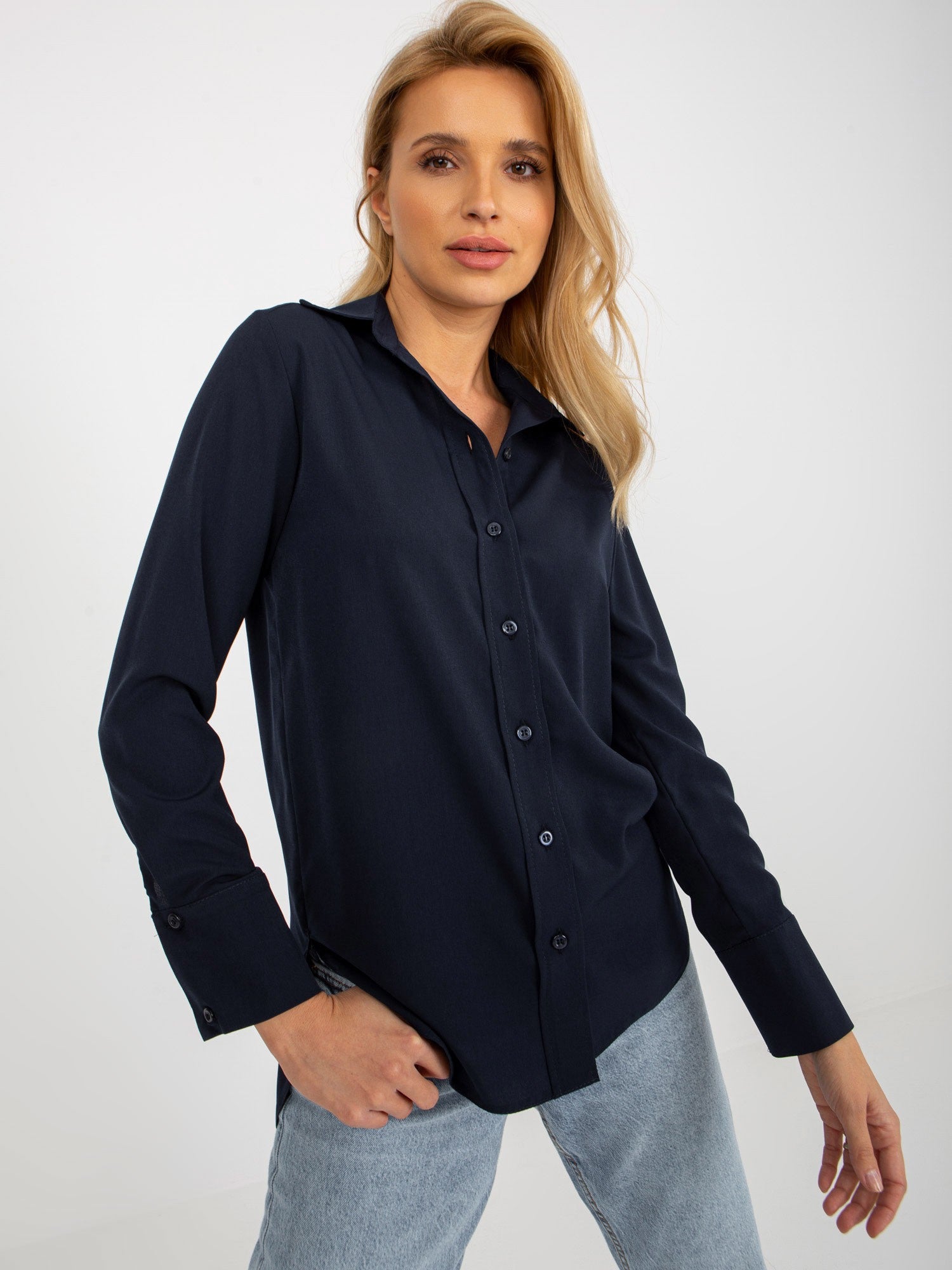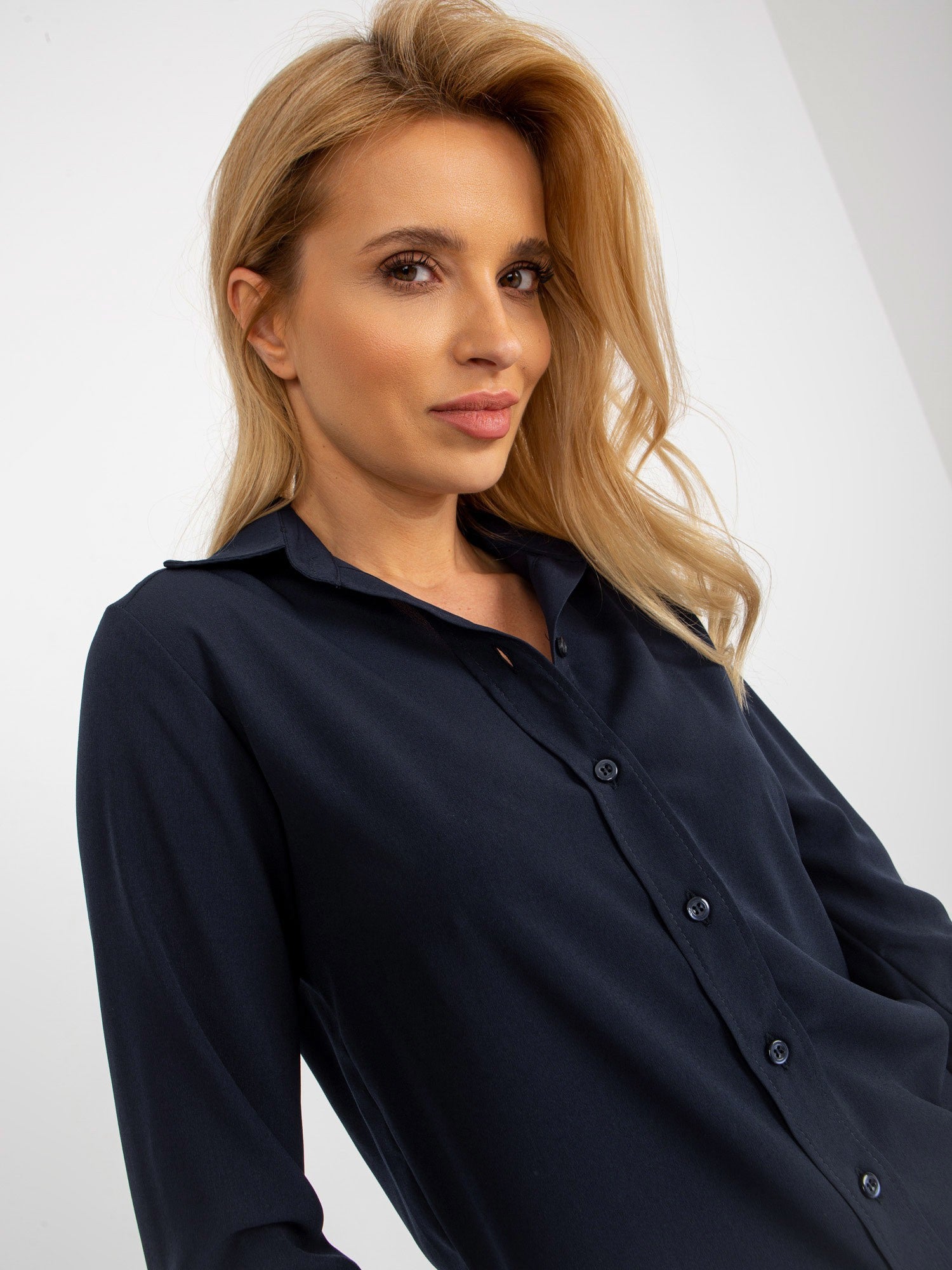 Granatowa elegancka koszula klasyczna z długim rękawem .
