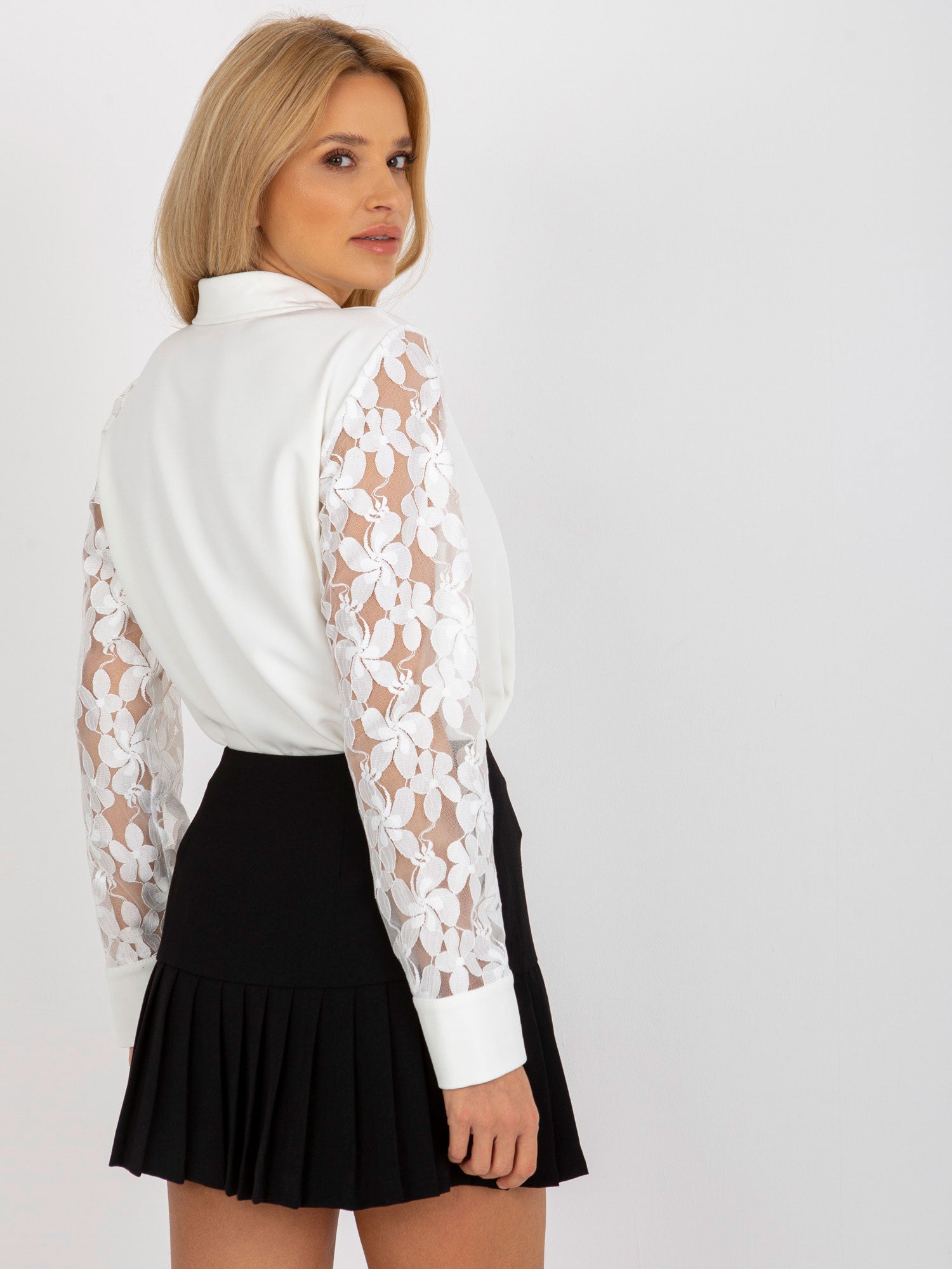 Ecru elegancka koszula klasyczna z ozdobnymi rękawami .