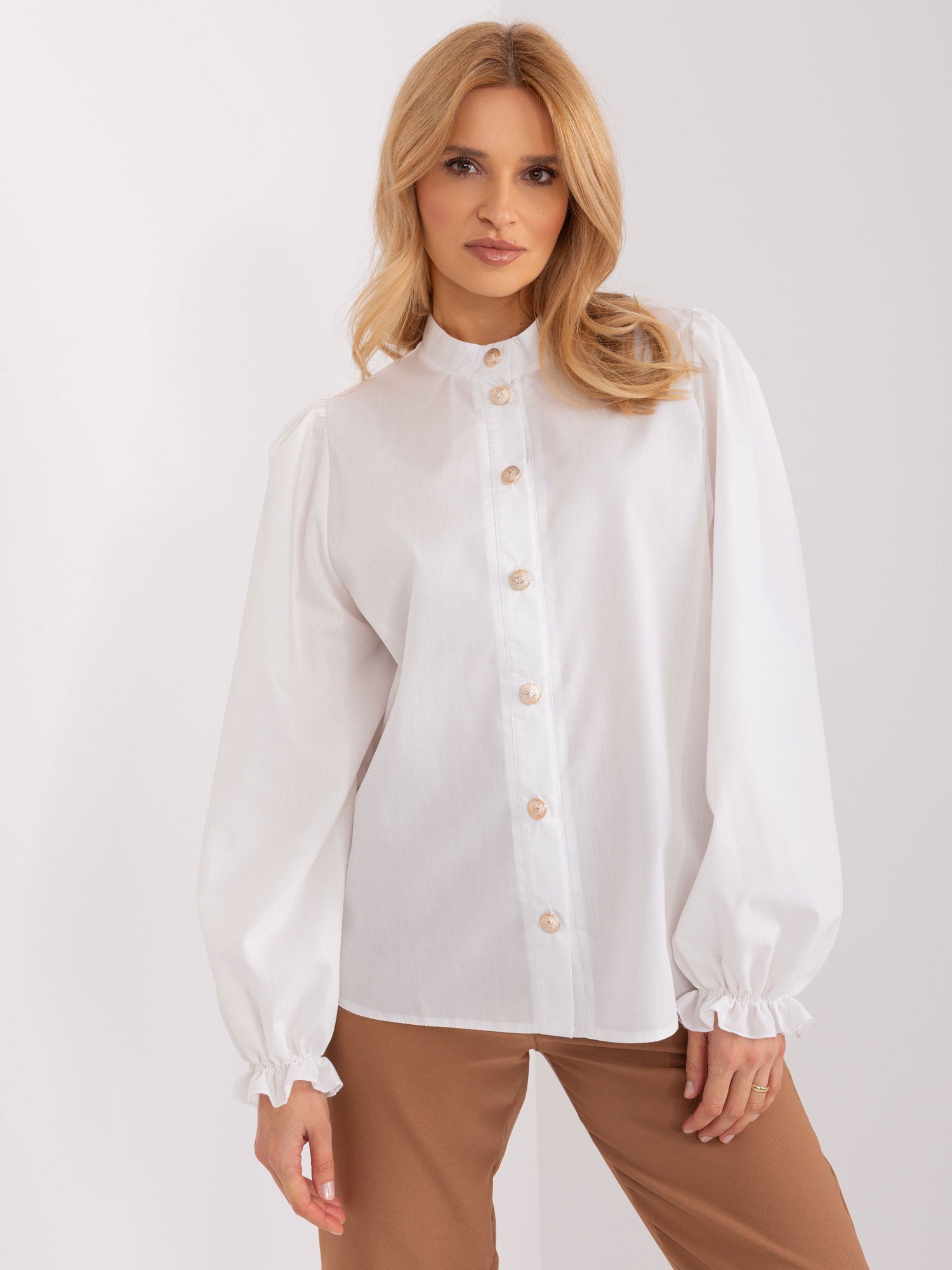 Wymiary koszuli w rozmiarze S/M mierzone na płasko: szerokość pod pachami - 56 cm, długość całkowita - 68 cm, długość rękawa - 64 cm.