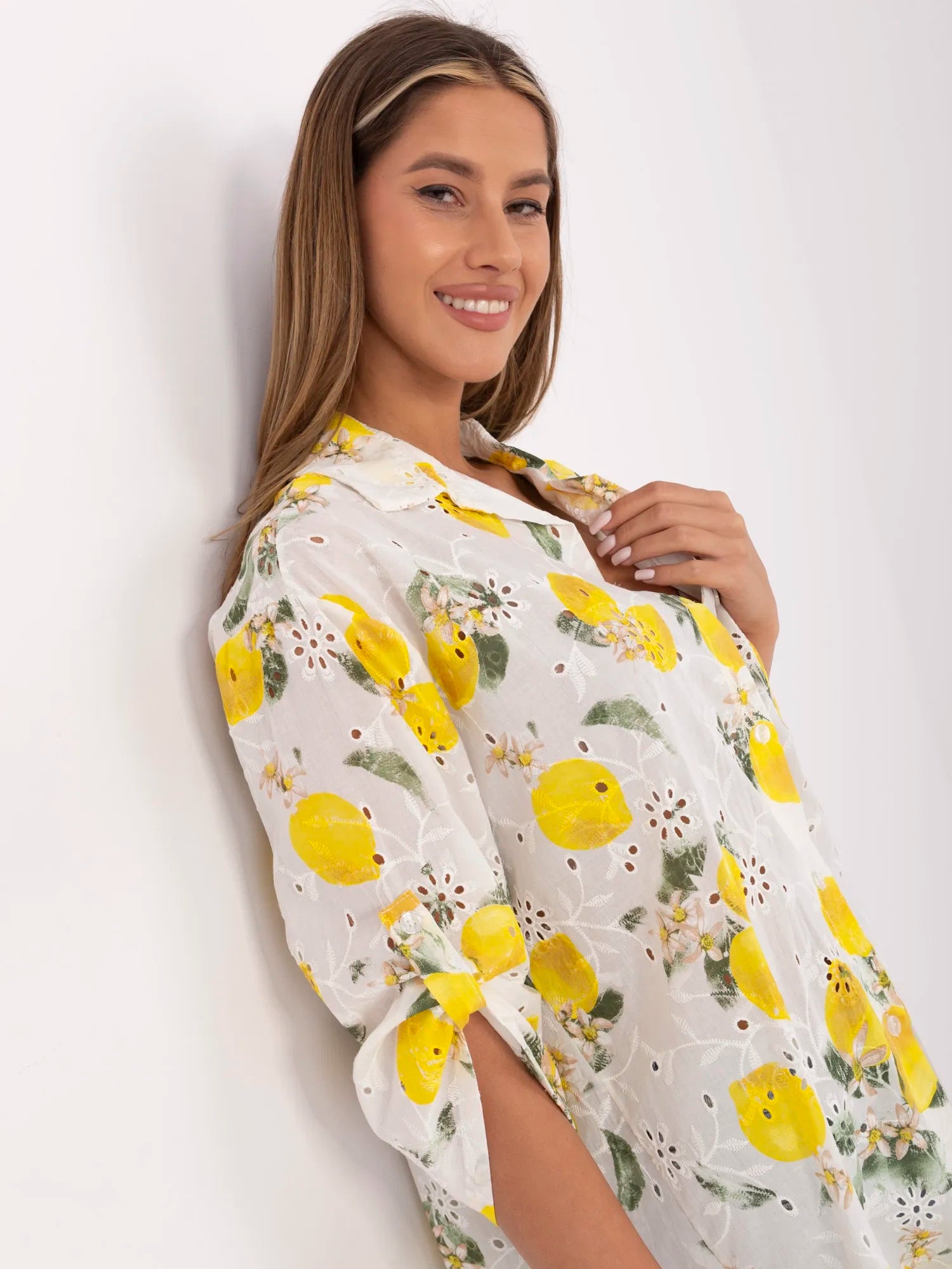 Wymiary koszuli w rozmiarze one size mierzone na płasko: szerokość pod pachami - 60 cm długość rękawa - 40 cm (od szwu), długość całkowita - 75 cm (przód), długość całkowita - 88 cm (tył), szerokość w biodrach - 70 cm.