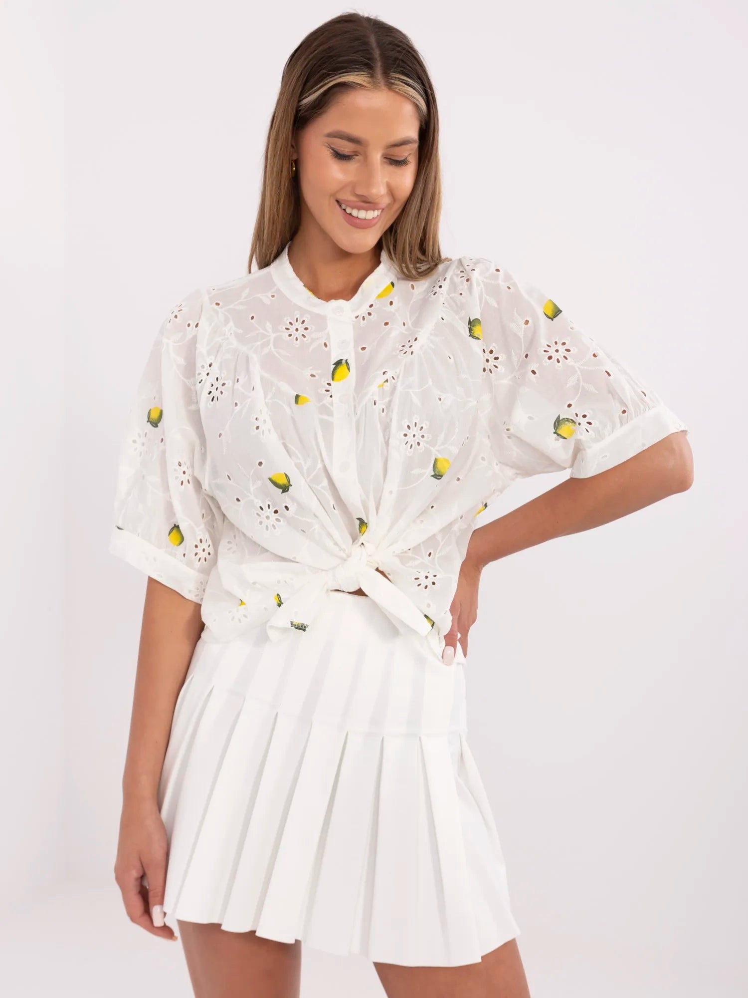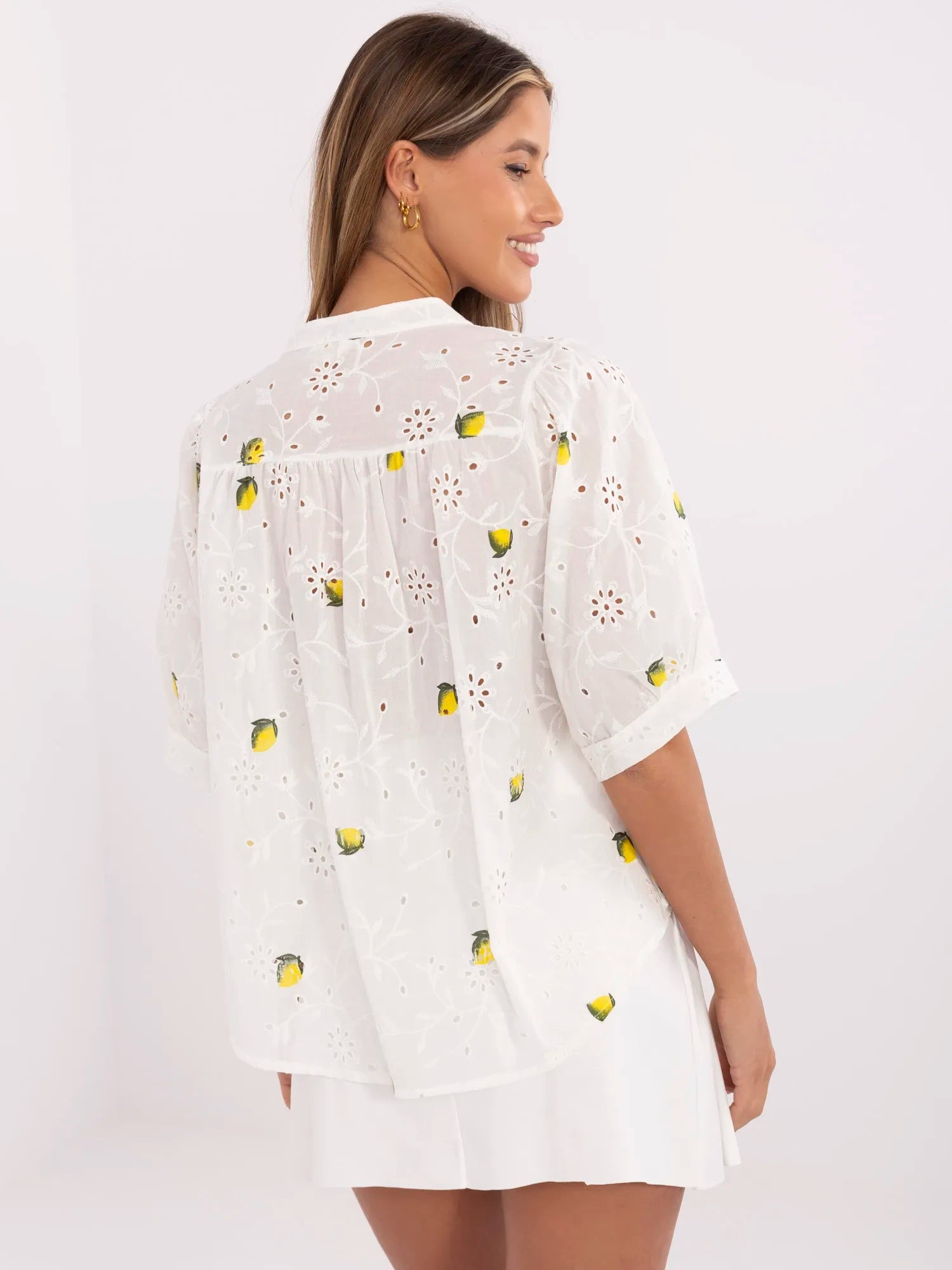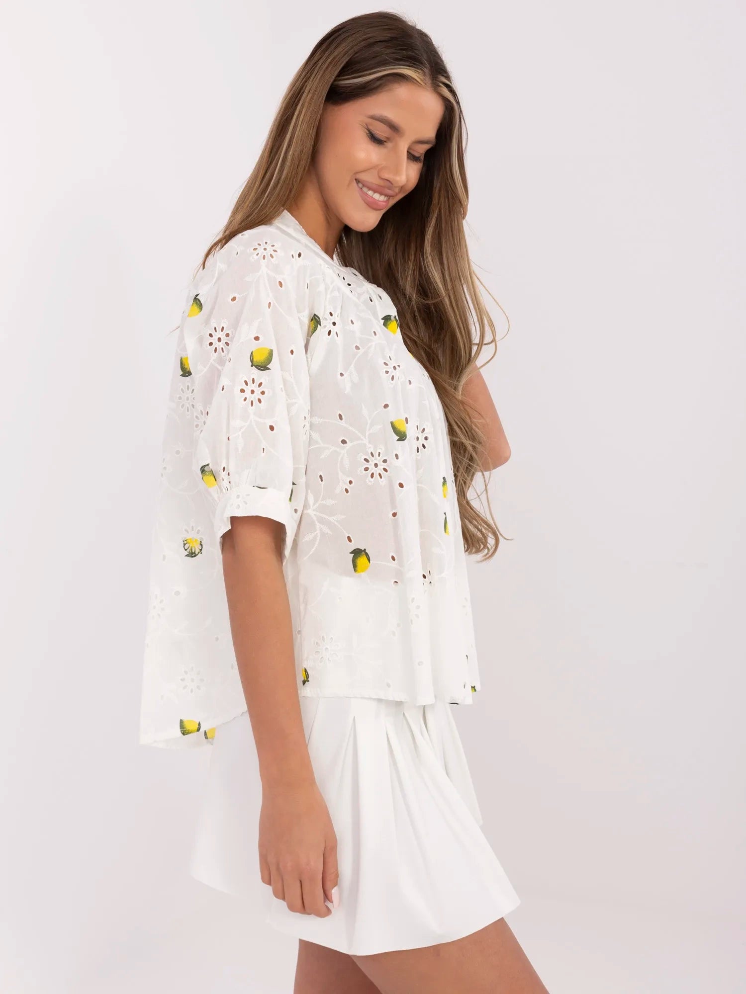 Wymiary koszuli w rozmiarze one size mierzone na płasko: szerokość pod pachami - 65 cm długość rękawa - 35 cm (od szwu), długość całkowita - 65 cm, szerokość w biodrach - 74 cm.