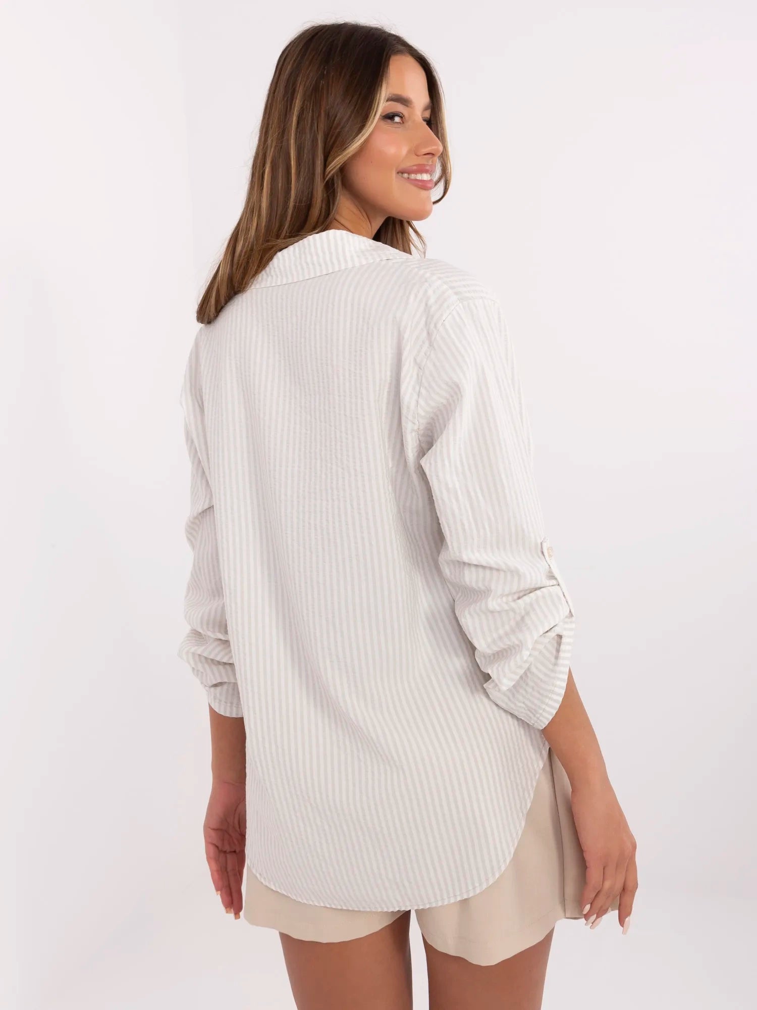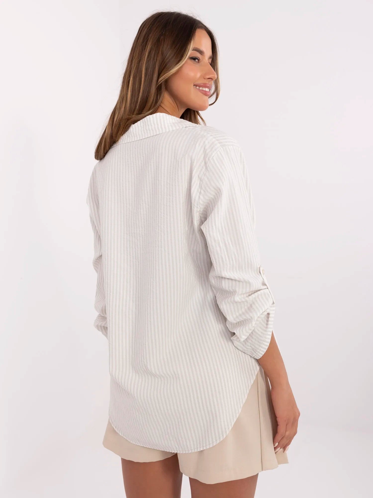 Wymiary koszuli w rozmiarze one size mierzone na płasko: szerokość pod pachami - 56 cm, długość rękawa - 60 cm (od szwu), długość całkowita - 71 cm, szerokość w biodrach - 64 cm.